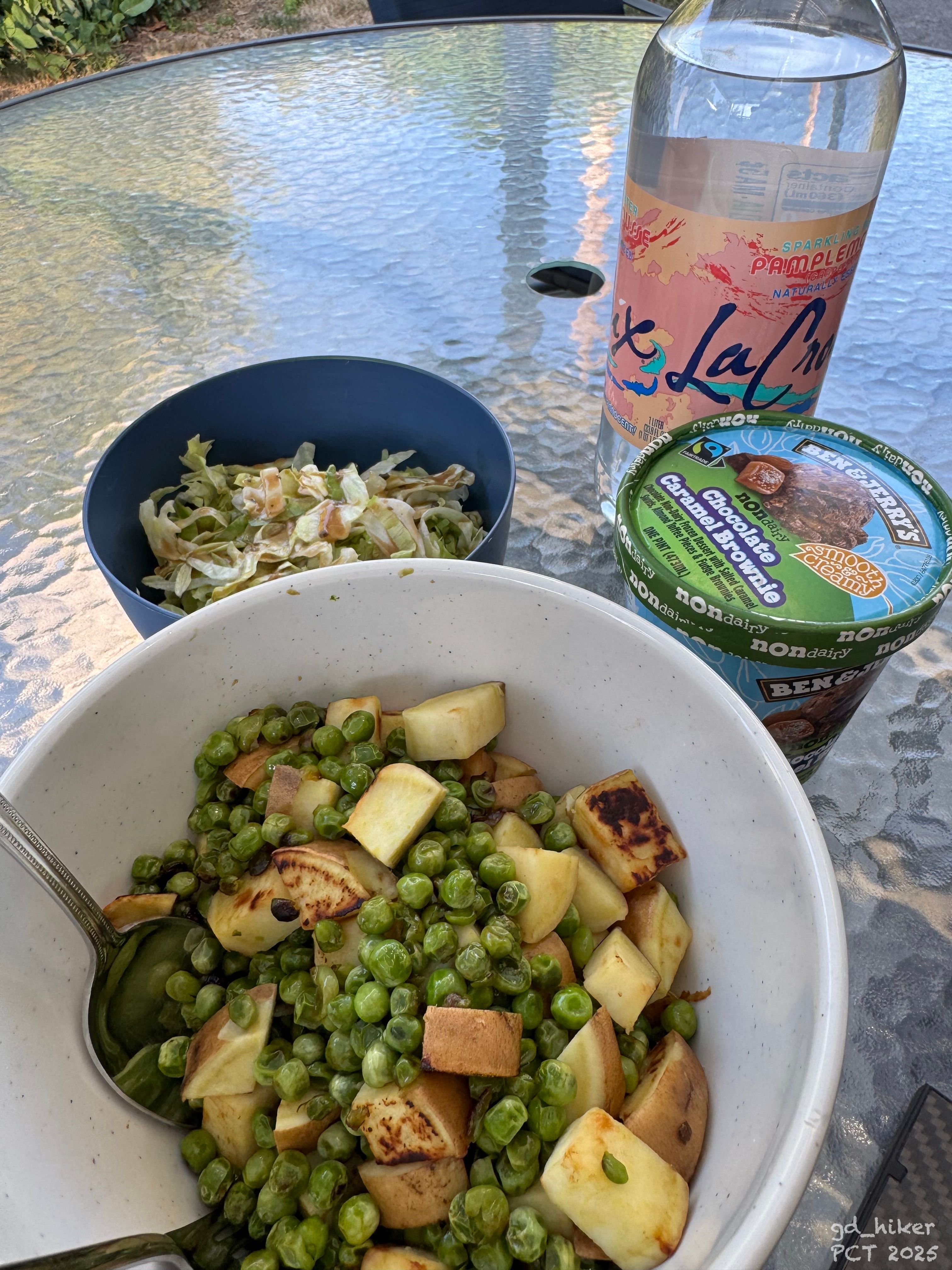 I had bought quite a bit over those three days: high-calorie foods, ice cream, but also things I had been craving and couldn’t get on trail – like vegetables, salad, just something fresh.