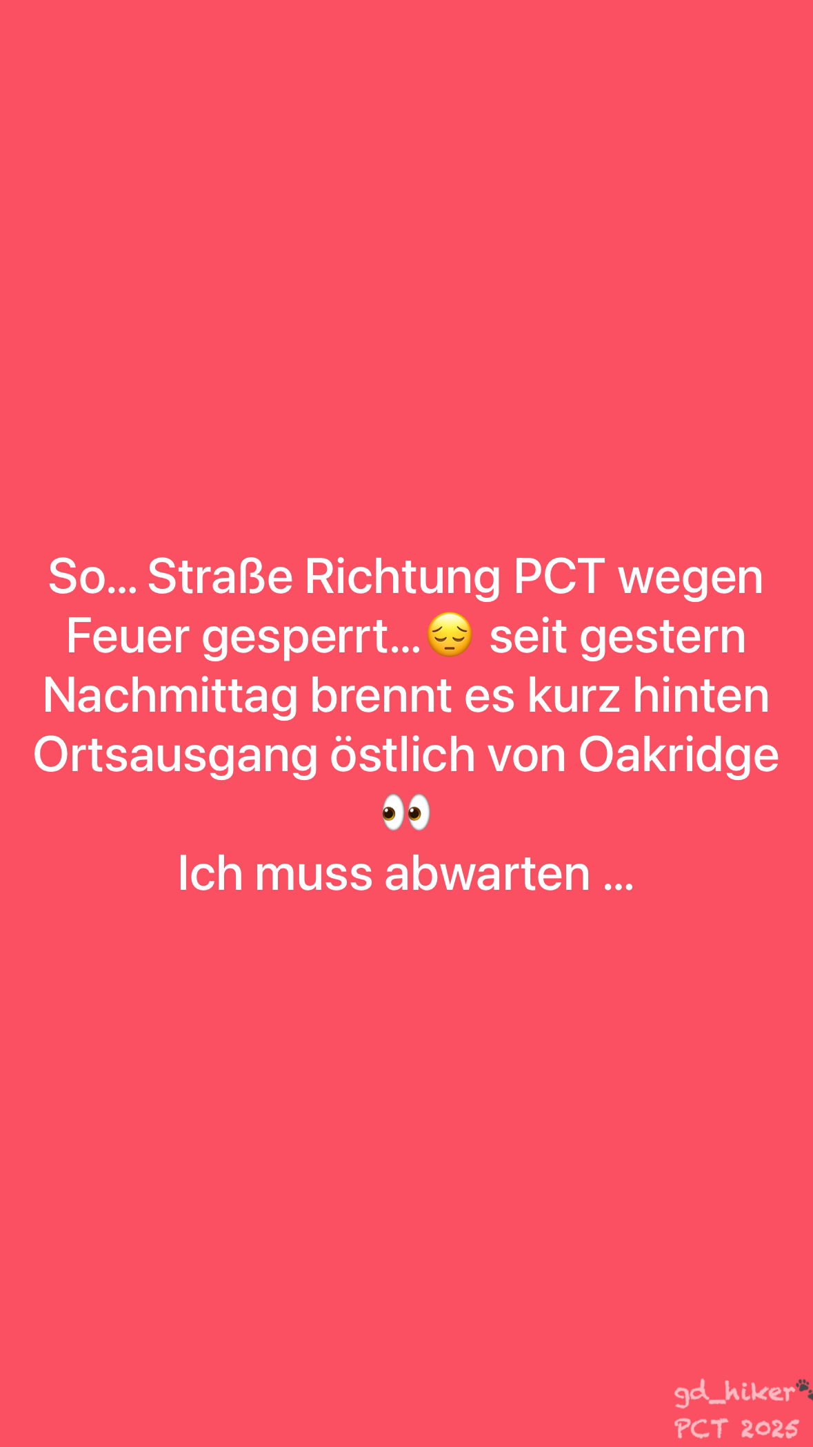 Doch bereits am zweiten Tag meines Aufenthalts brach ein Feuer am Willamette Highway aus – direkt hinter der Ortschaft – und versperrte den Weg zurück zum Trailhead.