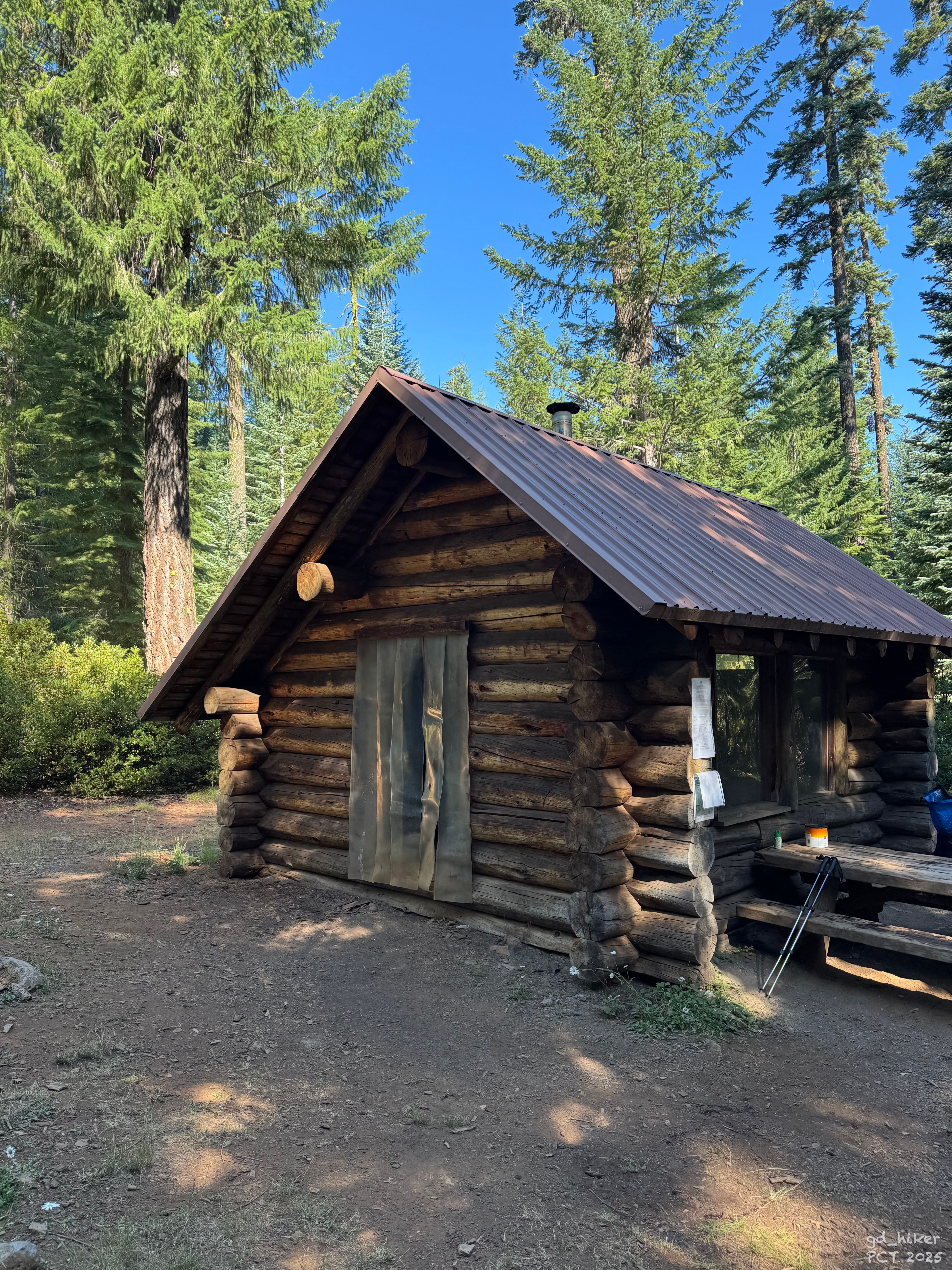 A rustic, foot-accessed shelter in Oregon’s Rogue River–Siskiyou National Forest near the PCT, maintained as a winter warming hut with a wood stove.