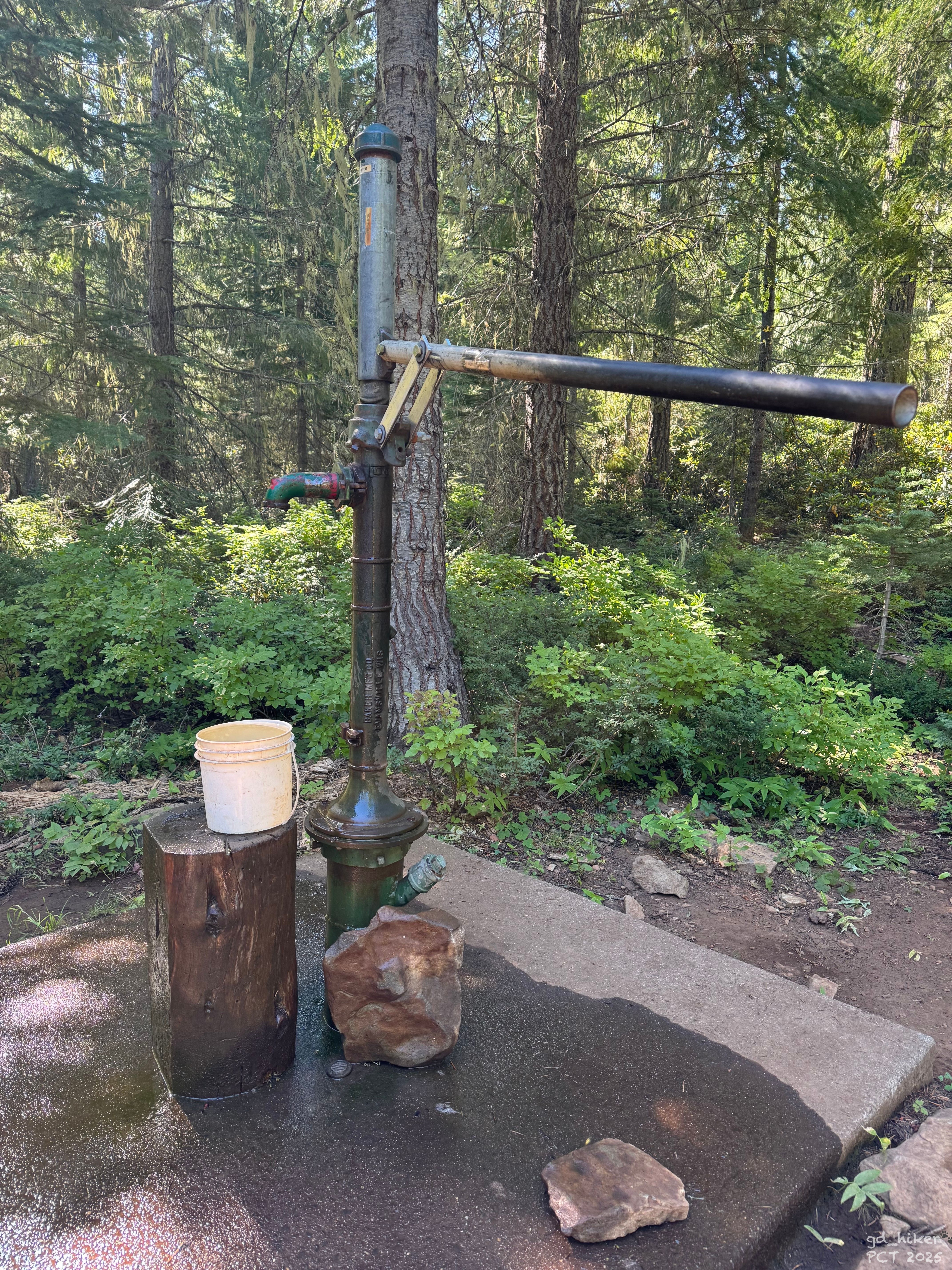 I met a few hikers who were also refilling water. There was a hand pump with a warning to filter the water – the pipes were reportedly in poor condition.