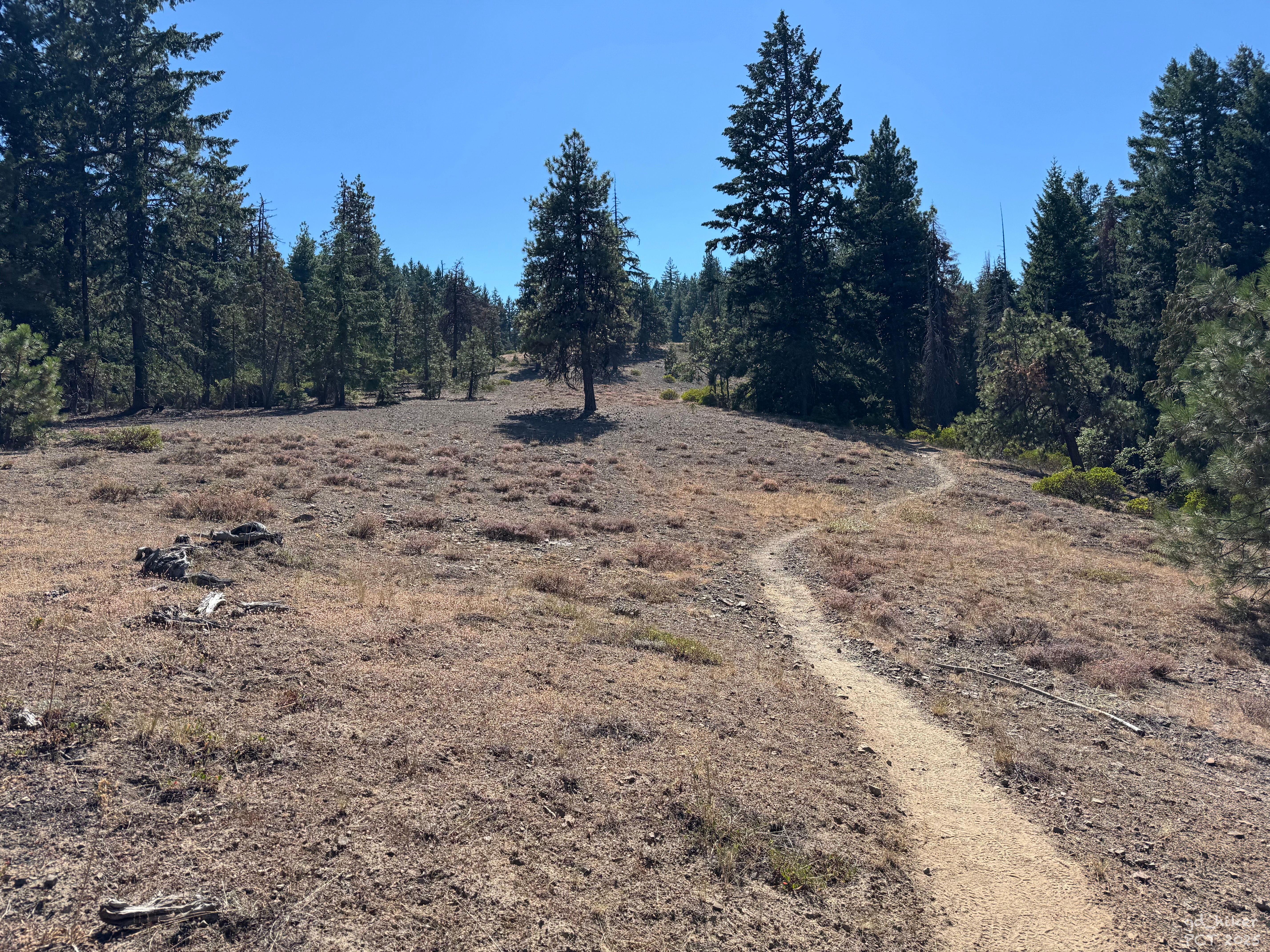Es folgte noch eine letzte Steigung am heutigen Tag – und das in sengender Hitze, zumindest gefühlt. Hier gab es kaum Schatten, und in der kleinen Burn Zone, die ich durchquerte, lag noch der verbrannte Geruch in der Luft.