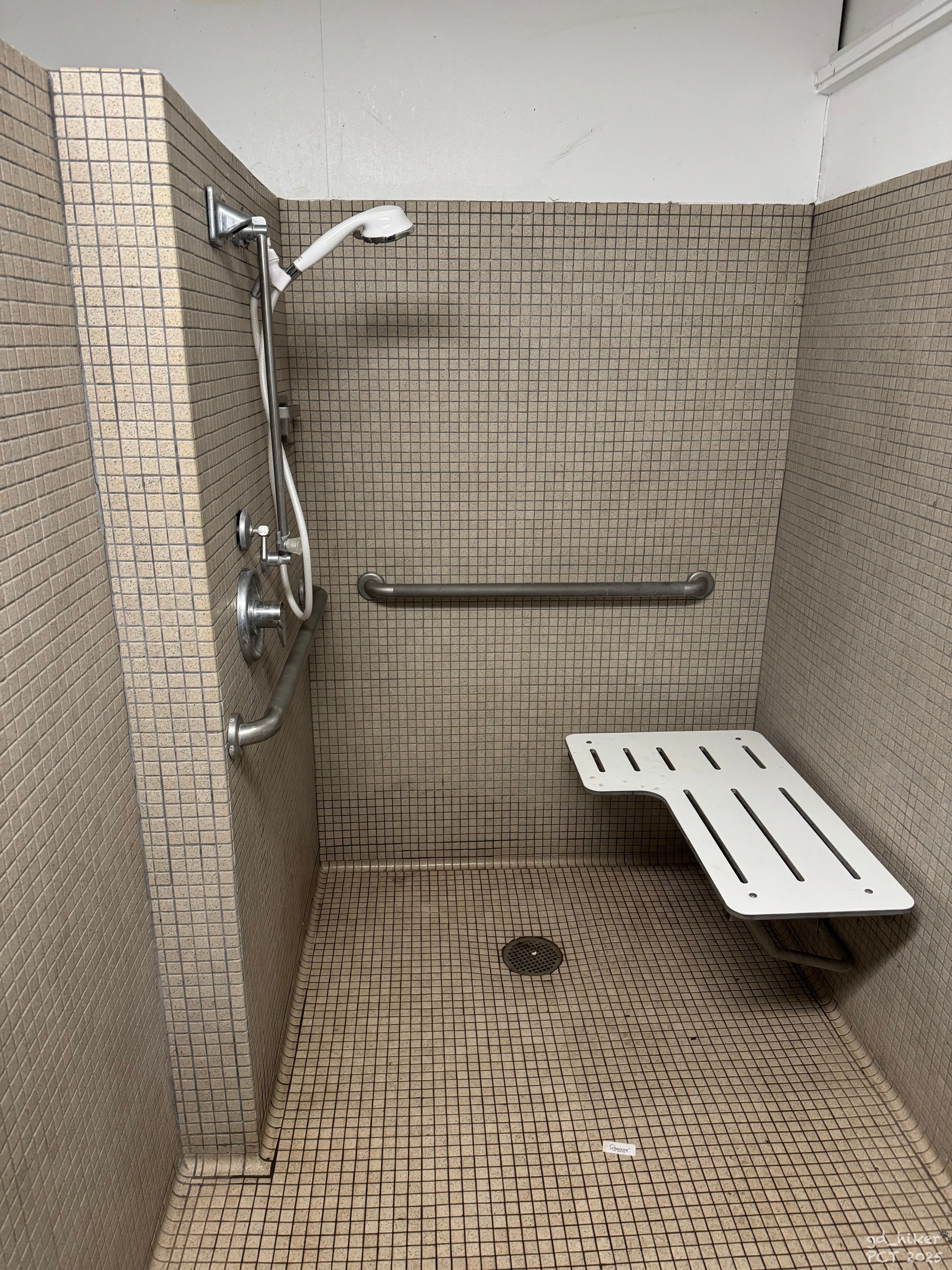 Und dann entdeckte ich in der letzten Kabine doch noch eine Dusche.