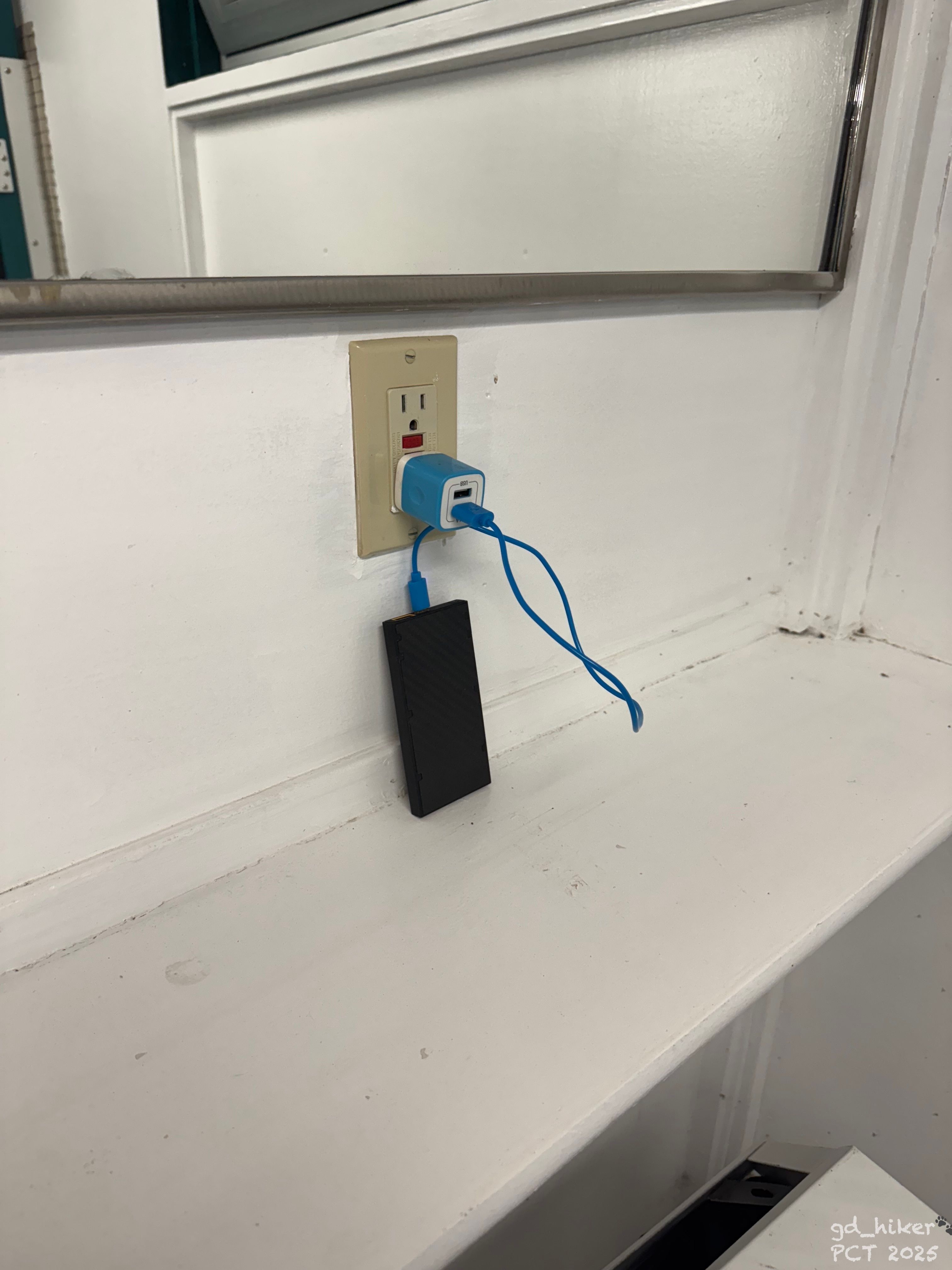 Afterwards, I plugged my power bank into an outlet in the restroom building – hoping it would still be there later and fully charged.