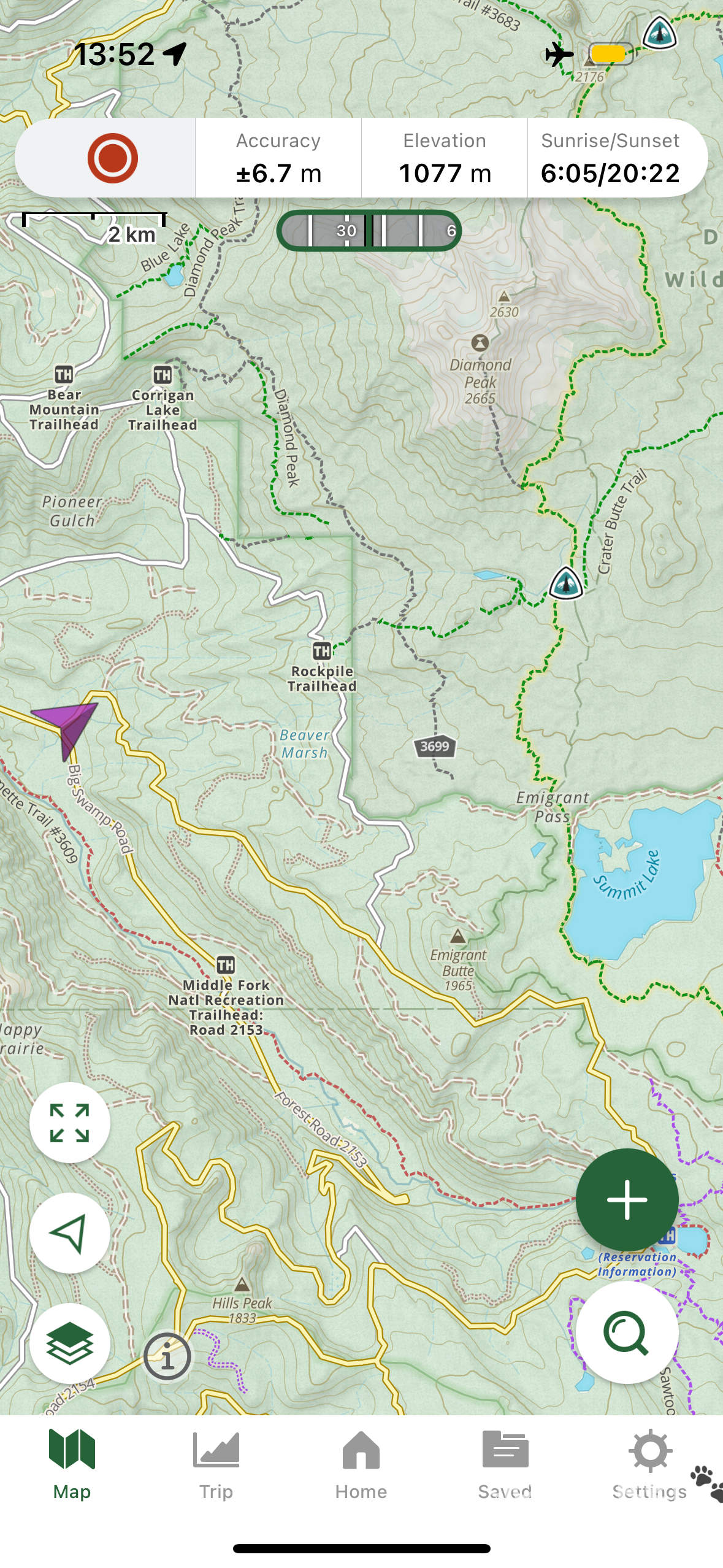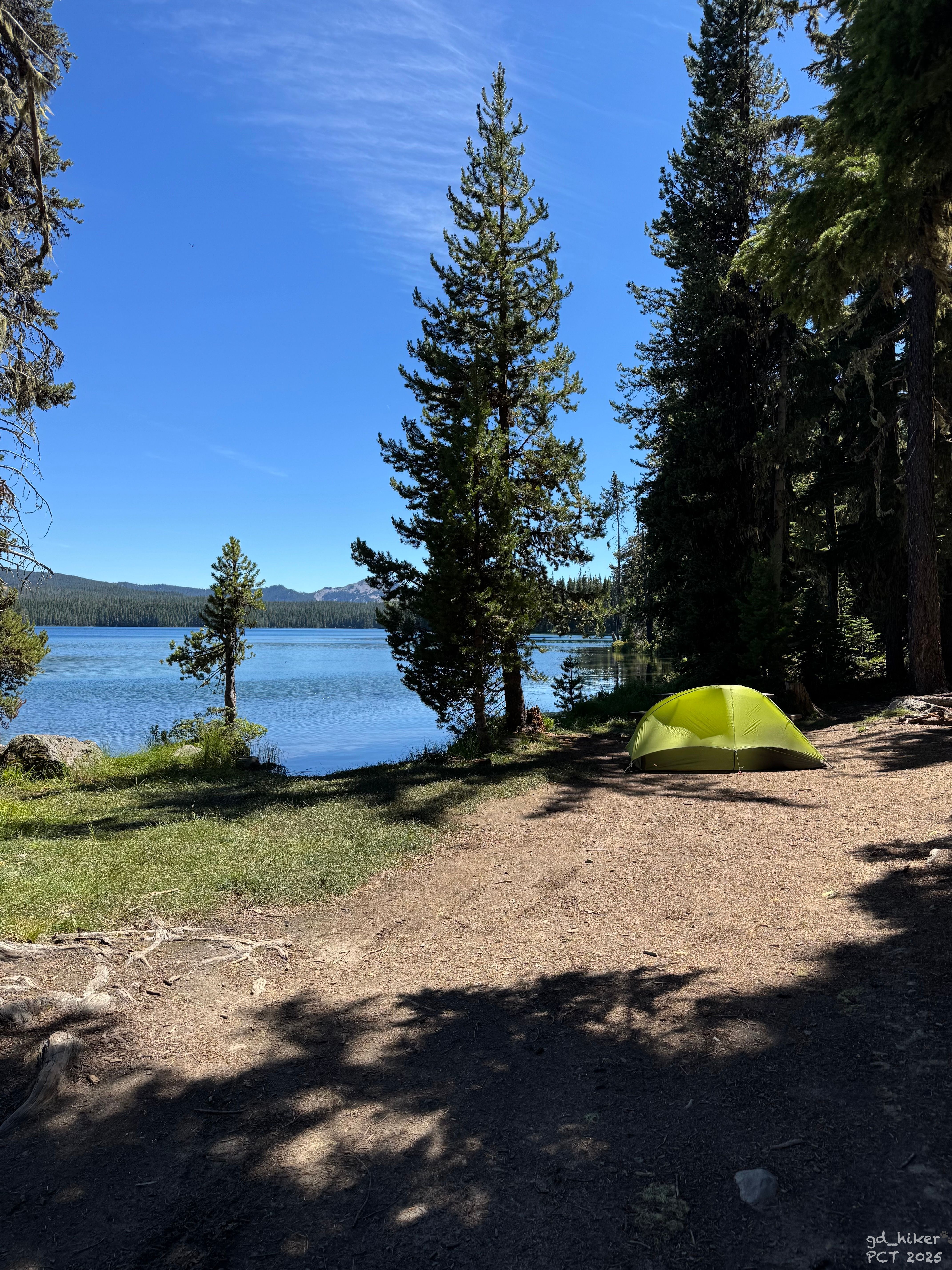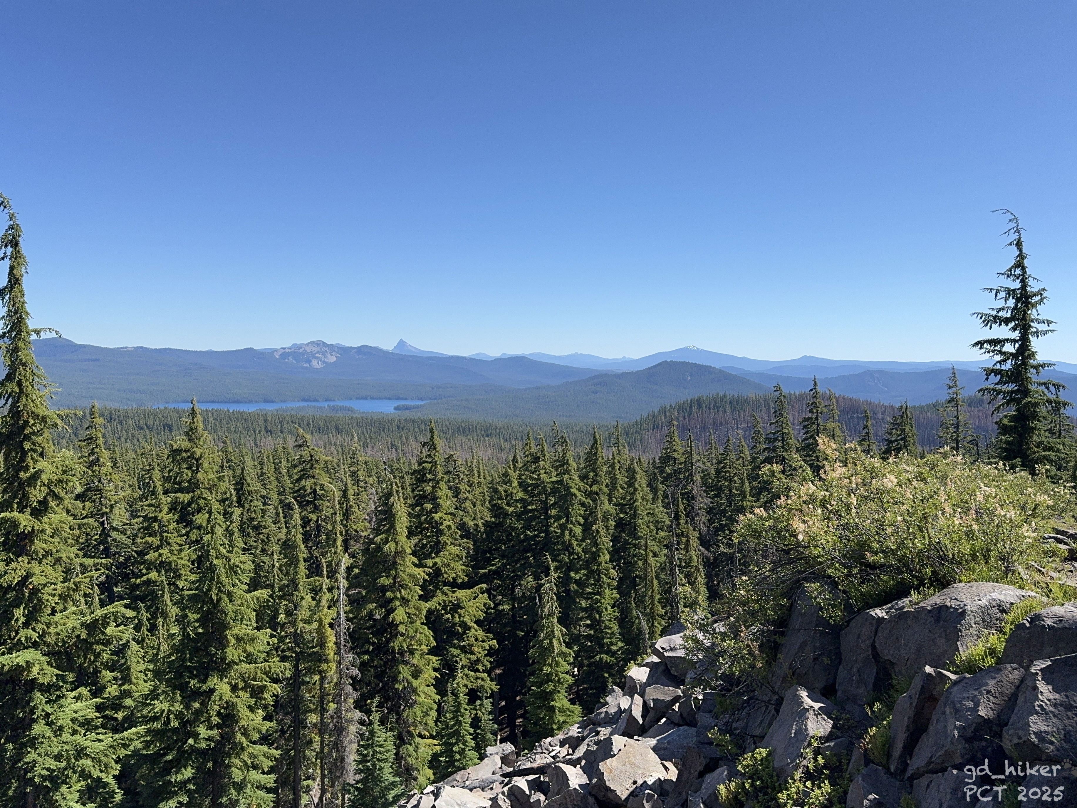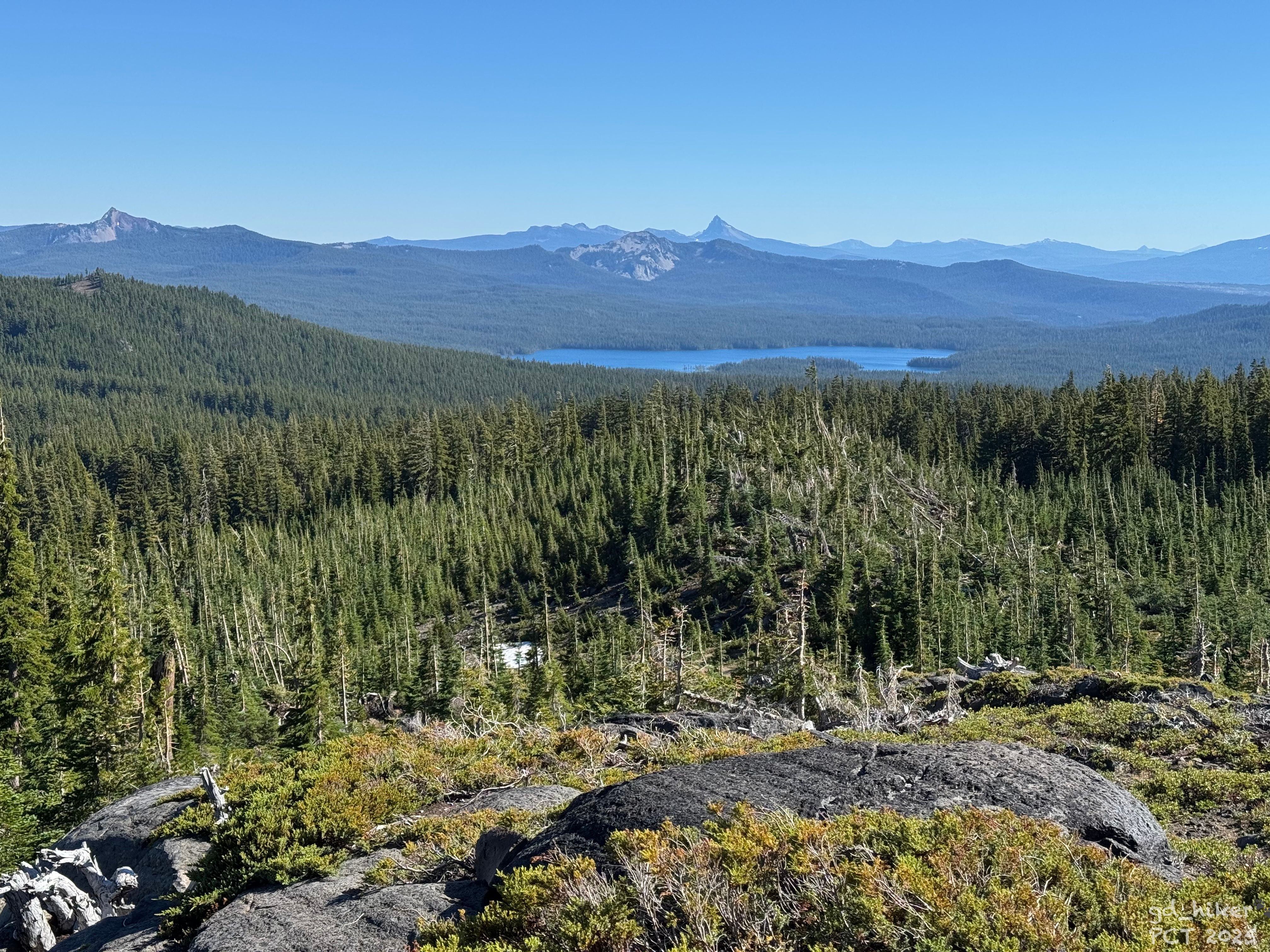He was heading to Summit Lake, which lies along the PCT about 25 km south of Willamette Pass, and offered to take me with him at 1 p.m. He knew a way around the closure, and the forest roads further south were apparently open.