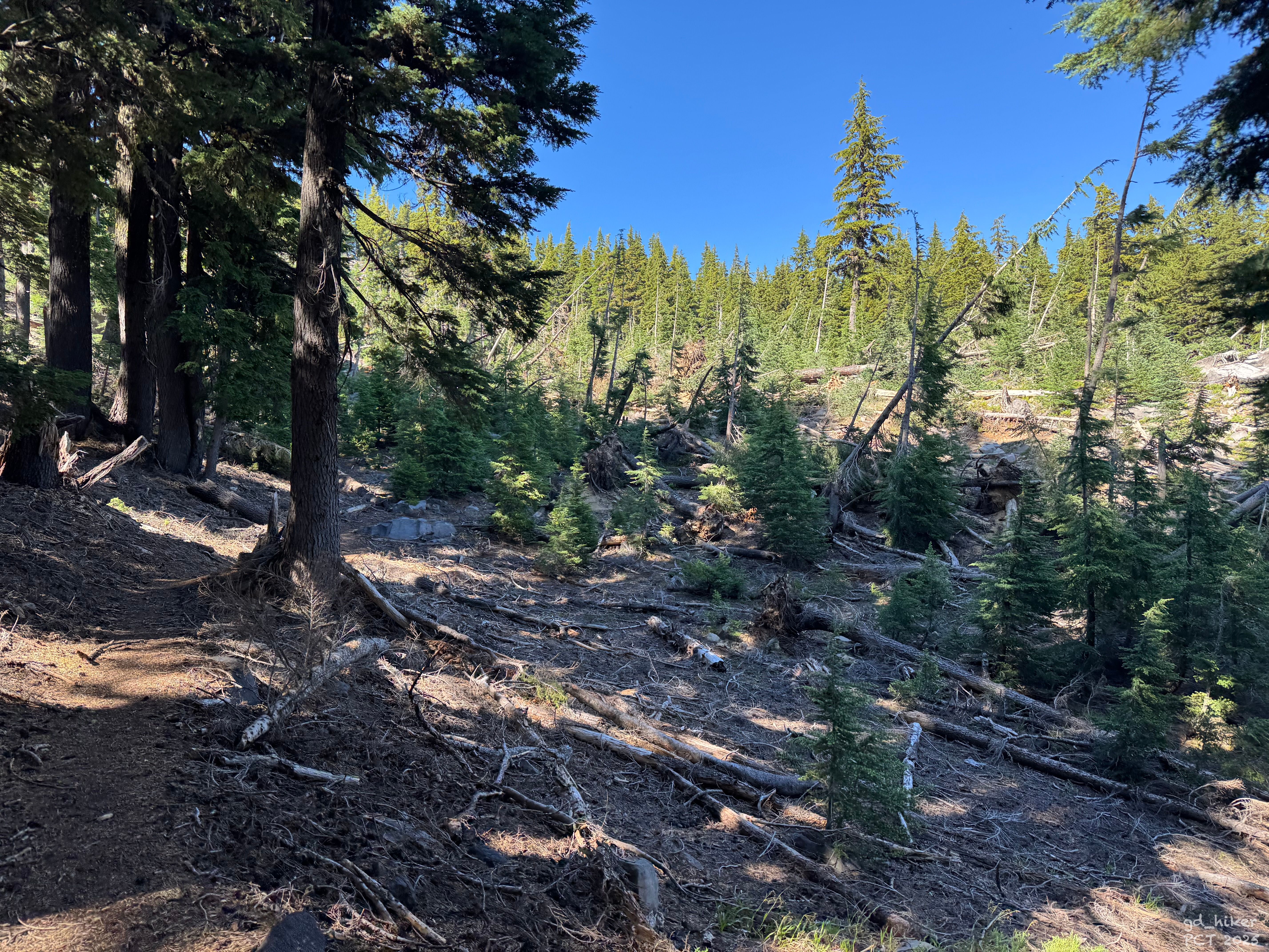 I scrambled across another field of fallen trees and avalanche debris, smiling at how short this "Section K" stretch felt in comparison.