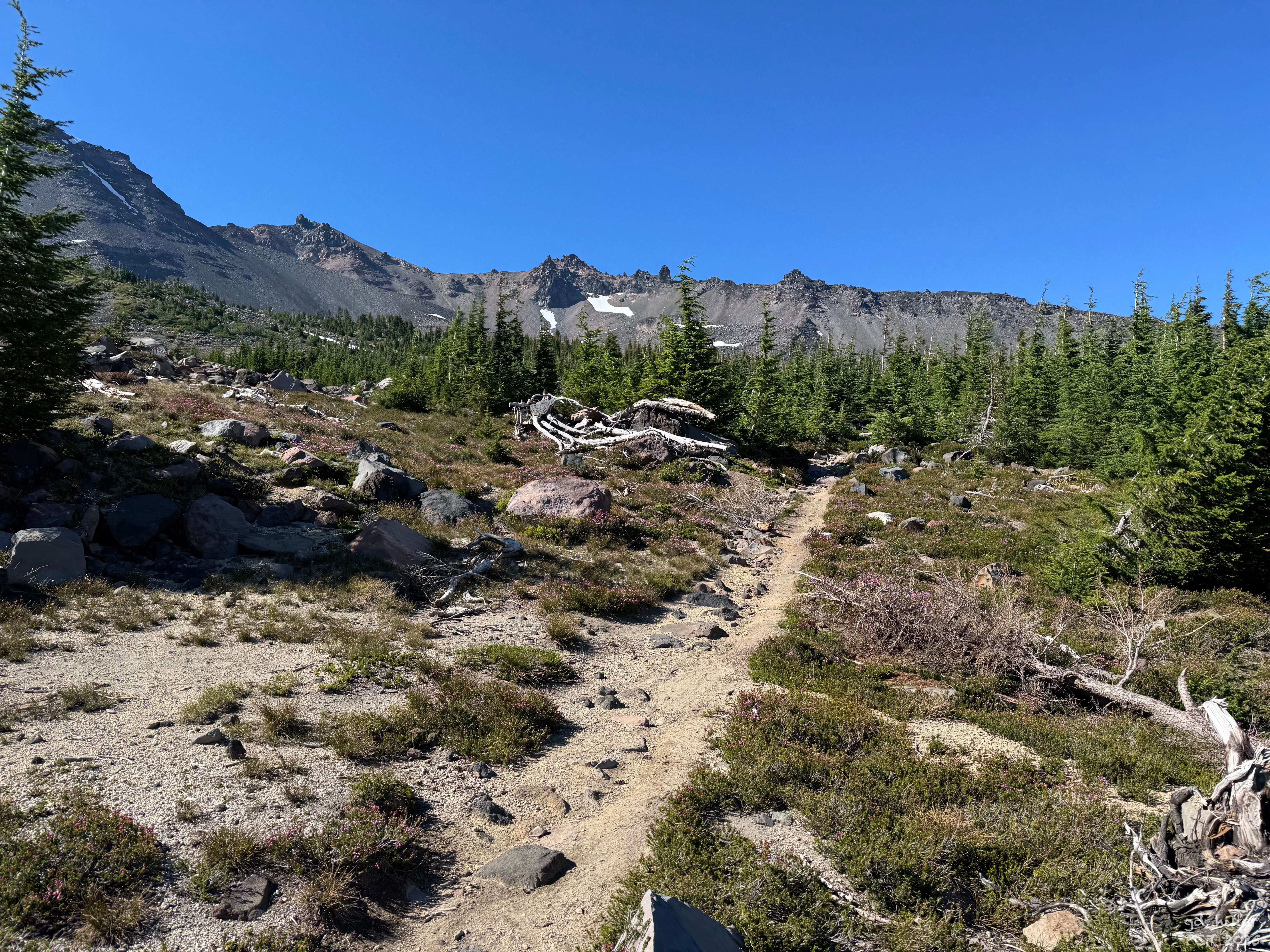 Soon I found the trail, and off I went. Hiking with a light pack felt unusual but refreshing as I made my way uphill toward a viewpoint overlooking Diamond Peak.