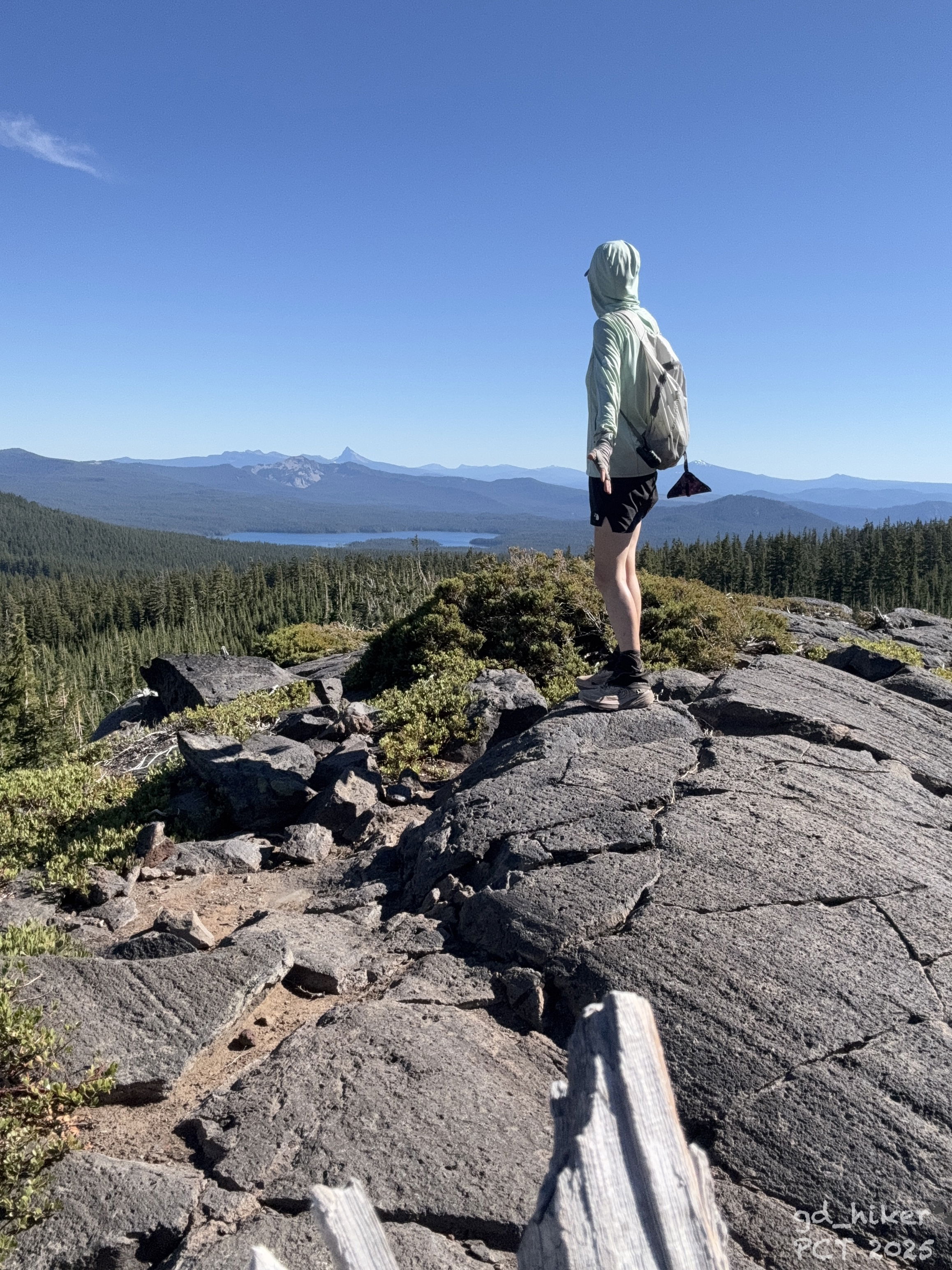 By 4:30 p.m., I reached my goal for the day – 8.7 km of slackpacking – rewarded with a stunning view of Diamond Peak and the vast landscape beyond.