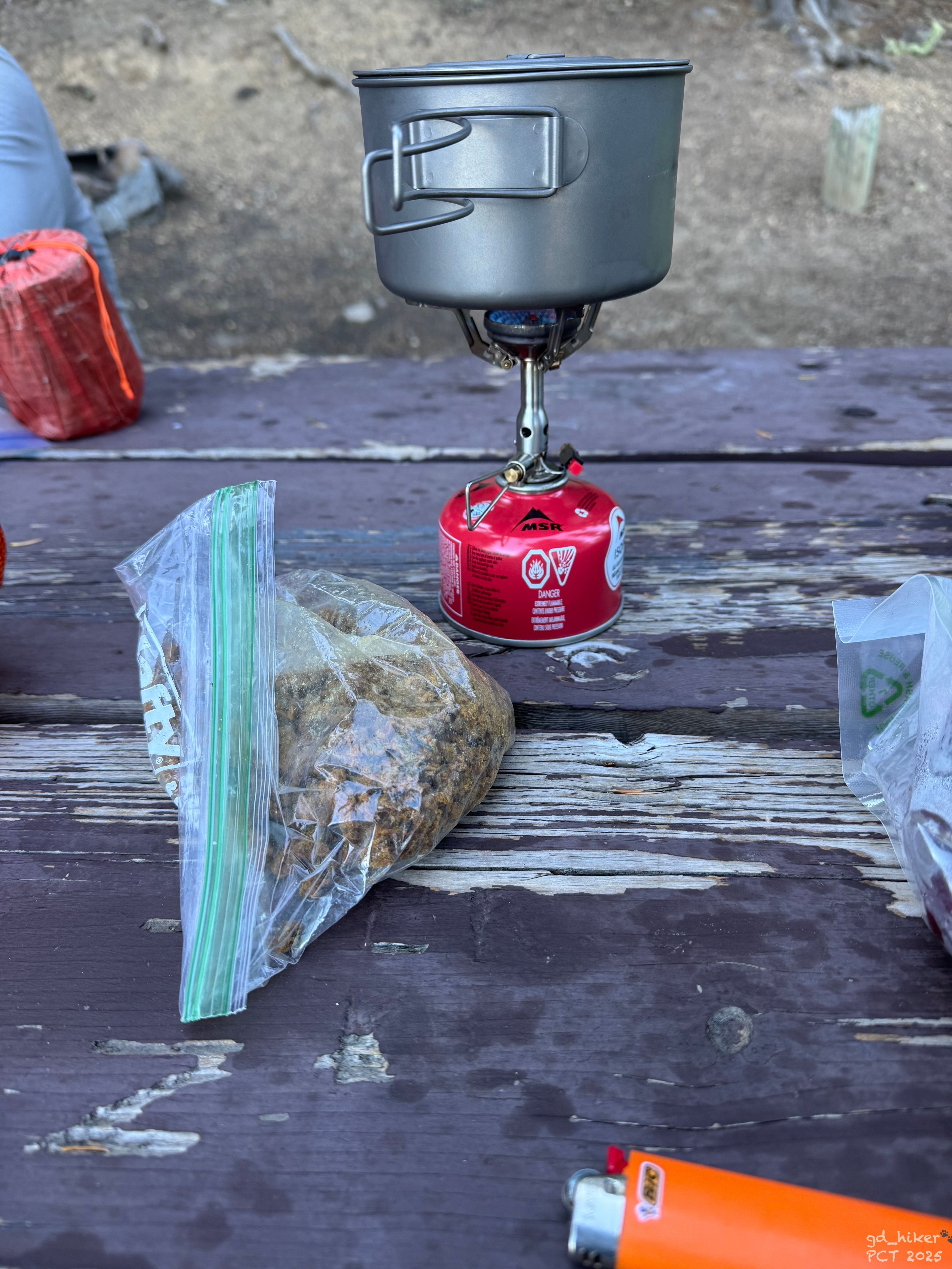 At 6:30 p.m., I returned to my tent and noticed another hiker had set up nearby for the night. A NOBO hiker was already sitting at the table when I arrived.