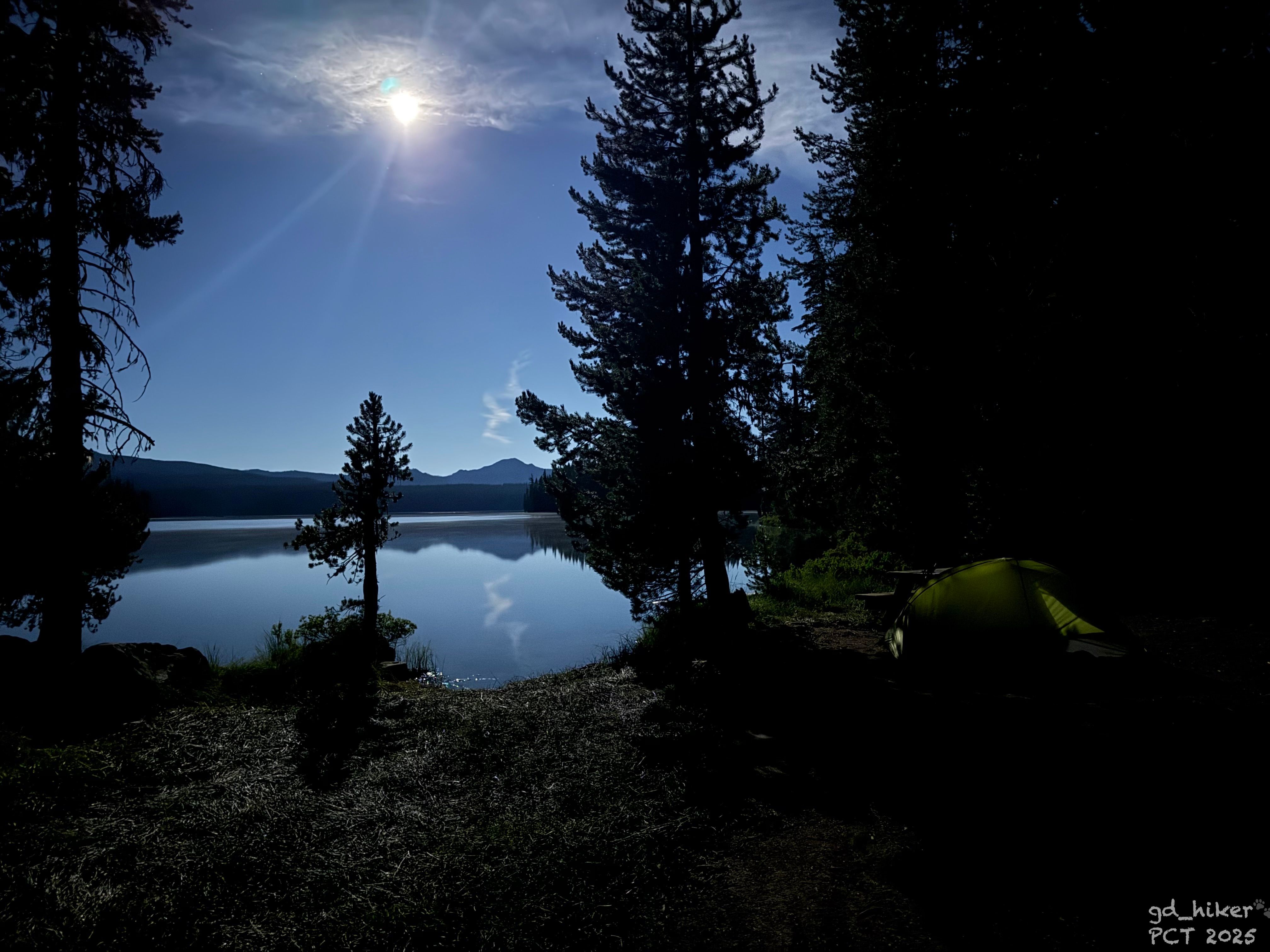 After washing my feet in the lake, I crawled into my tent at around 8 p.m.