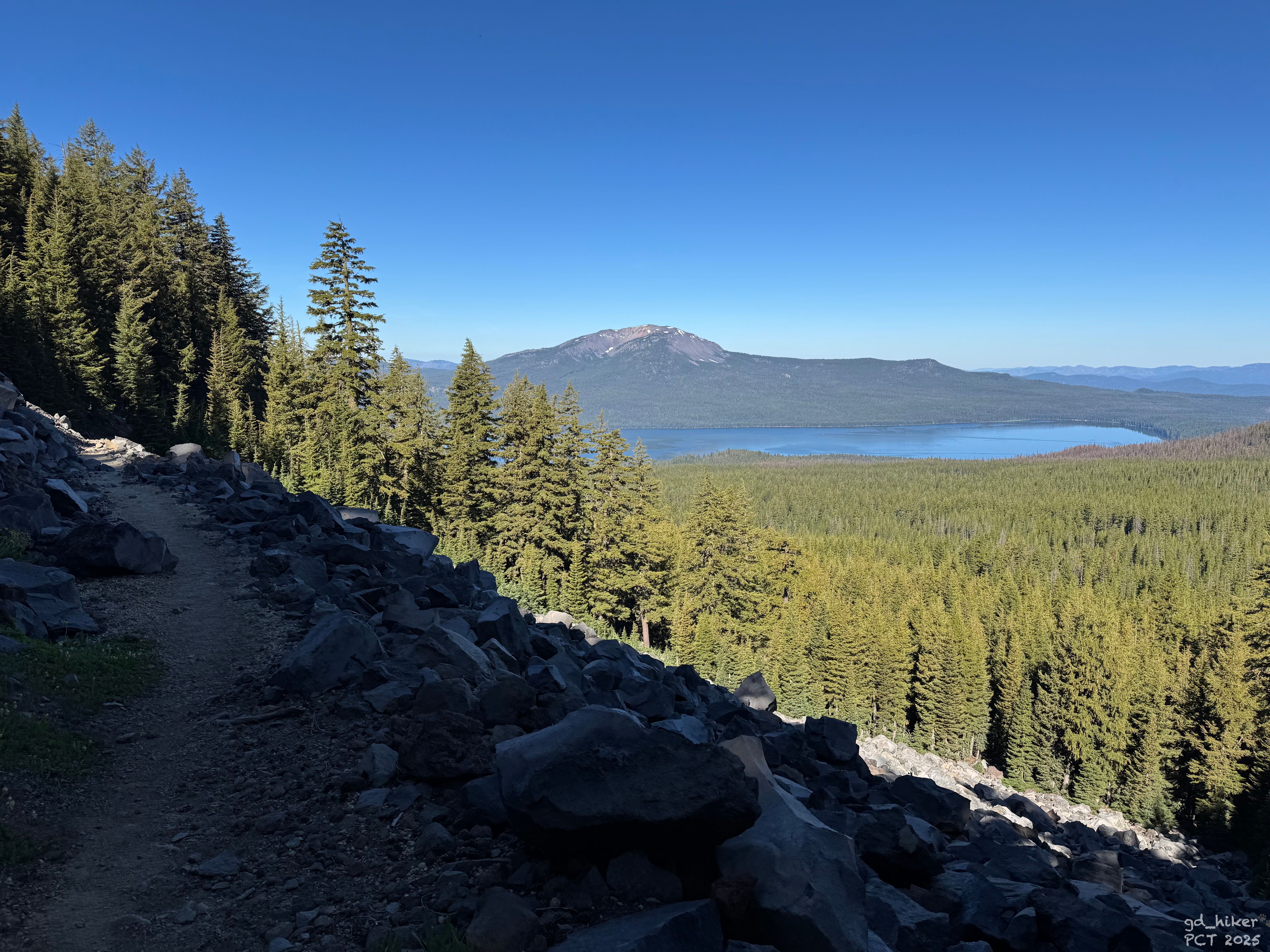 A few switchbacks later, I reached a junction at 9:20 a.m. From here, I could either climb Mount Thielsen, head toward Diamond Lake Resort (another resupply point), or continue on the PCT toward Crater Lake.I