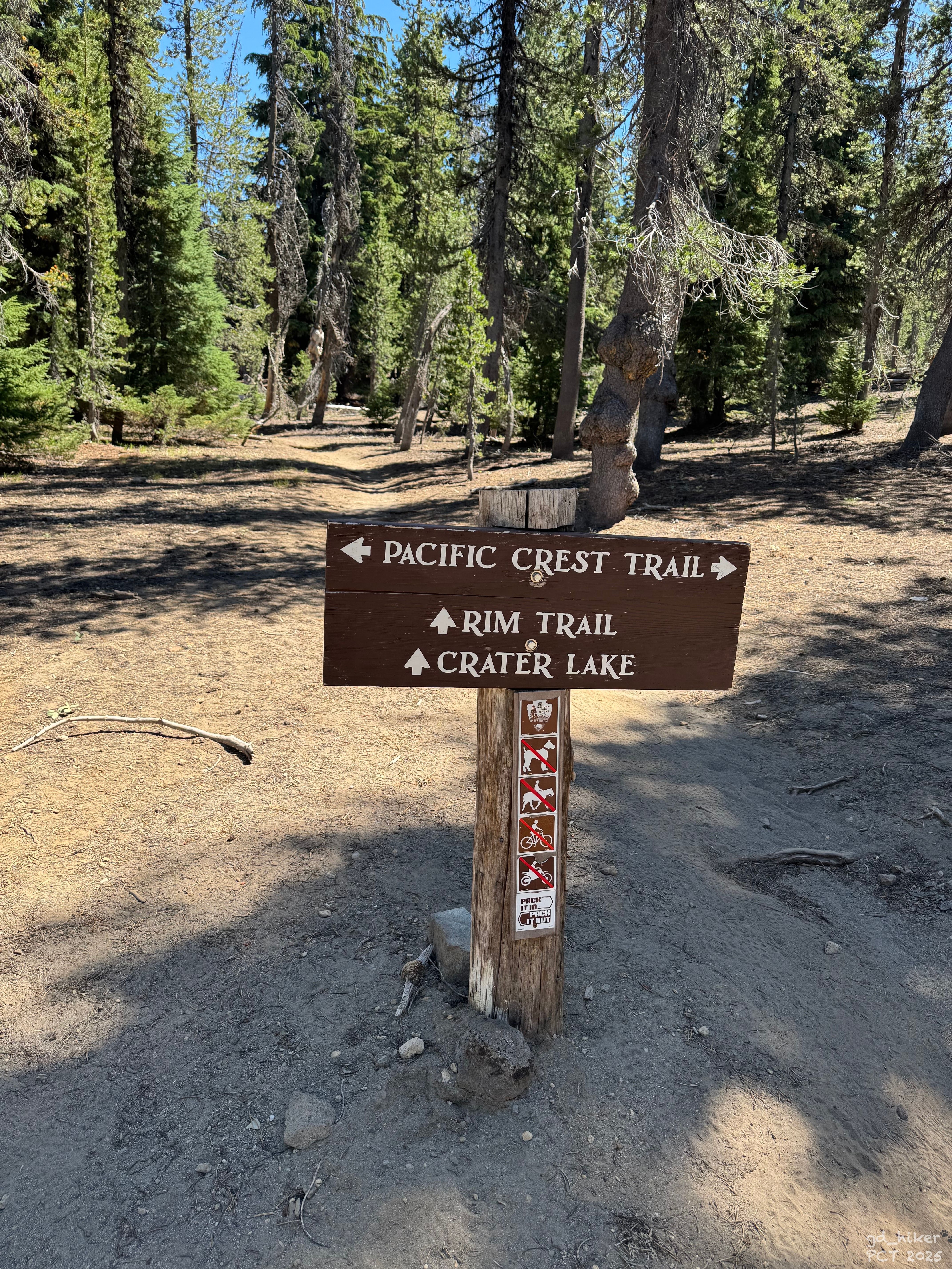 Es folgten ein paar Switchbacks, und um 9:20 Uhr erreichte ich eine Junction. Von hier konnte ich entweder auf den Mount Thielsen aufsteigen, zum Diamond Lake Resort – einem weiteren Resupply-Ort auf dem Trail – gehen oder dem PCT weiter in Richtung Crater Lake folgen.