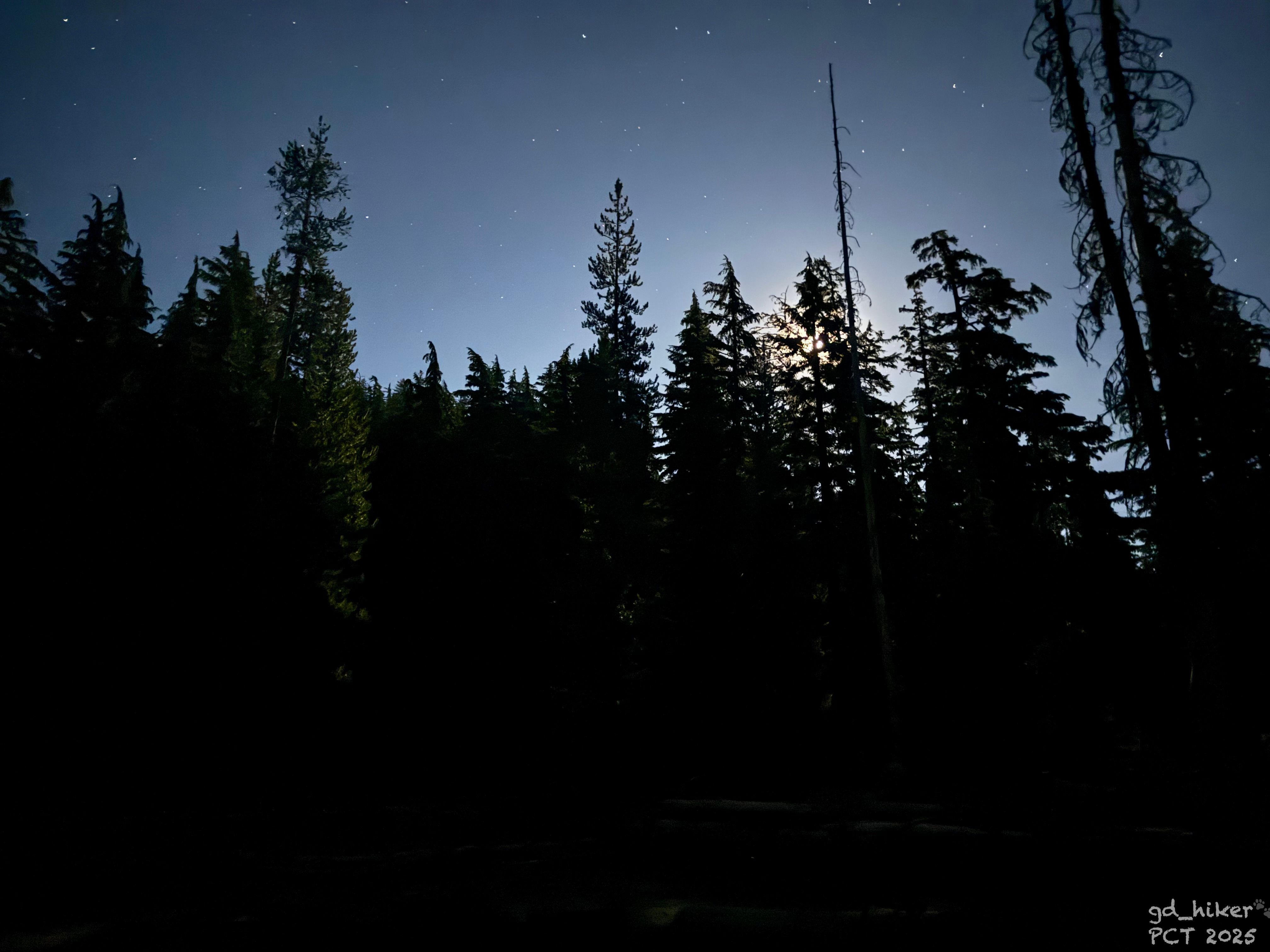 Back at the junction, I chose a campsite. There were several options, clearly a common stopping point for hikers before tackling the Crater Lake Rim the next day. The Rim Trail alone is about 15 km, followed by another 10 km to Mazama Village Campground – roughly 25 km total from here.