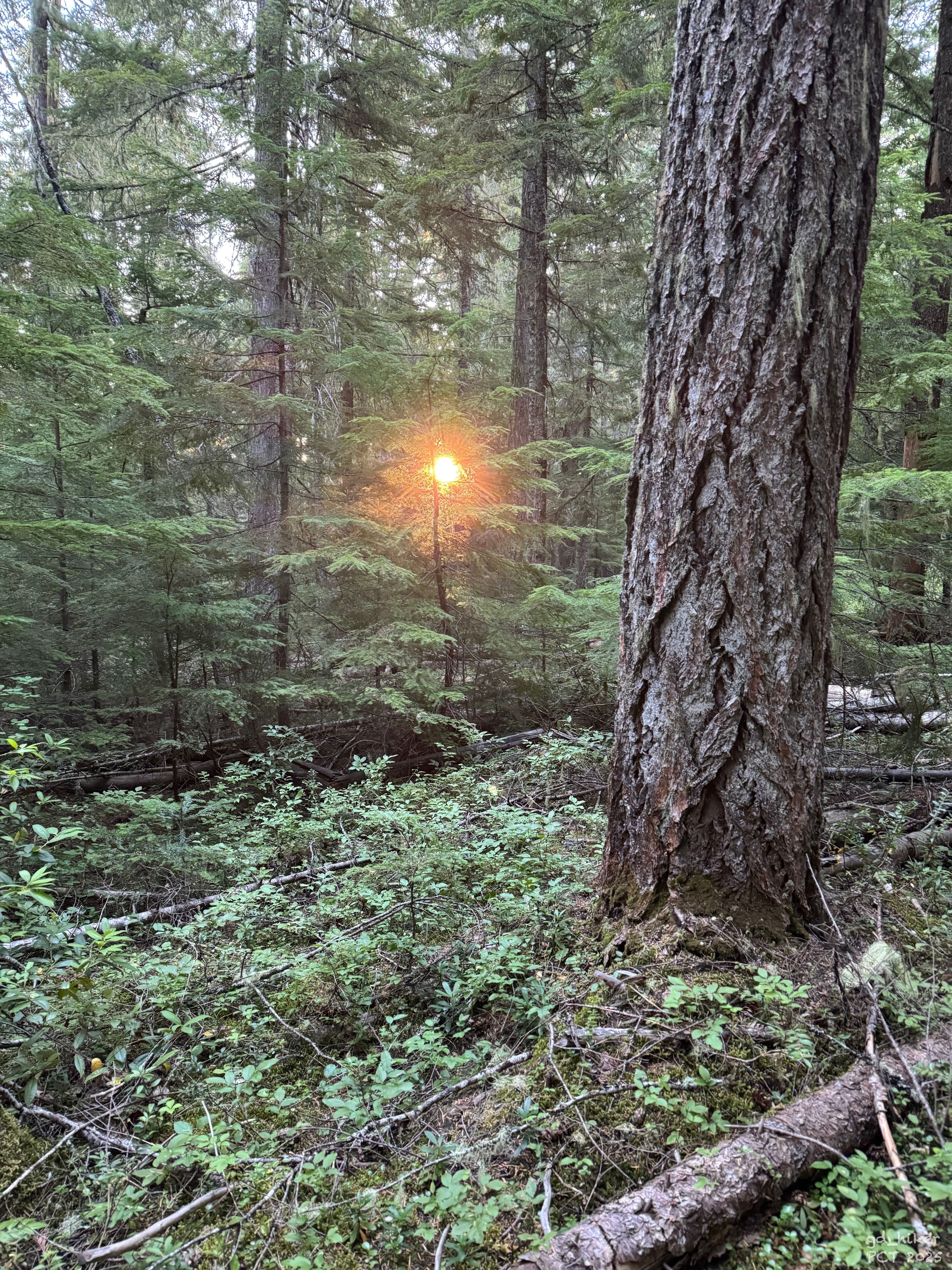 At 6:15 a.m., I set off. Just 15 minutes later, the sun began to make its way through the dense trees.