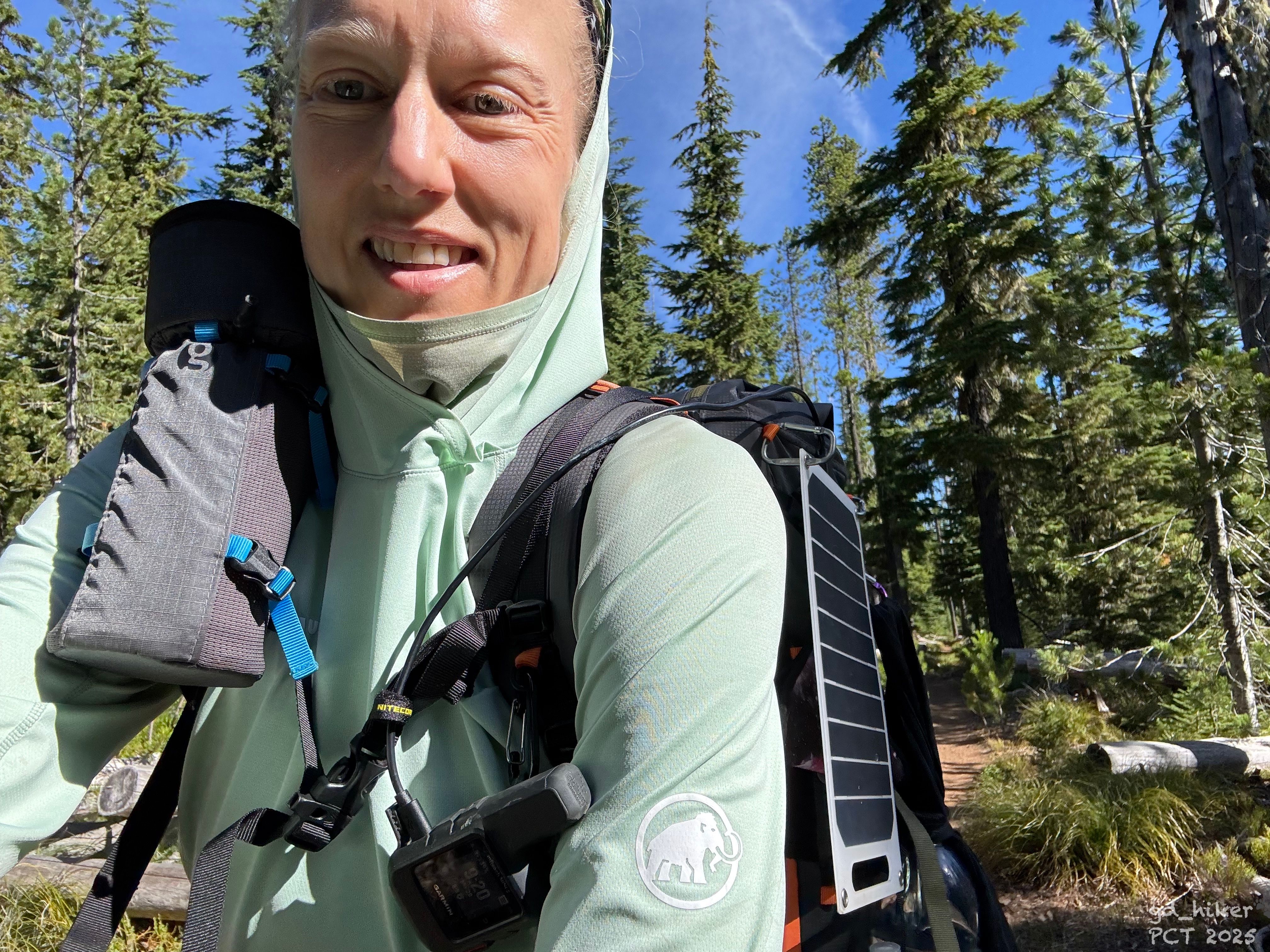 To charge my power bank while walking, I had to improvise with the solar panel. Since I was walking mostly toward the sun, it wasn’t exactly easy.
