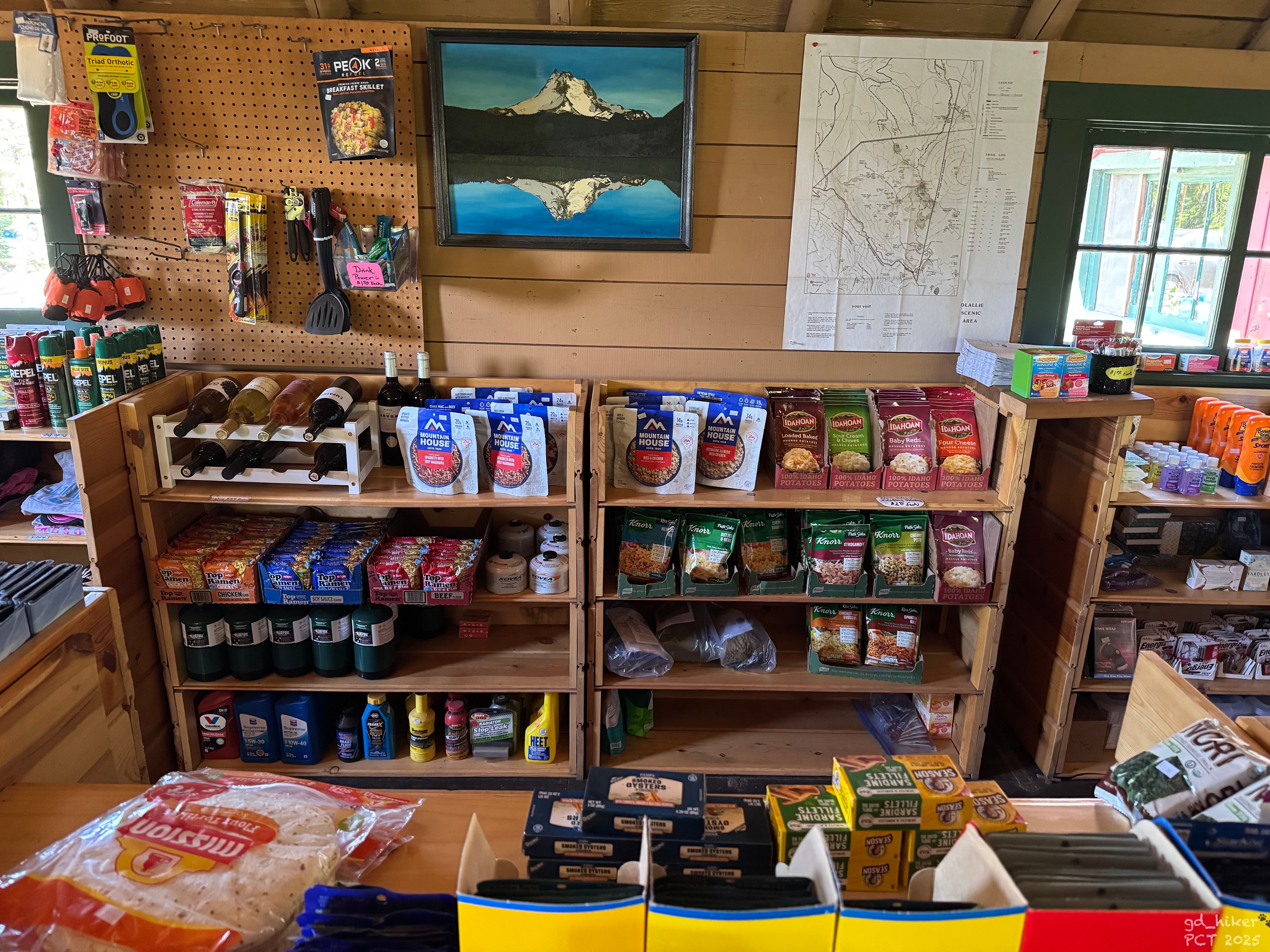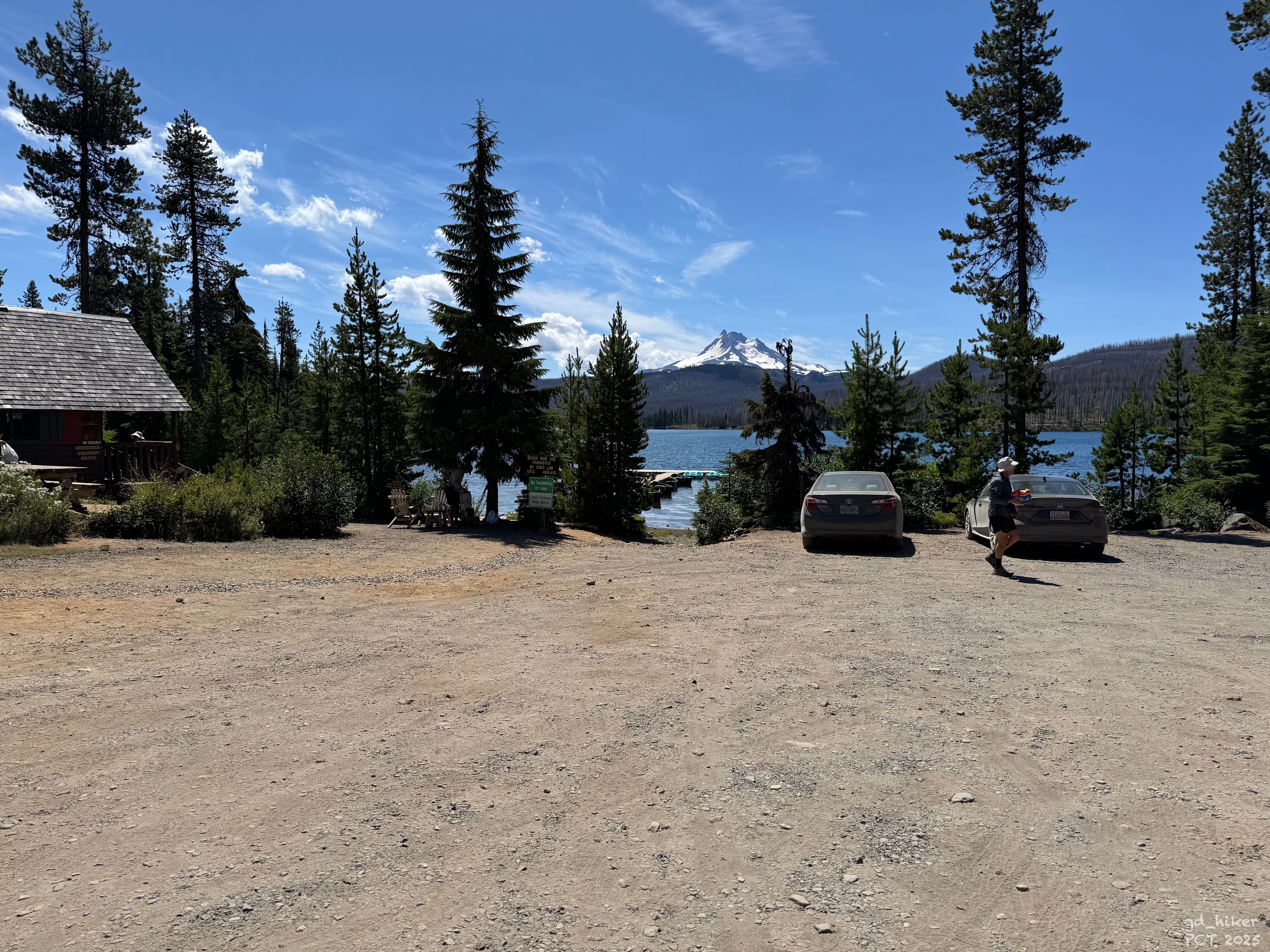 About 3.5 miles to Olallie Lake Resort. I planned to take a longer break there. There’s supposed to be a well-stocked shop, which I was curious about.