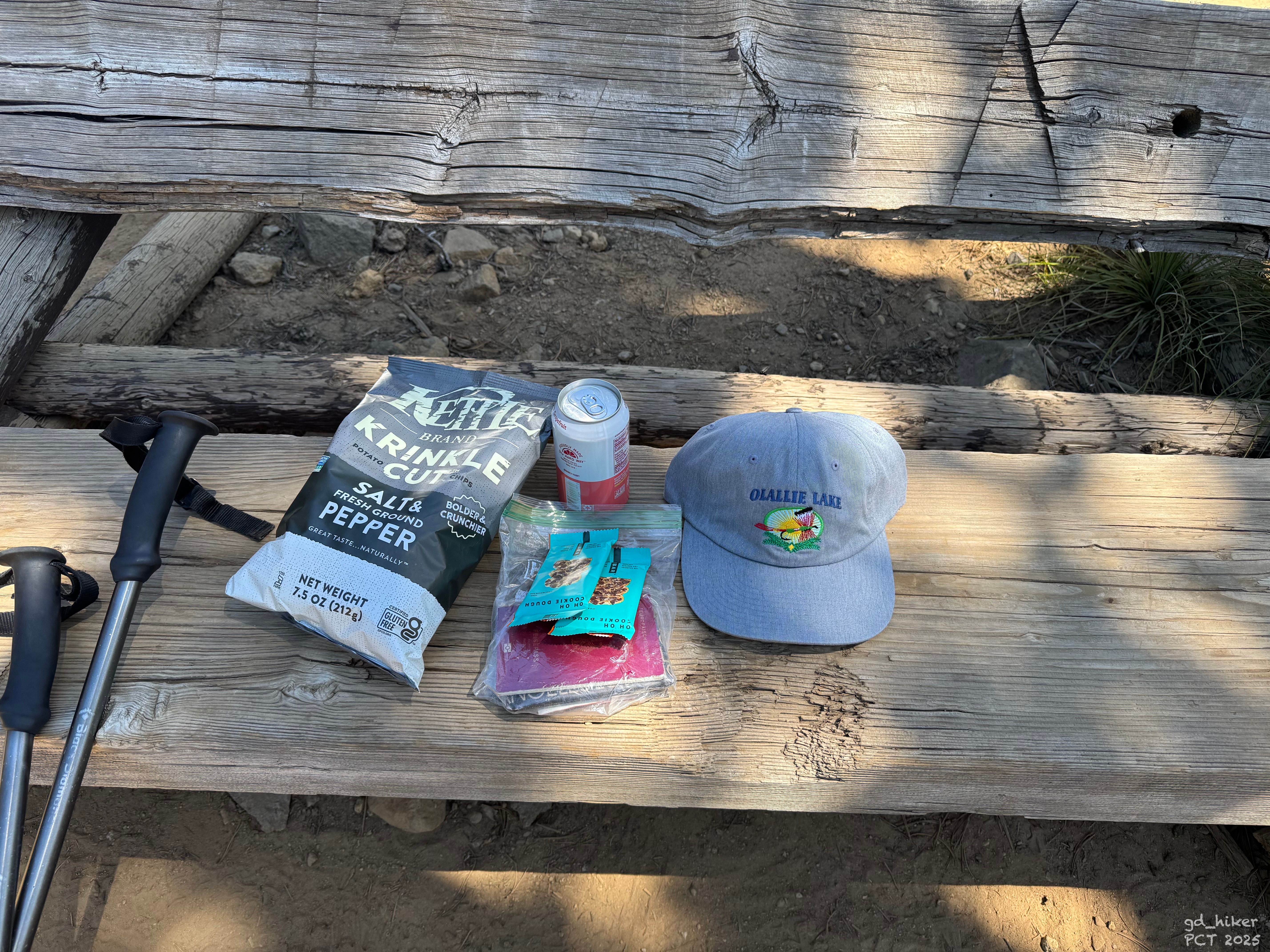I left the shop with a bag of chips, two protein bars, a can of flavored water, and a new cap.