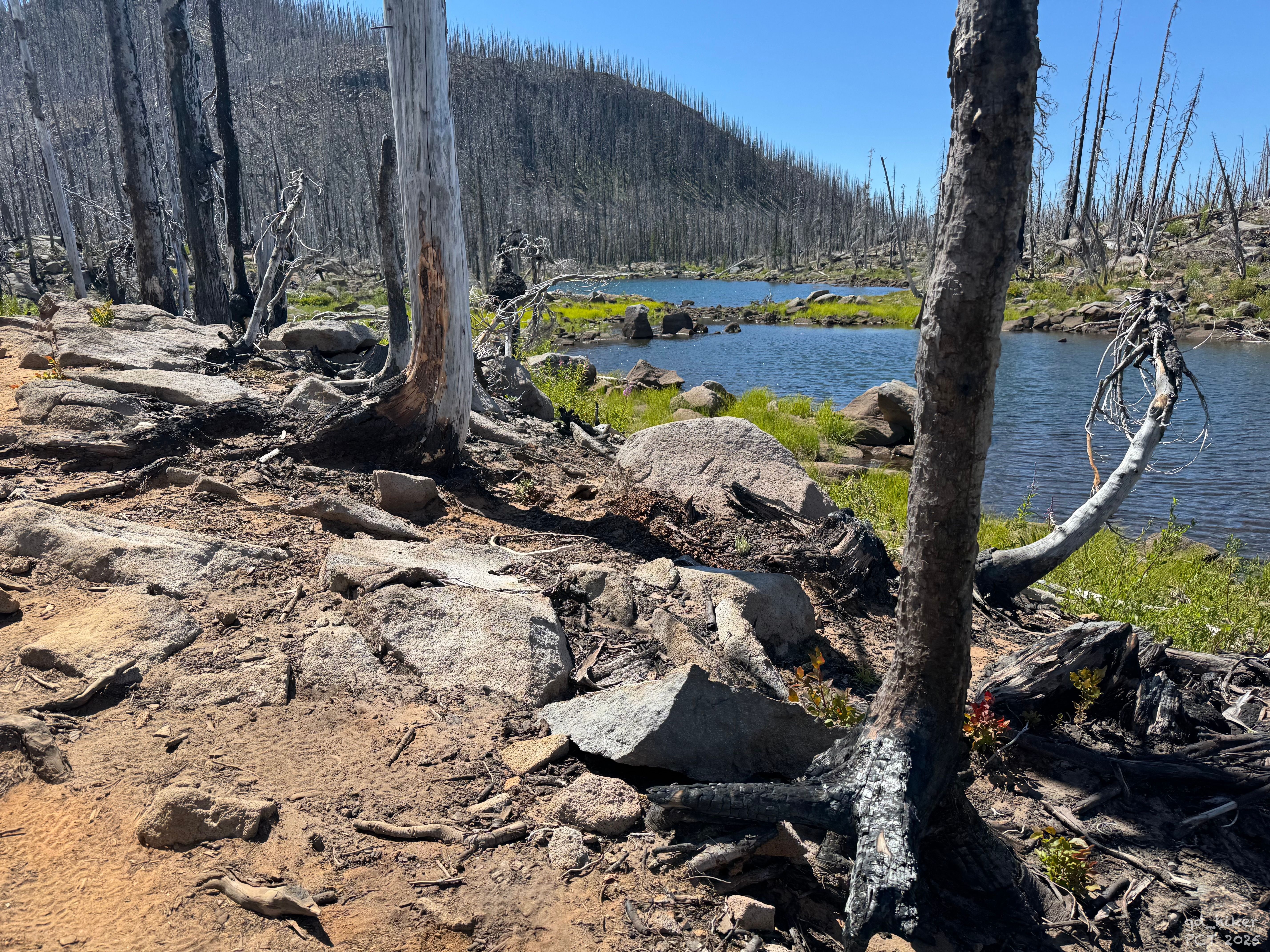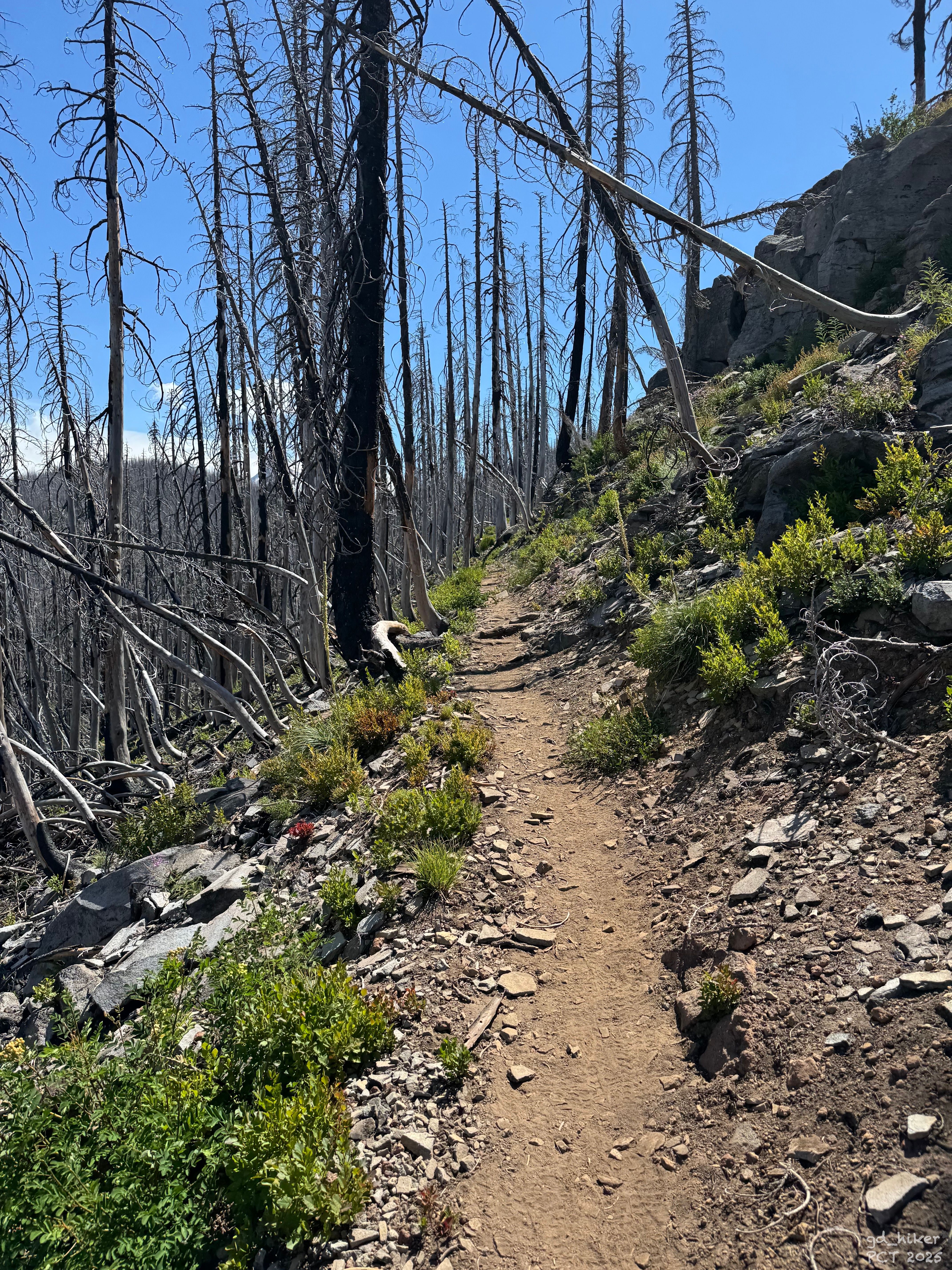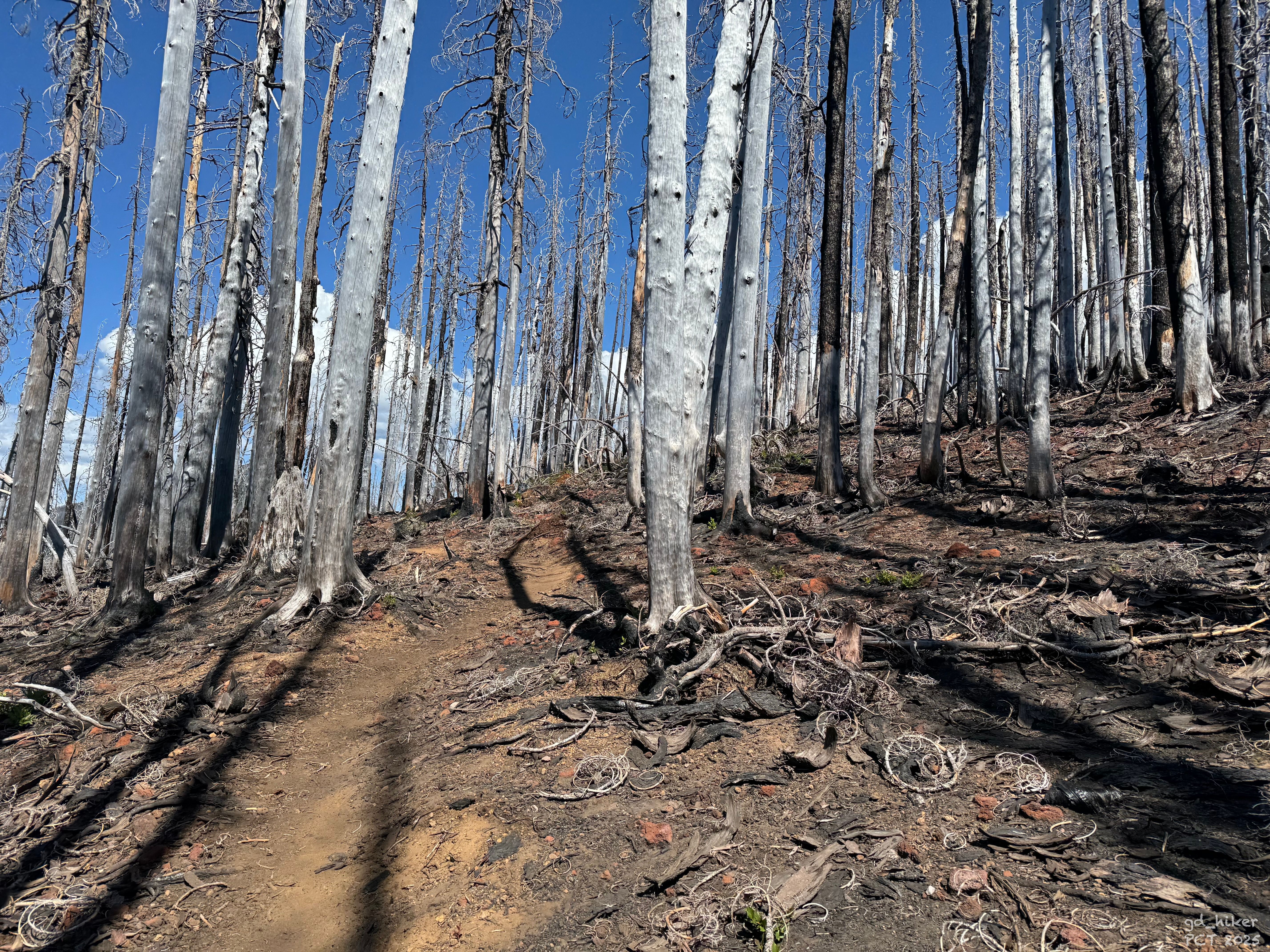 After a long break of over an hour, I continued on – uphill again through the Burn Zone.