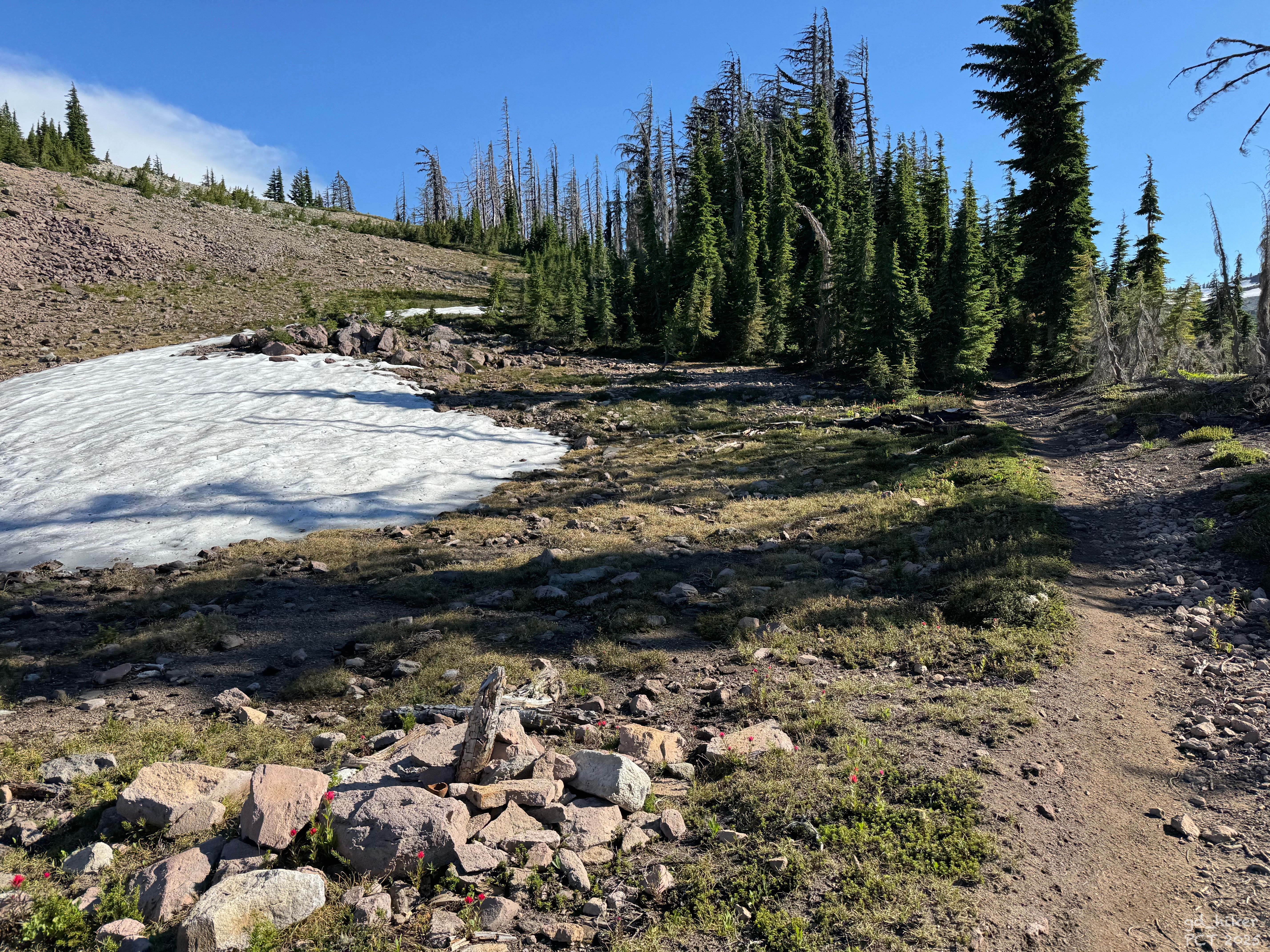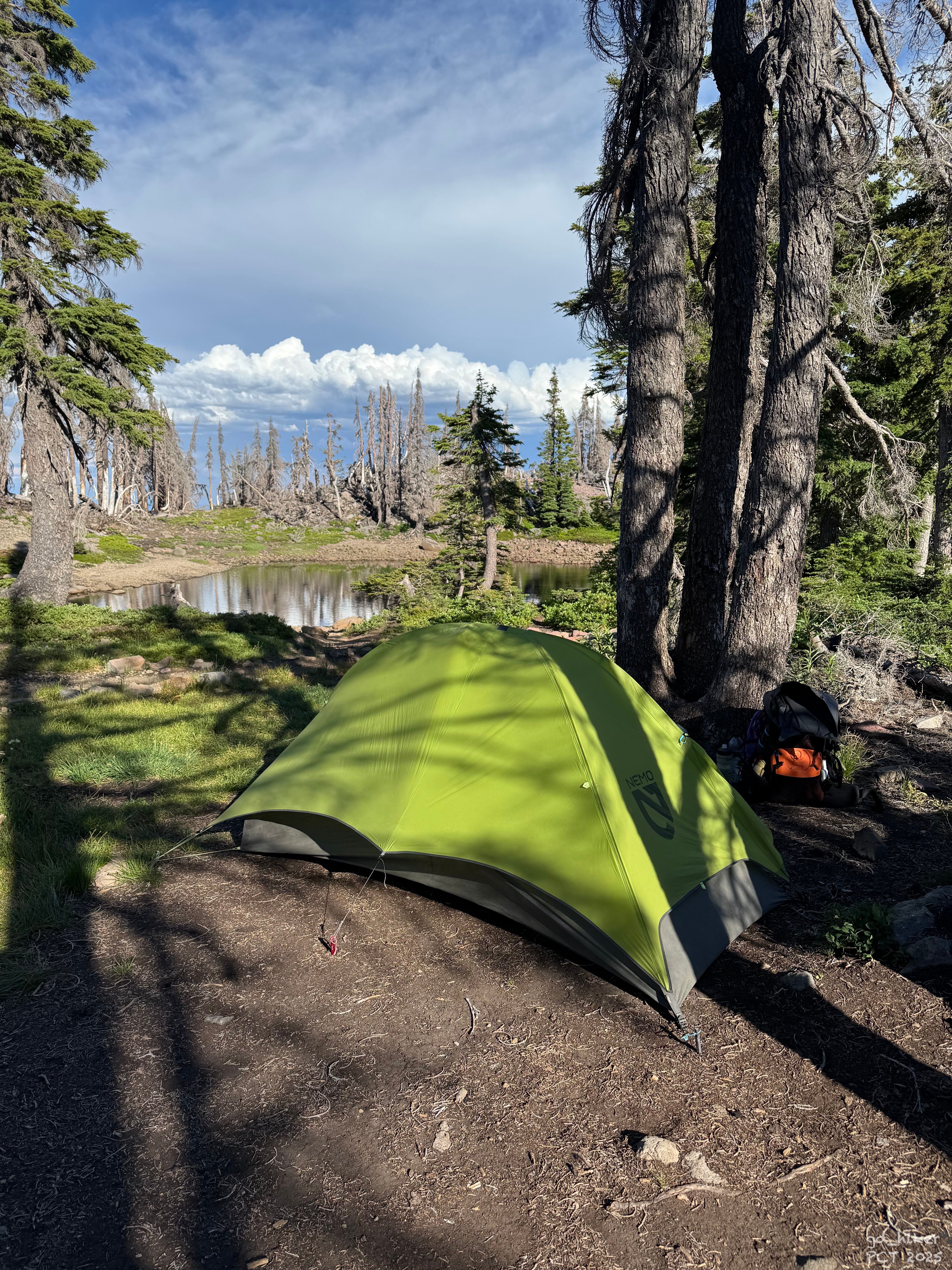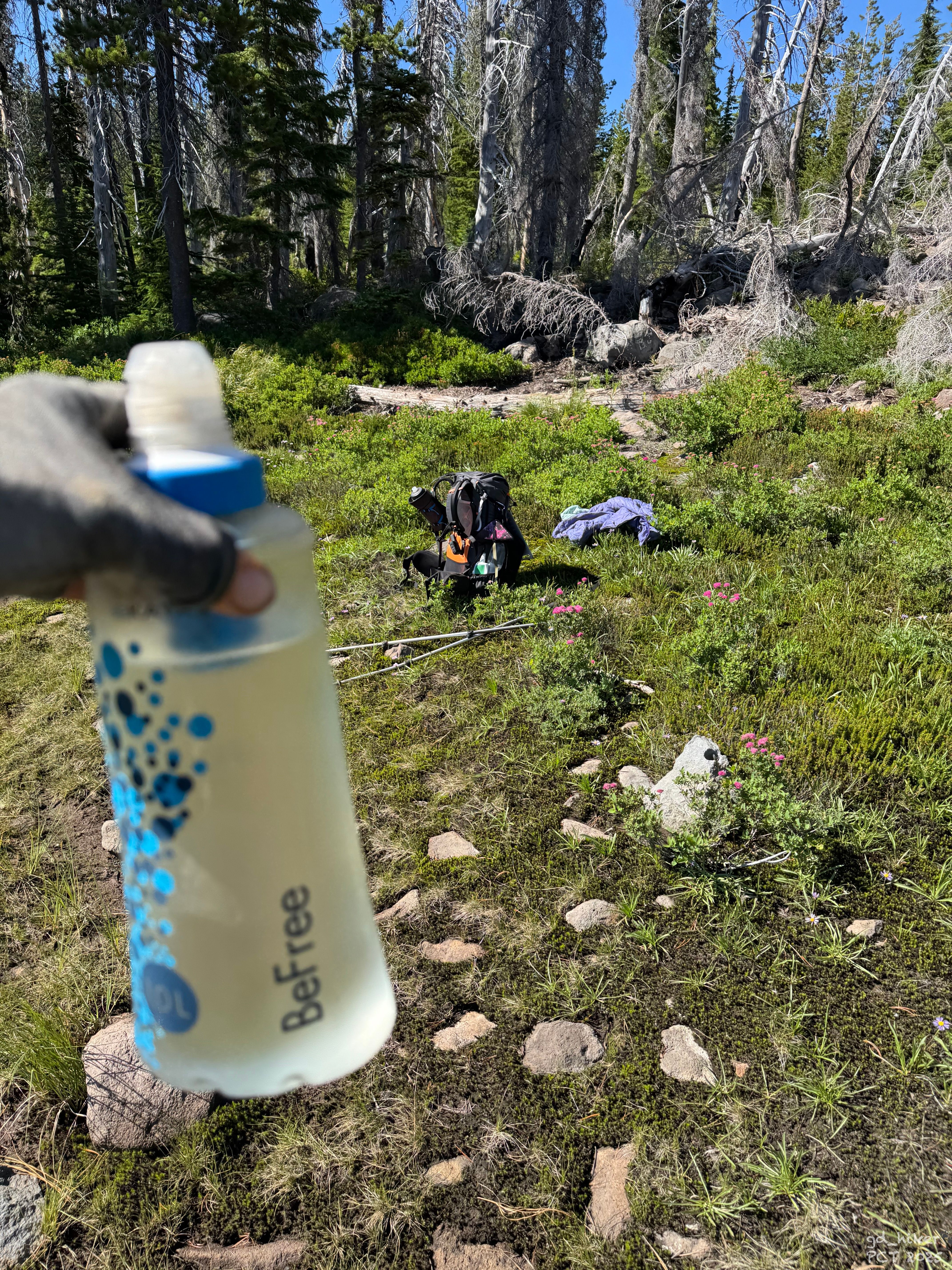 At a lake, I refilled my water since no NOBO hiker could confirm that there would be another water source before Mount Jefferson. Even FarOut wasn’t clear.