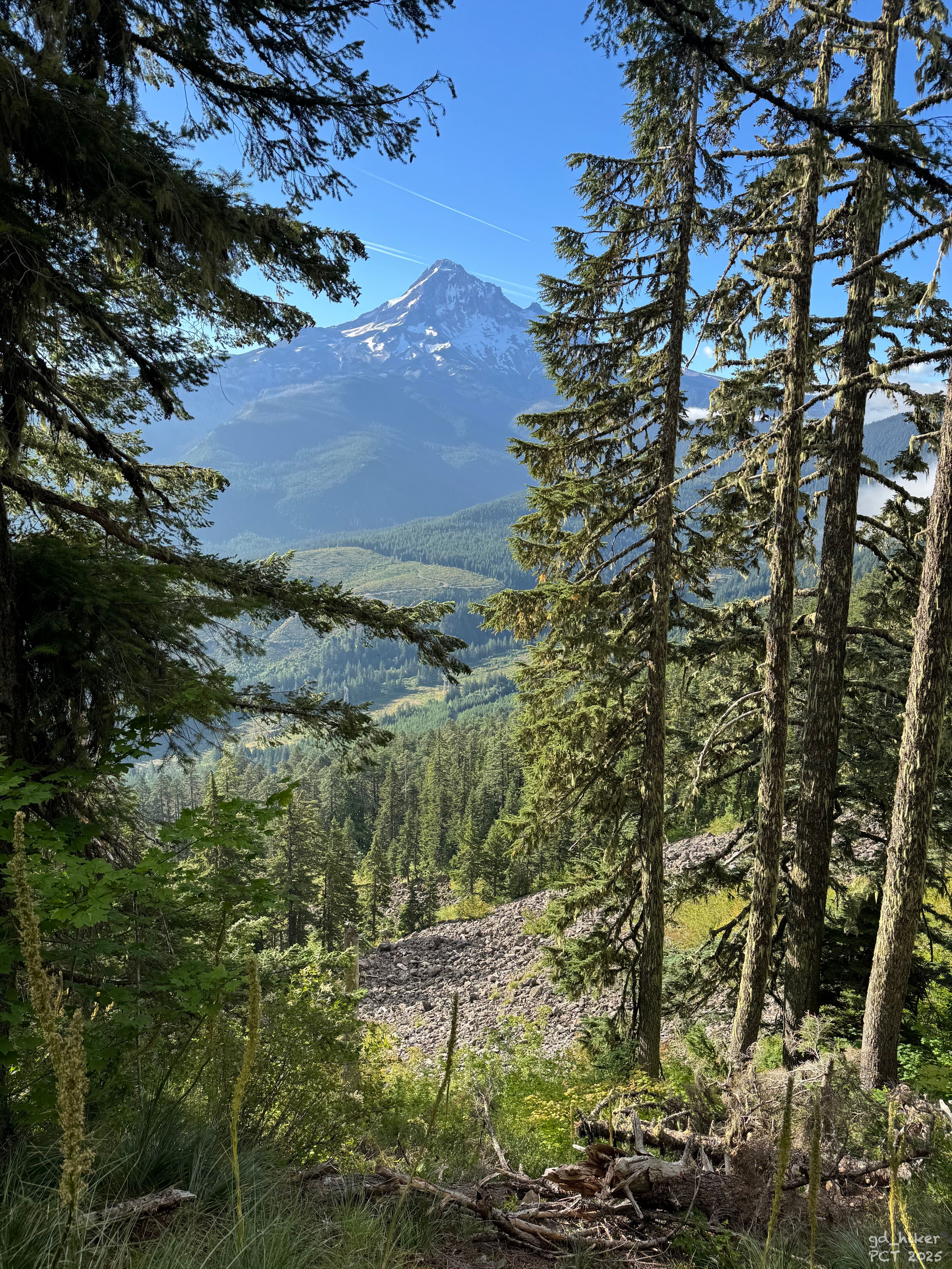 Today was 40 km, and it would be wild ups and downs. Mt. Hood would be with me all day, until I pitched my tent at its base at the end of the day.