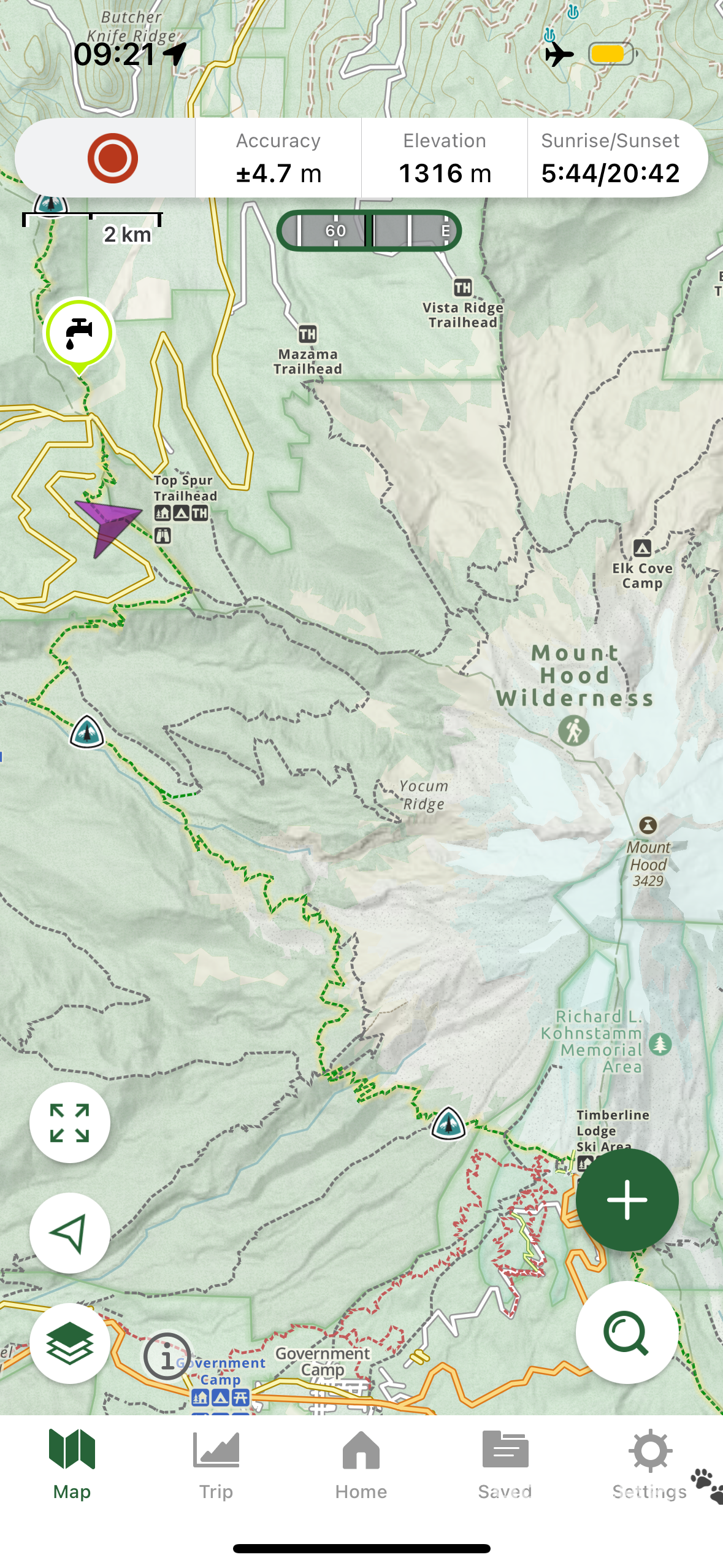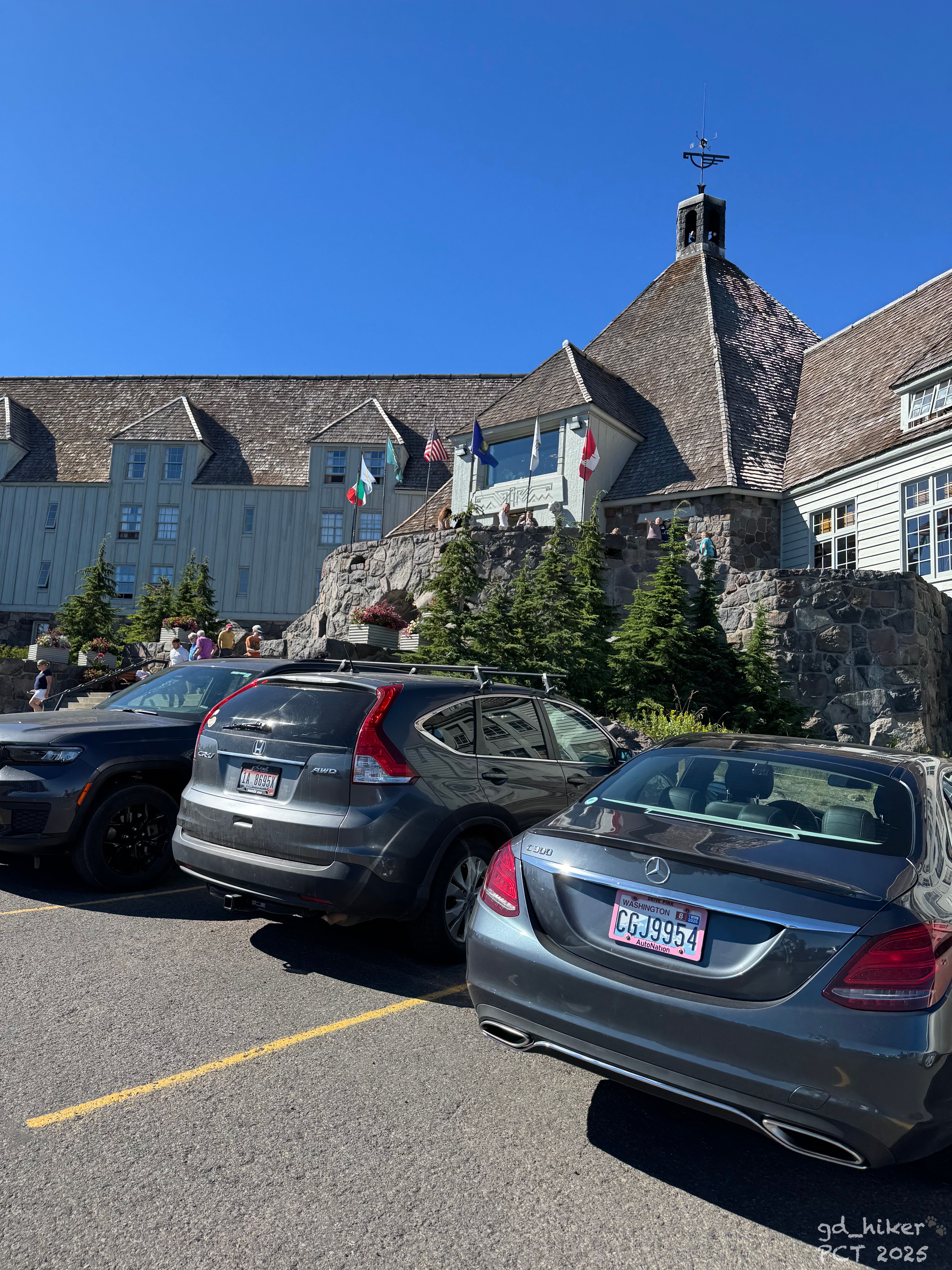 Um 16:45 Uhr sah ich endlich die Spitze der Timberline Lodge. Auf dem Weg dorthin war ich an den beiden 5G-Towers vorbeigekommen und hatte vollen Empfang.