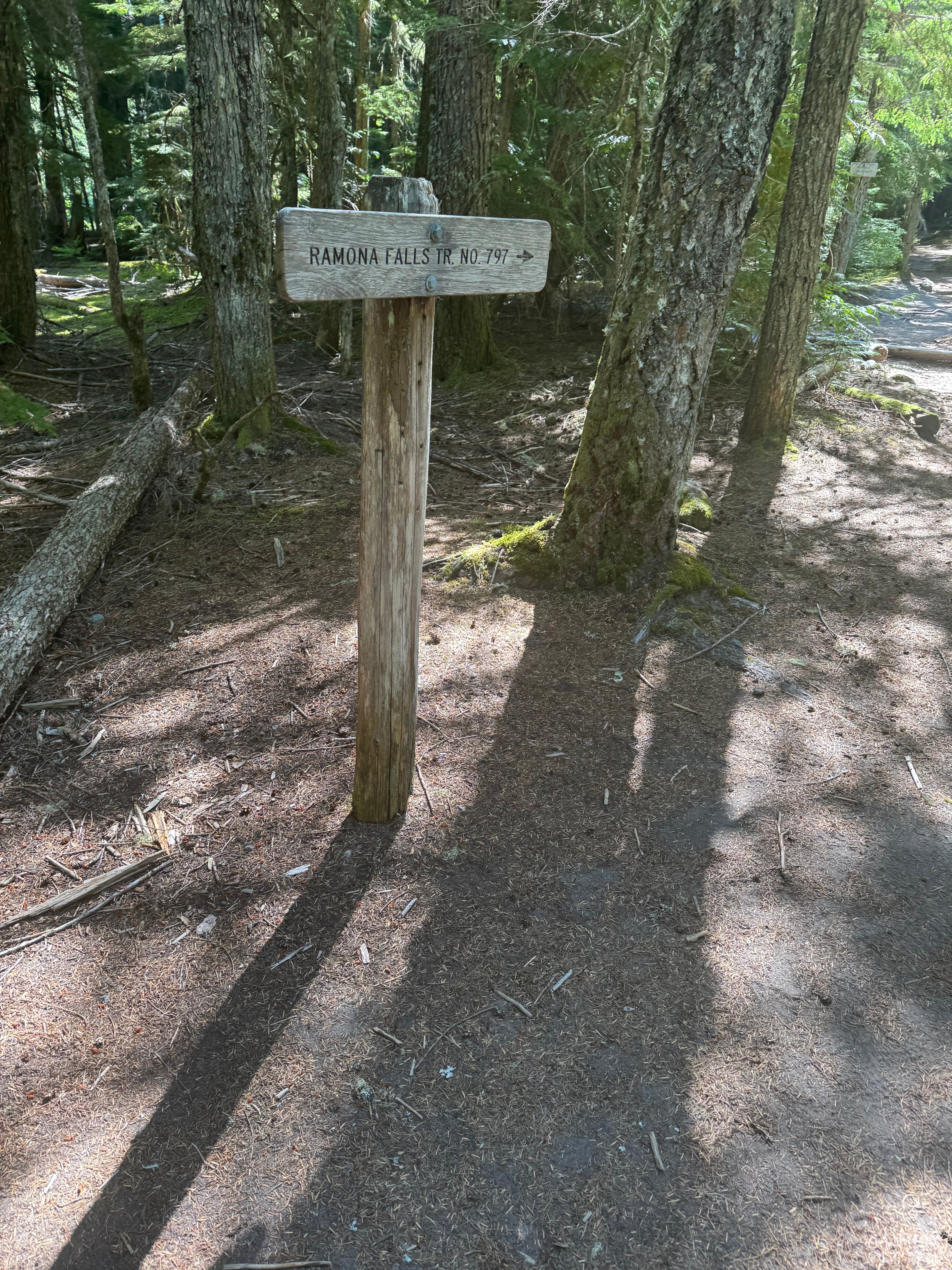 At this sign, I left the PCT to the left and took an alternate route to Ramona Falls for the first time. I’d been here before, but the waterfall is so beautiful, I don’t mind a second visit.