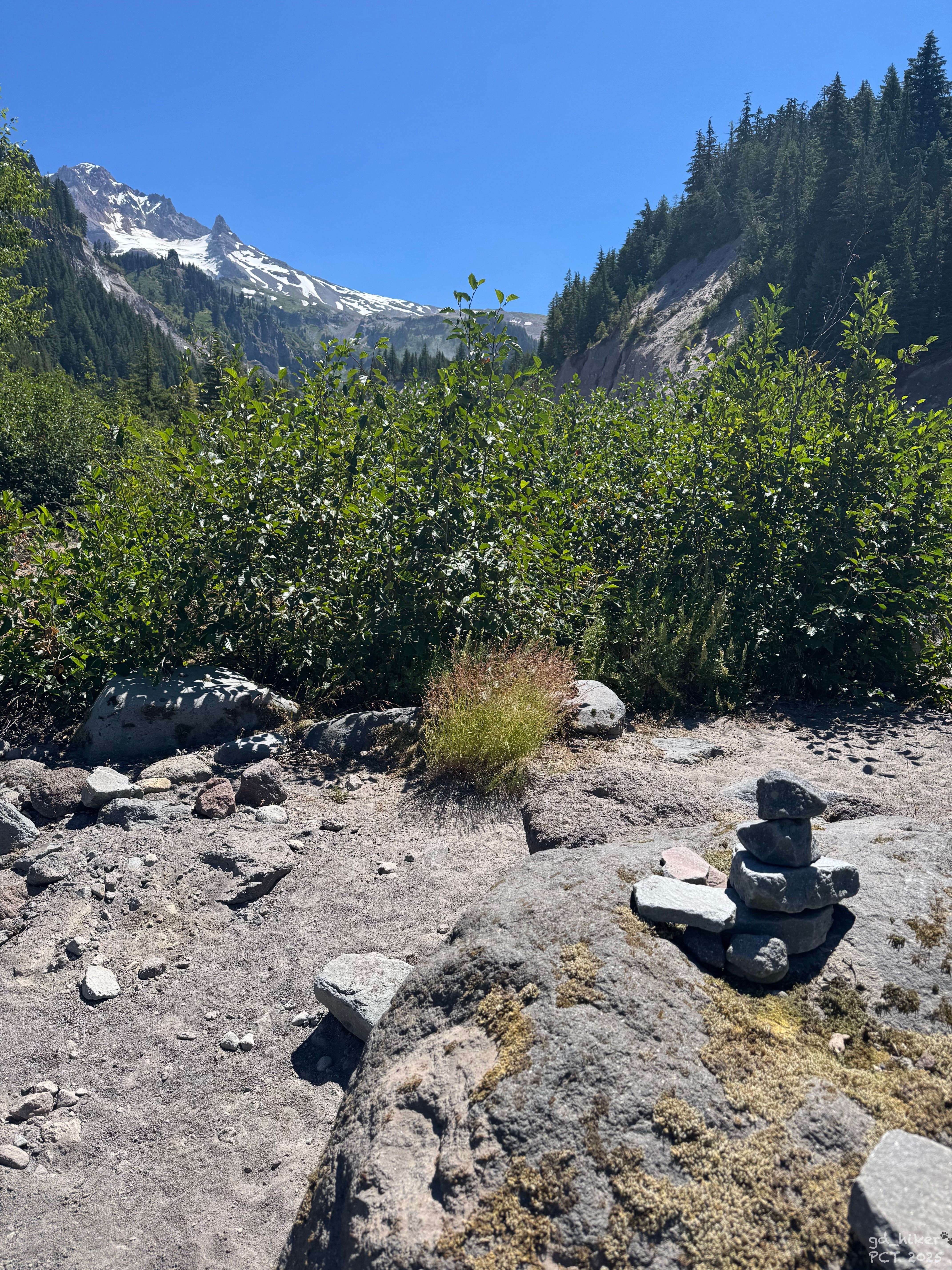 Ab hier wiesen mir kleine Steinhaufen den Weg, und so fand ich mich schließlich vor dem Sandy River wieder.