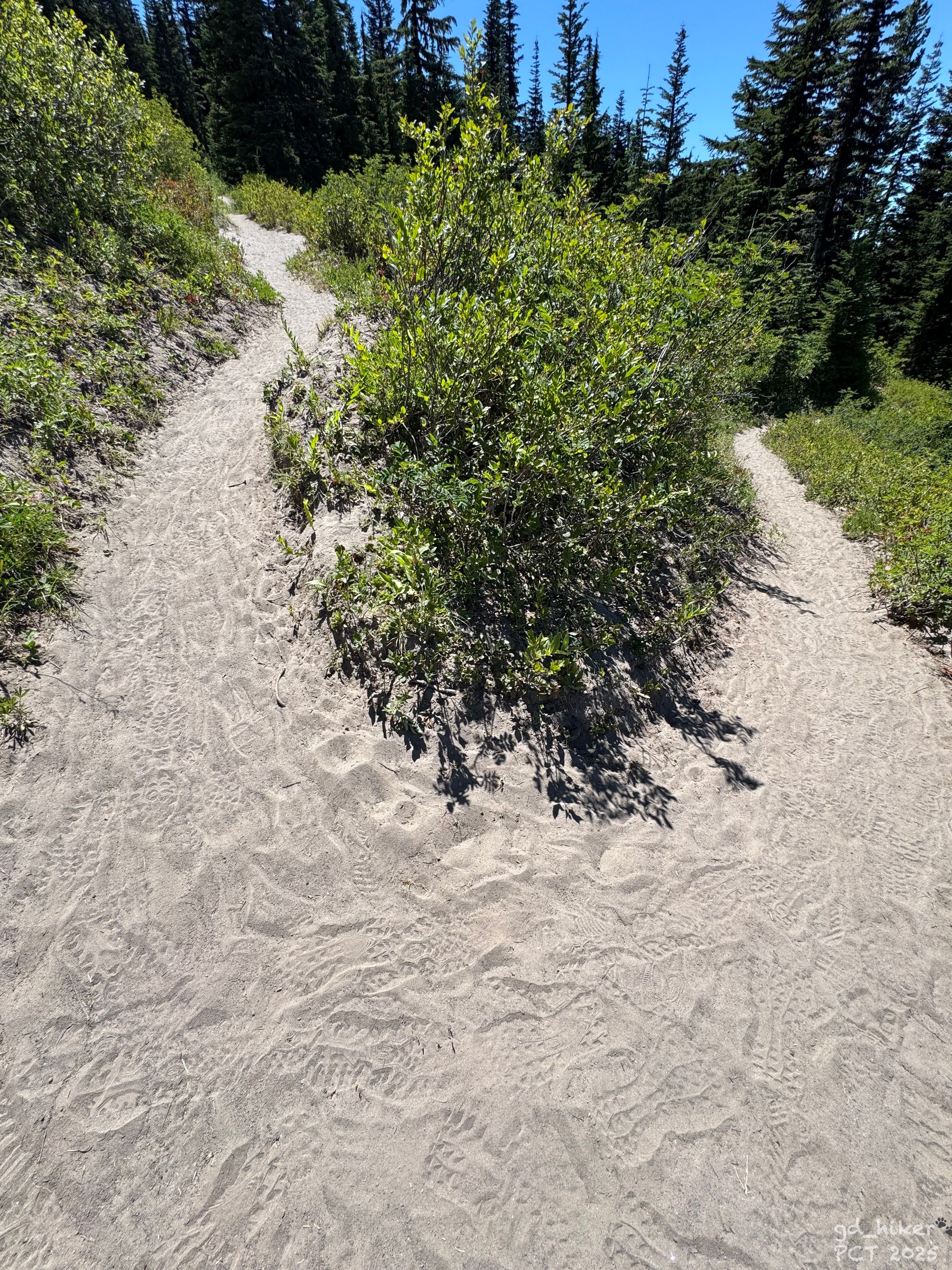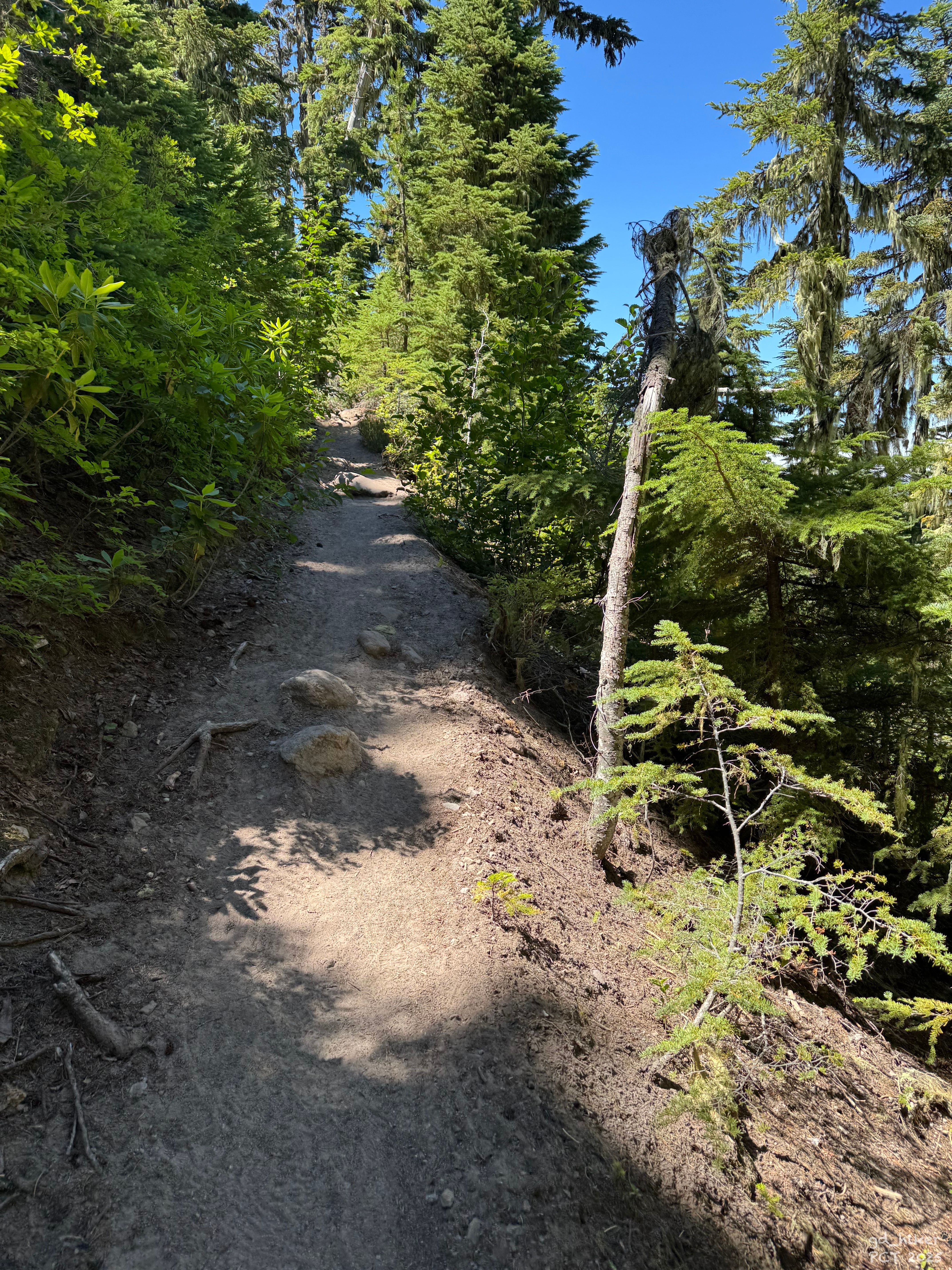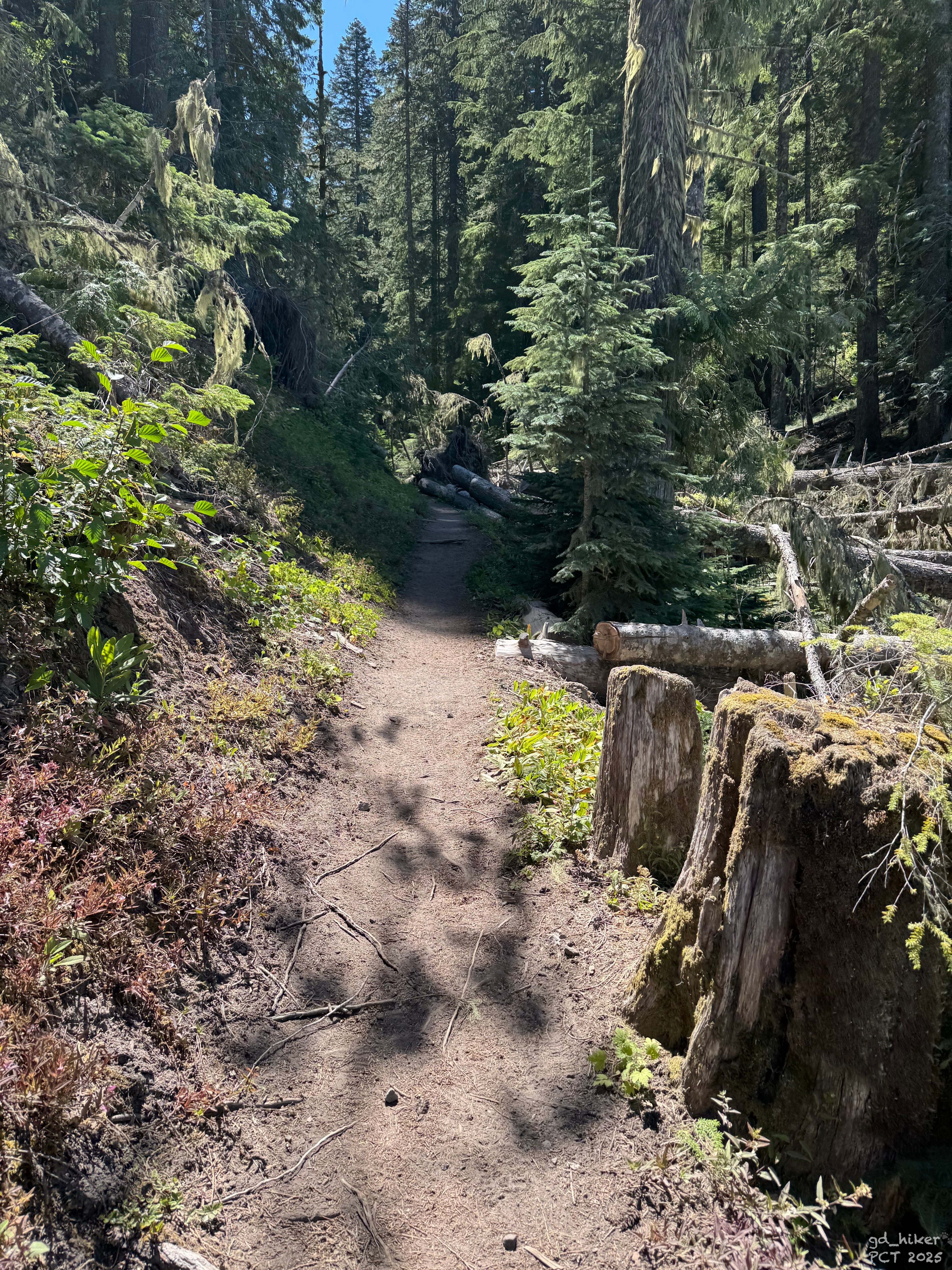 Auf einmal sah ich den Weg unter mir. Keine Ahnung, wo der plötzlich herkam — aber ich stolperte schon den kleinen Hang hinab und stand wieder auf dem PCT.