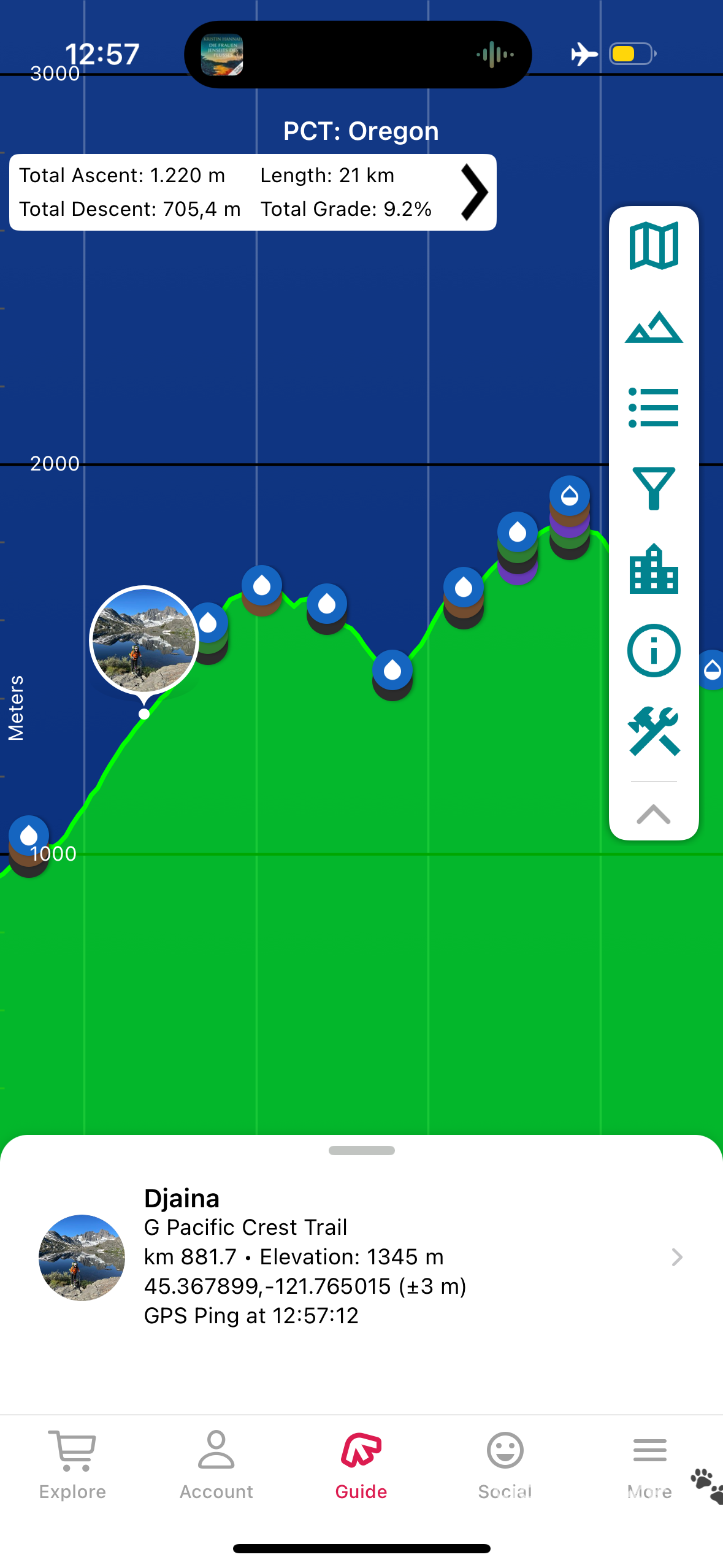 Und genau so kam es dann auch. Erst landete ich auf einem Campspot, von dem es so aussah, als würde dort ein Weg runter zum Creek führen. Tat er aber nicht, also irrte ich erst mal suchend herum.
