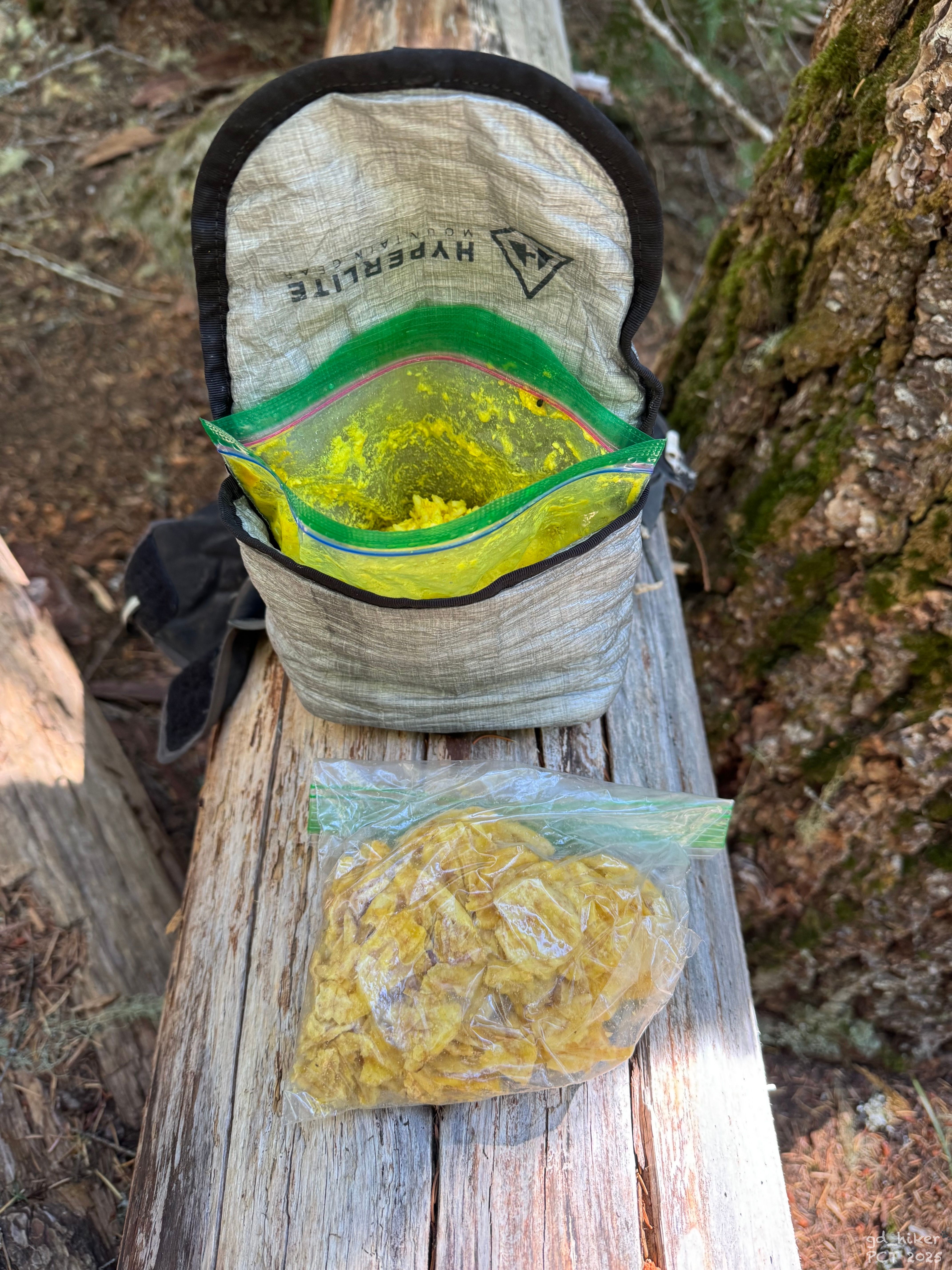 At the entrance, I immediately found trail magic: chips and energy bars.