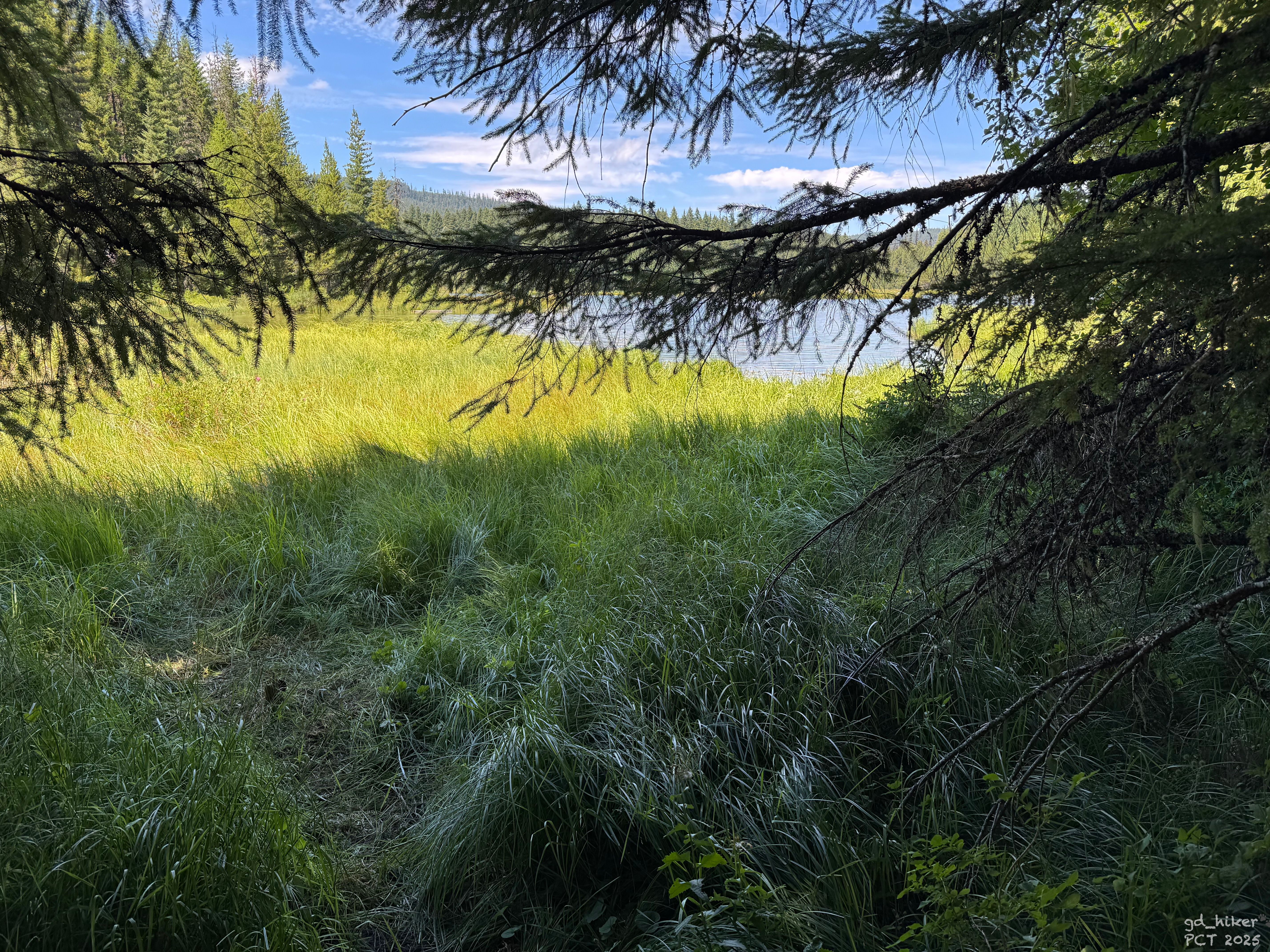 I reached the edge of Timothy Lake. It was quite large and would accompany me for a while today.