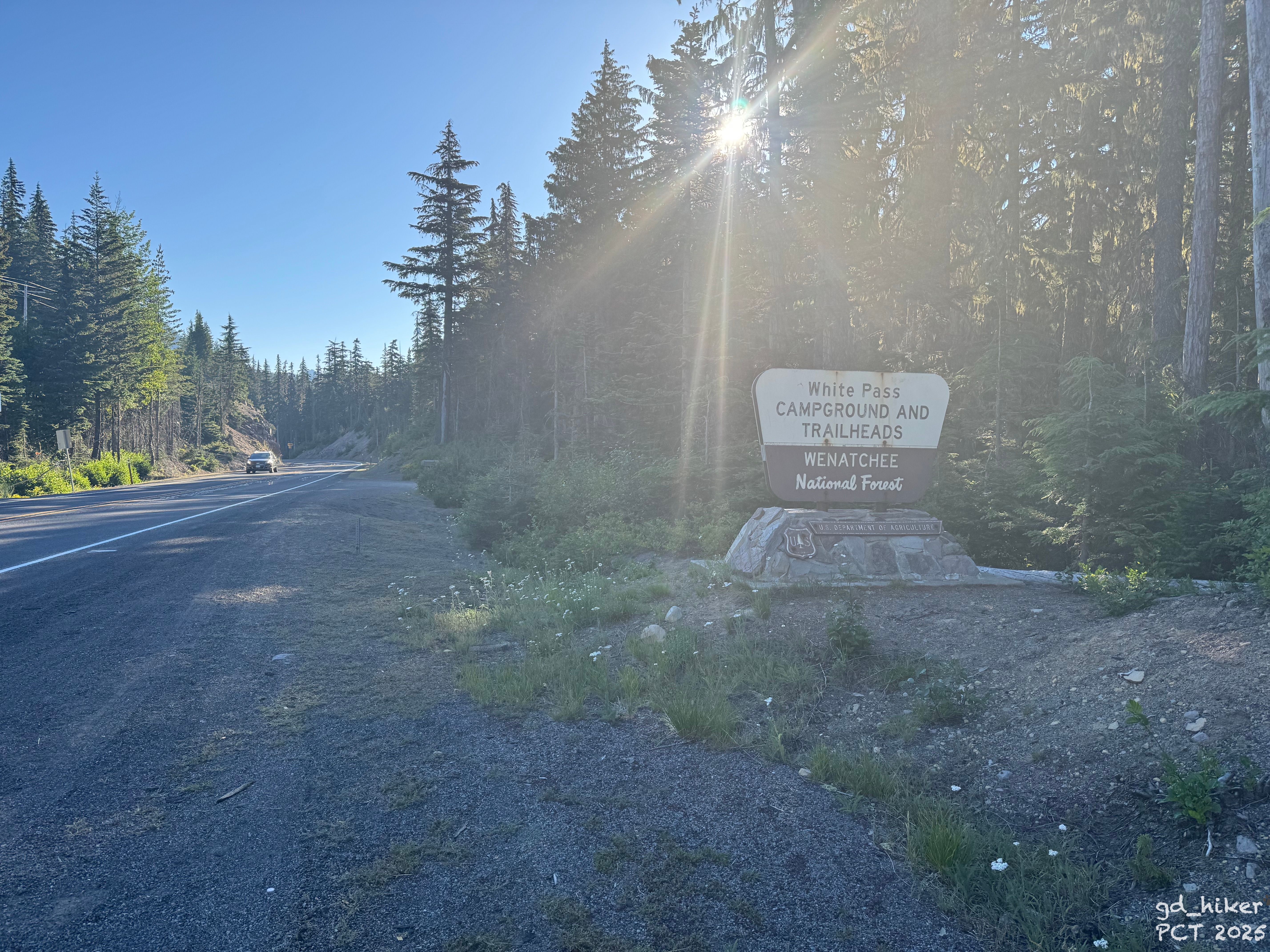 At 7:20 AM, I set off along the highway back to the northern trailhead of White Pass.