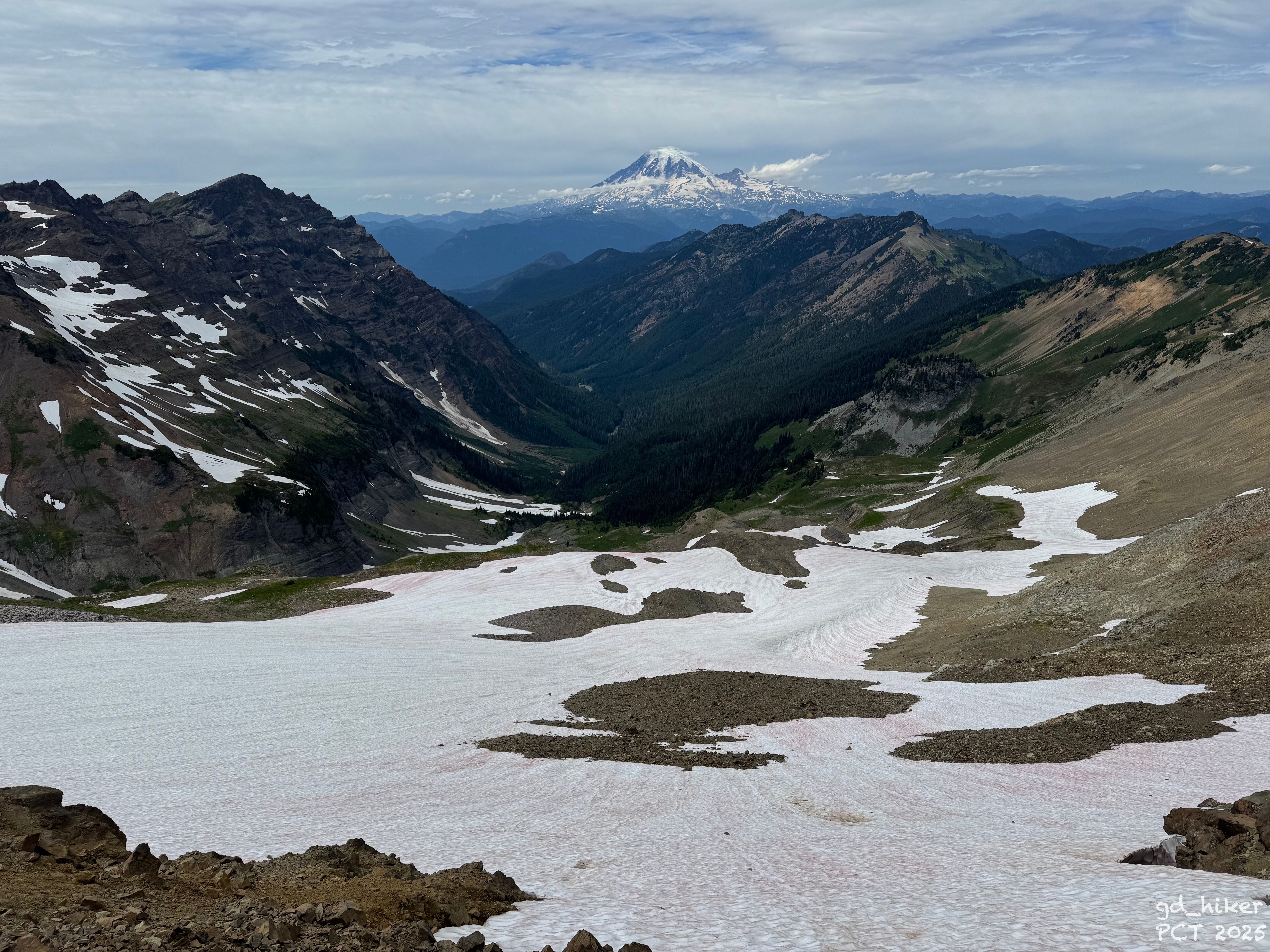 Ich meine ich hatte eine wahnsinnig schönen Blick auf den Packwood Glacier und dem Mt. Rainier im Hintergrund.