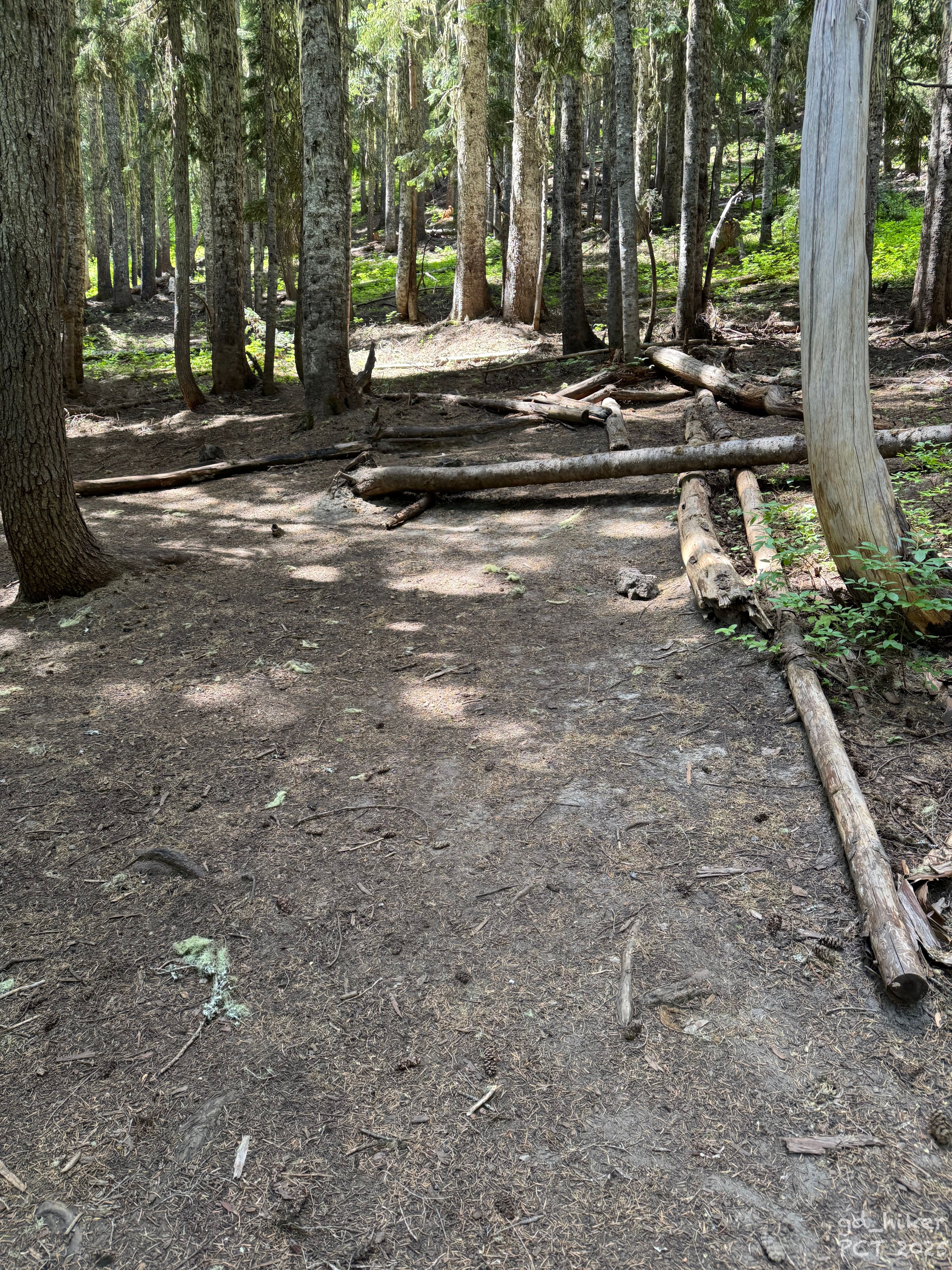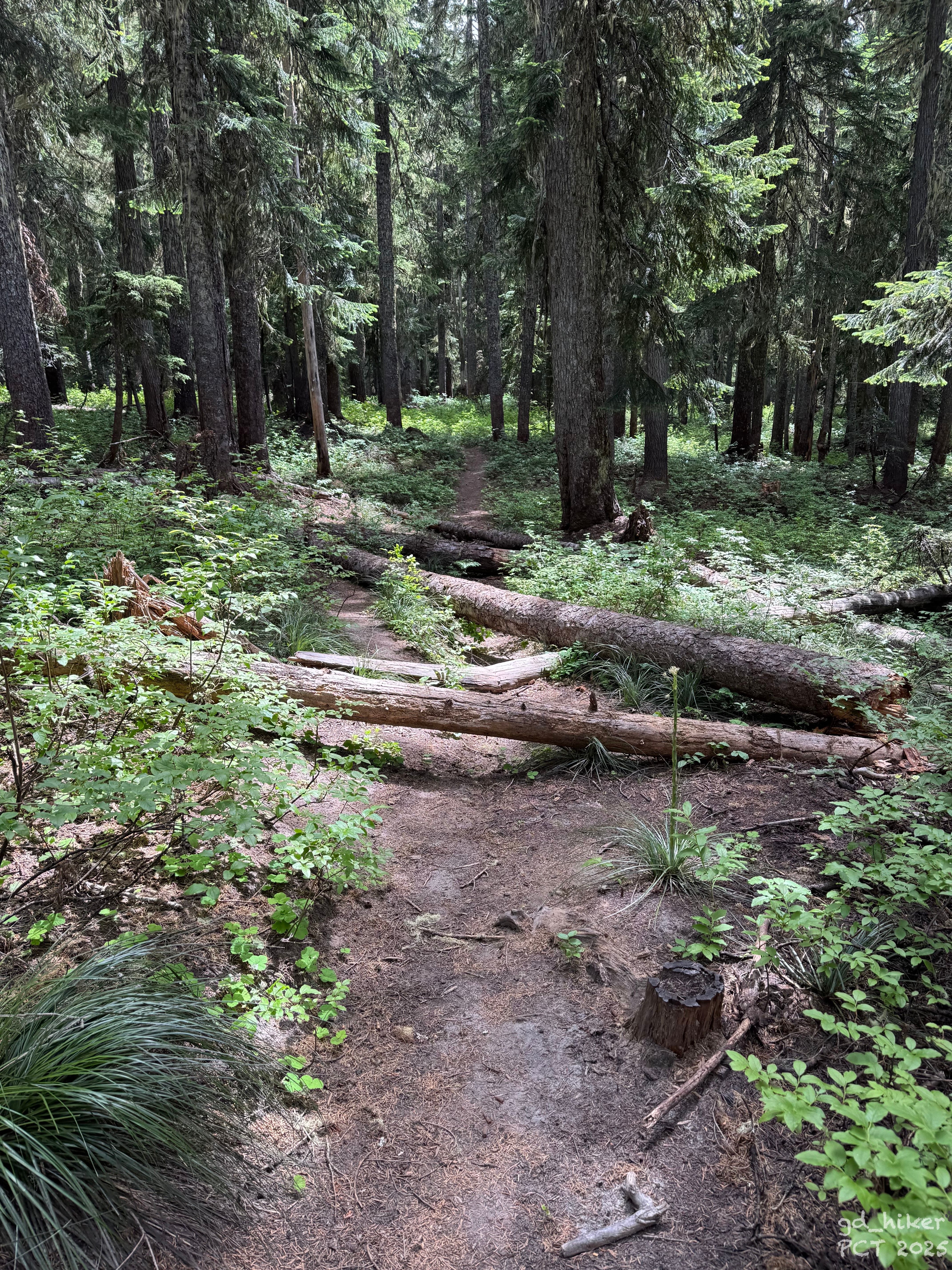 I approached a trailhead – Midway Creek – where a few forest roads crossed the trail.