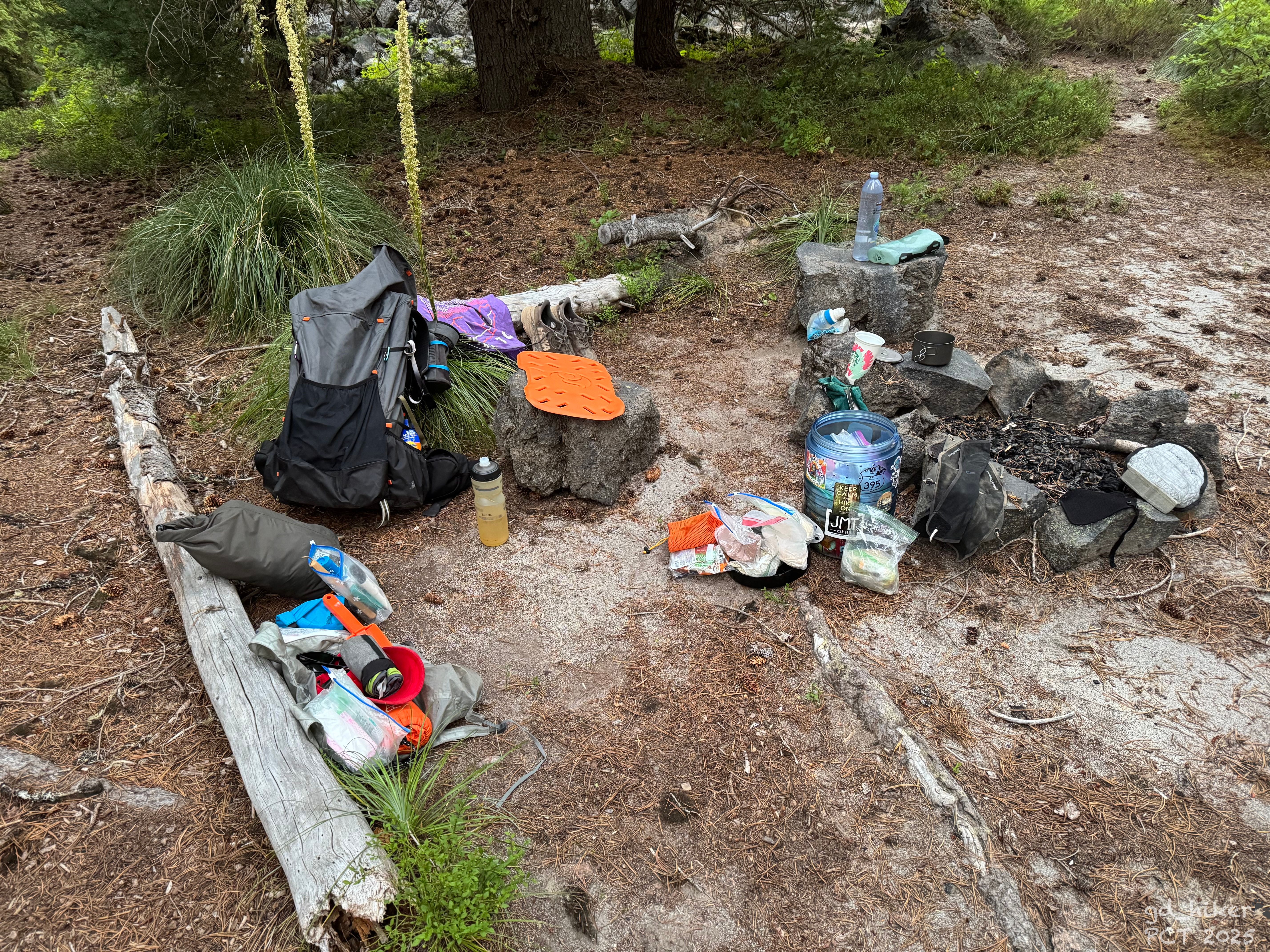 No answer came — but ten minutes later, a PCT NOBO hiker appeared from the northern trailhead. He had just contacted a trail angel, who would arrive in about 15 minutes. He definitely had room for two.