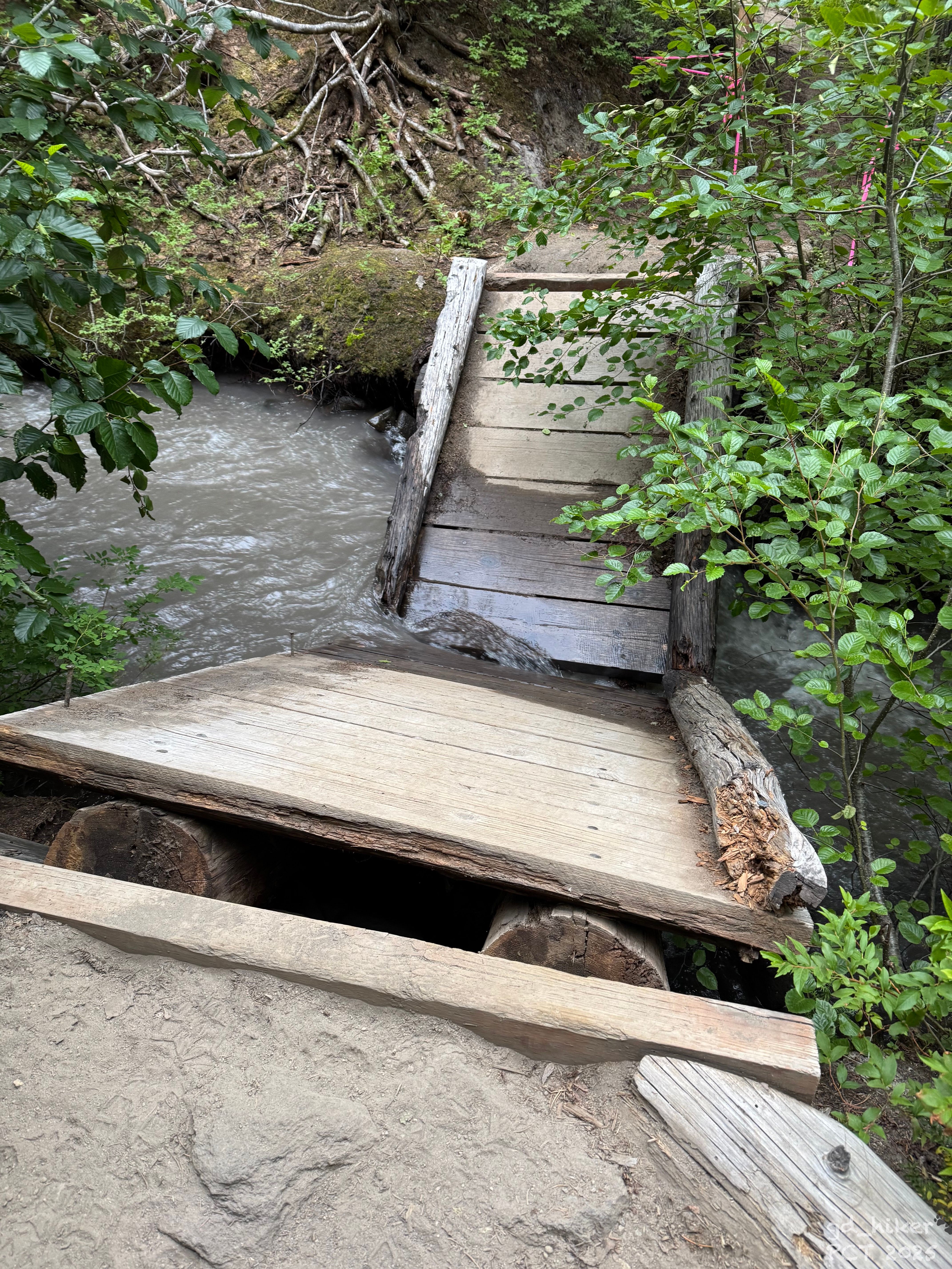 The Muddy Fork beneath it made it clear that fording wasn’t a good idea. Too wild, too fast.