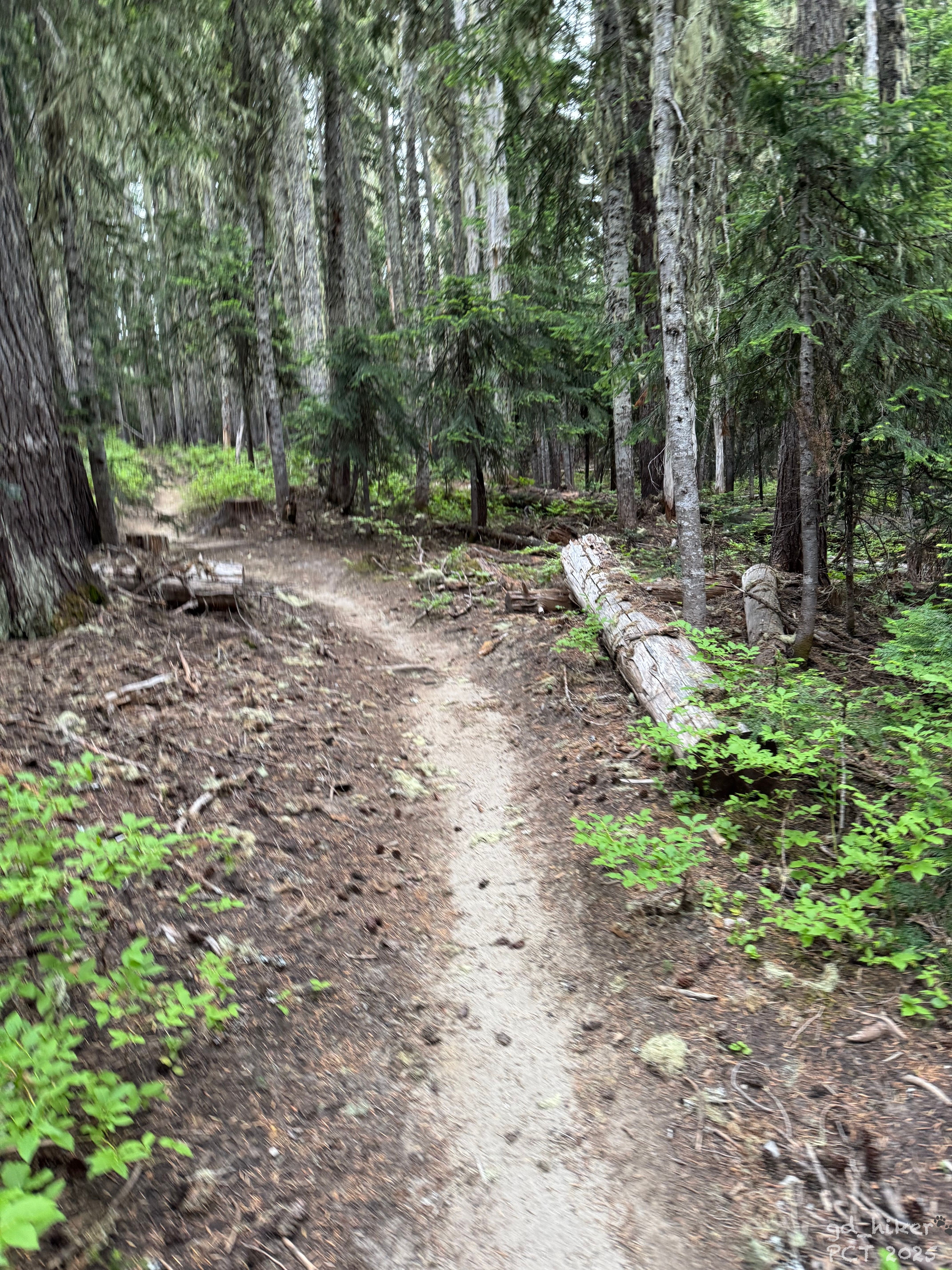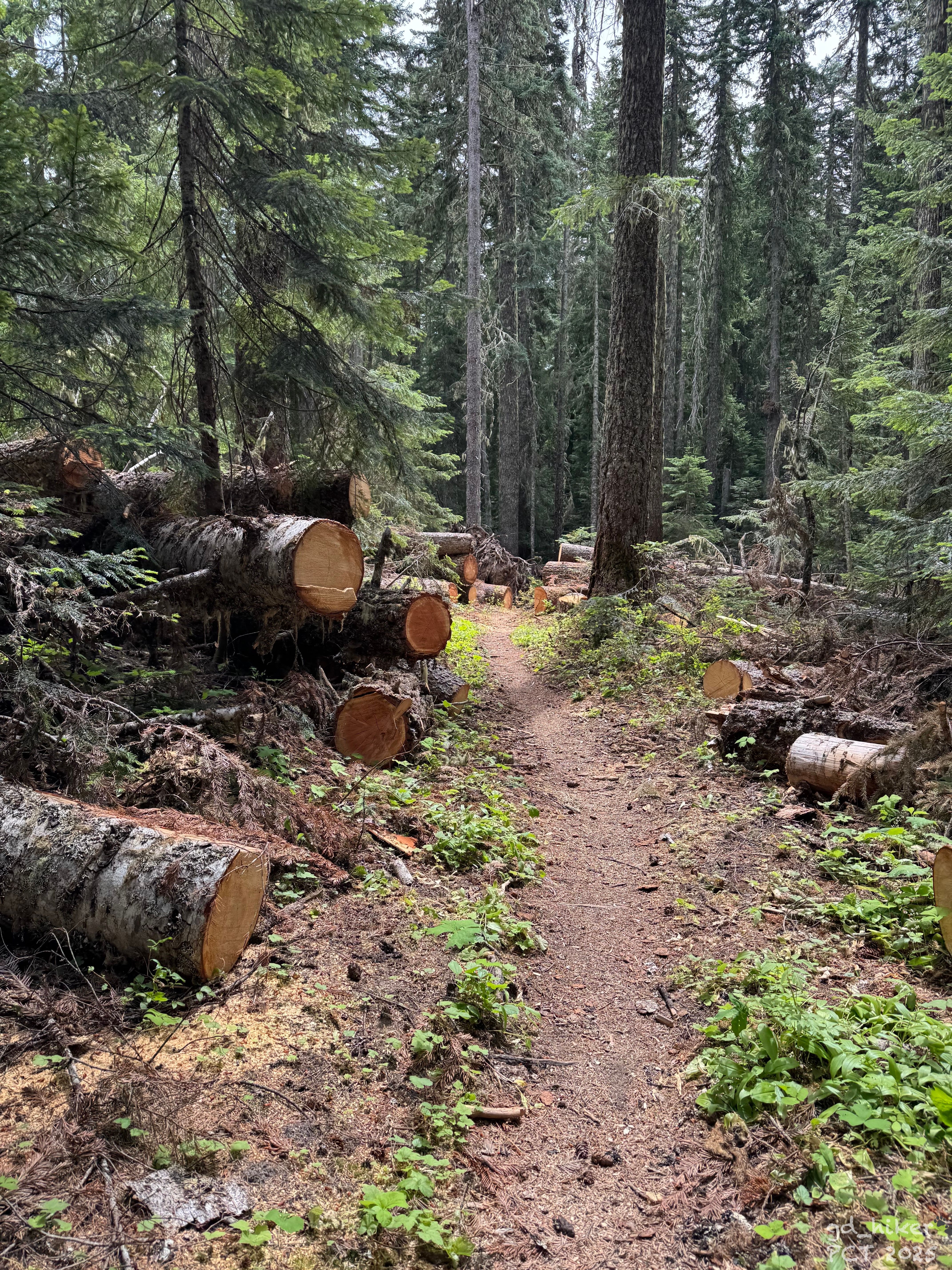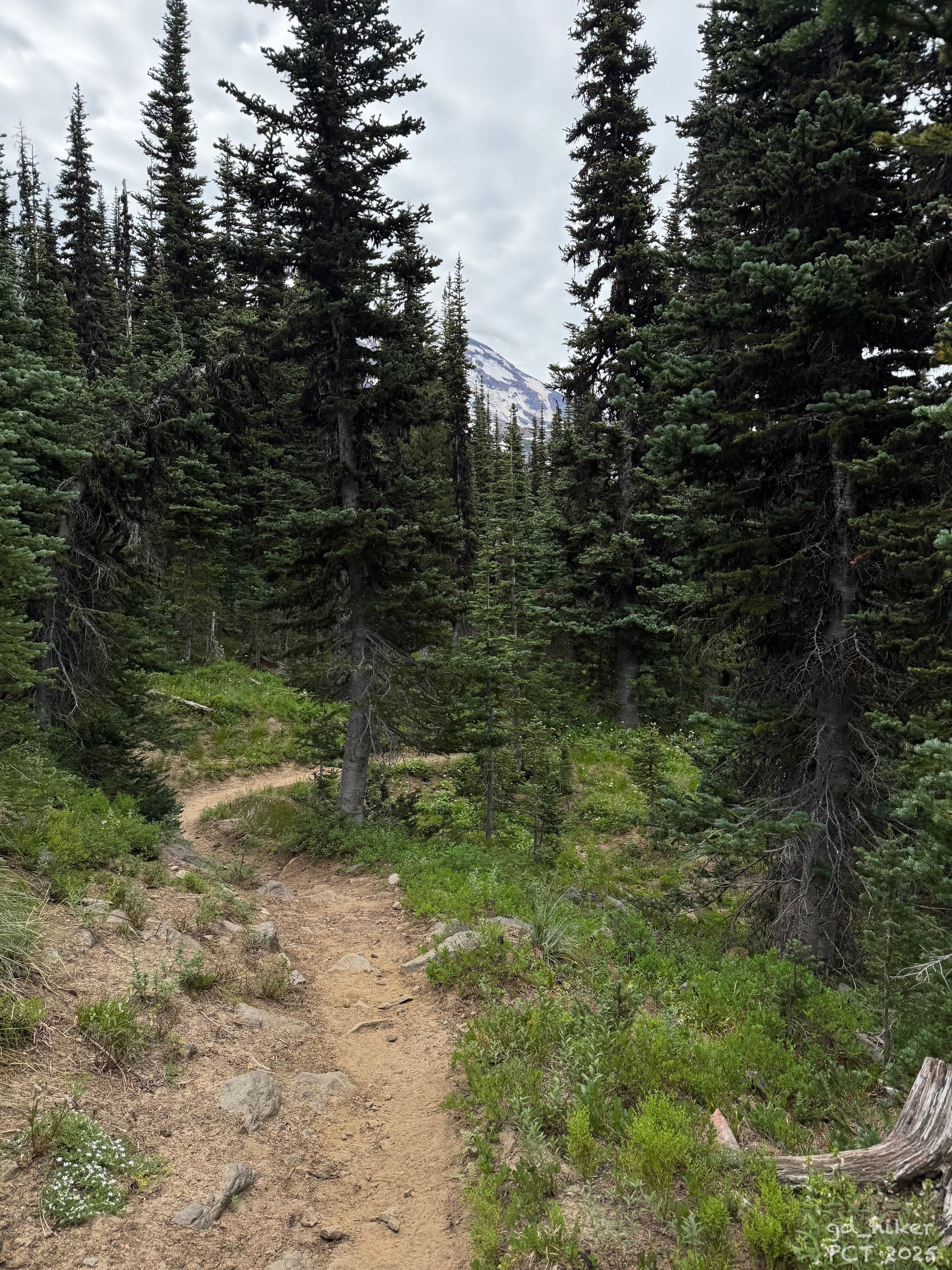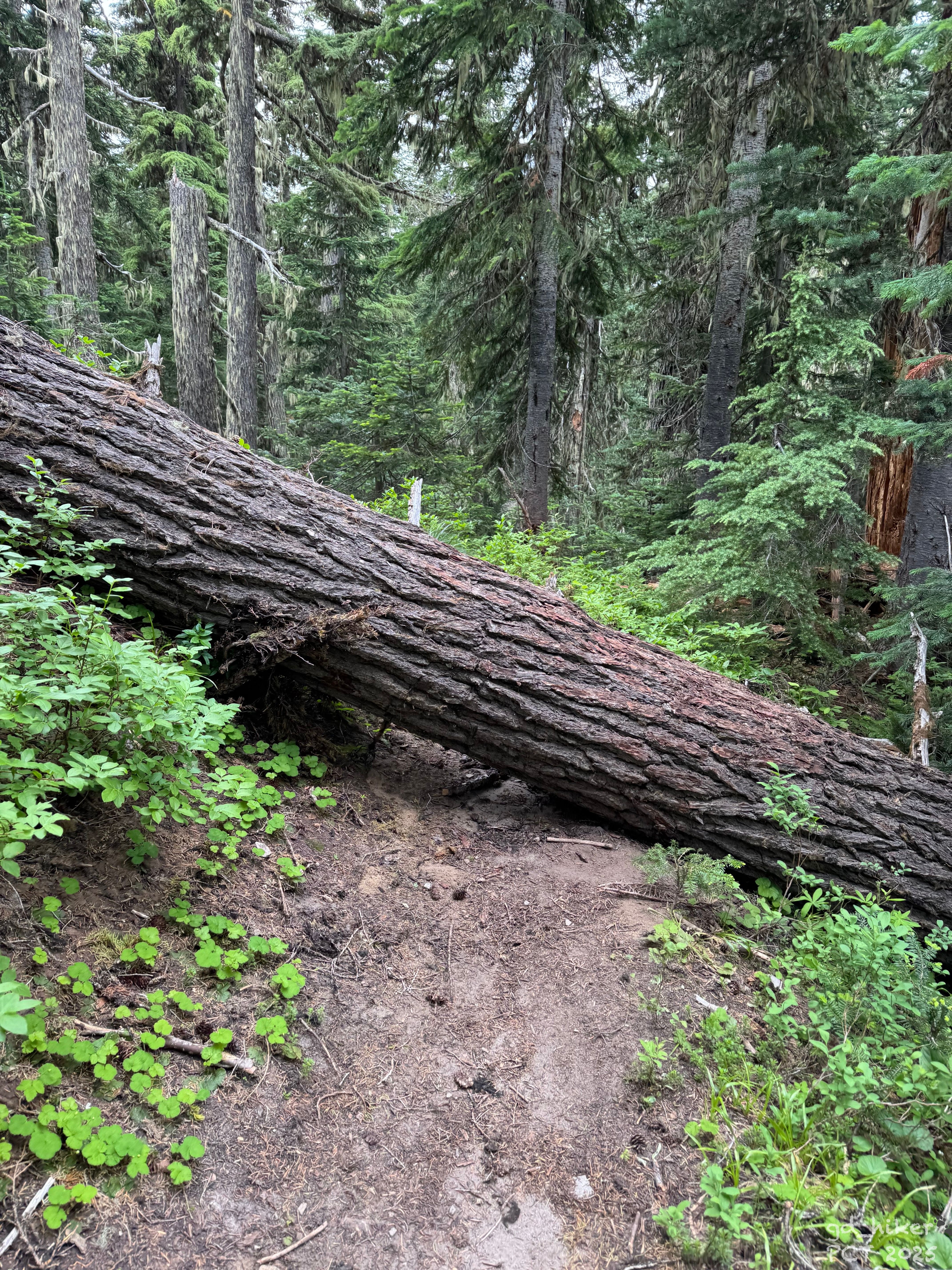 Once the trail eased up, I met a day-hiker couple. They were local and wanted to get a sense of the fallen trees’ scale. They were part of the Trout Lake Crew, who took it upon themselves to help thru-hikers by clearing the trail with their own resources.