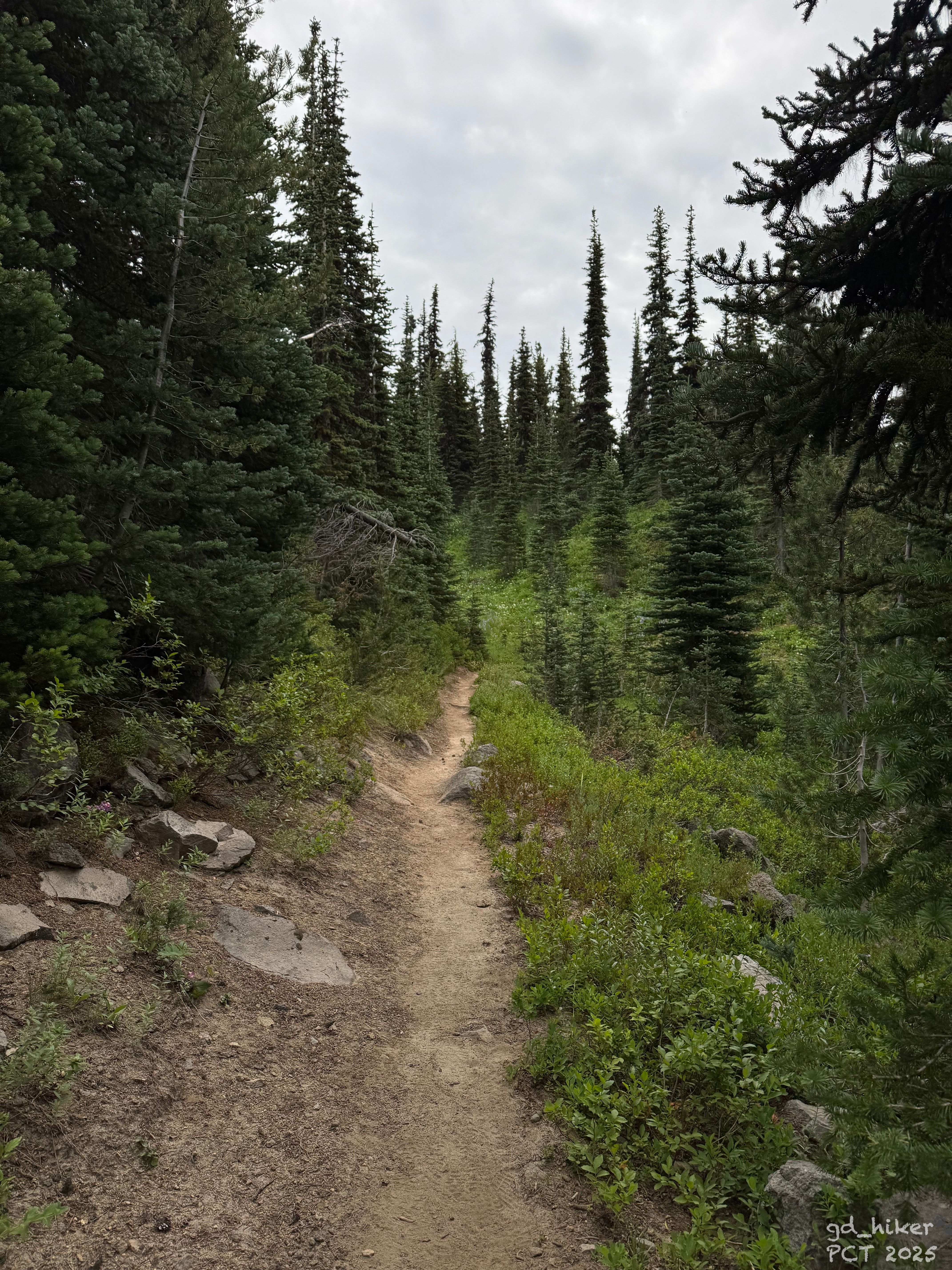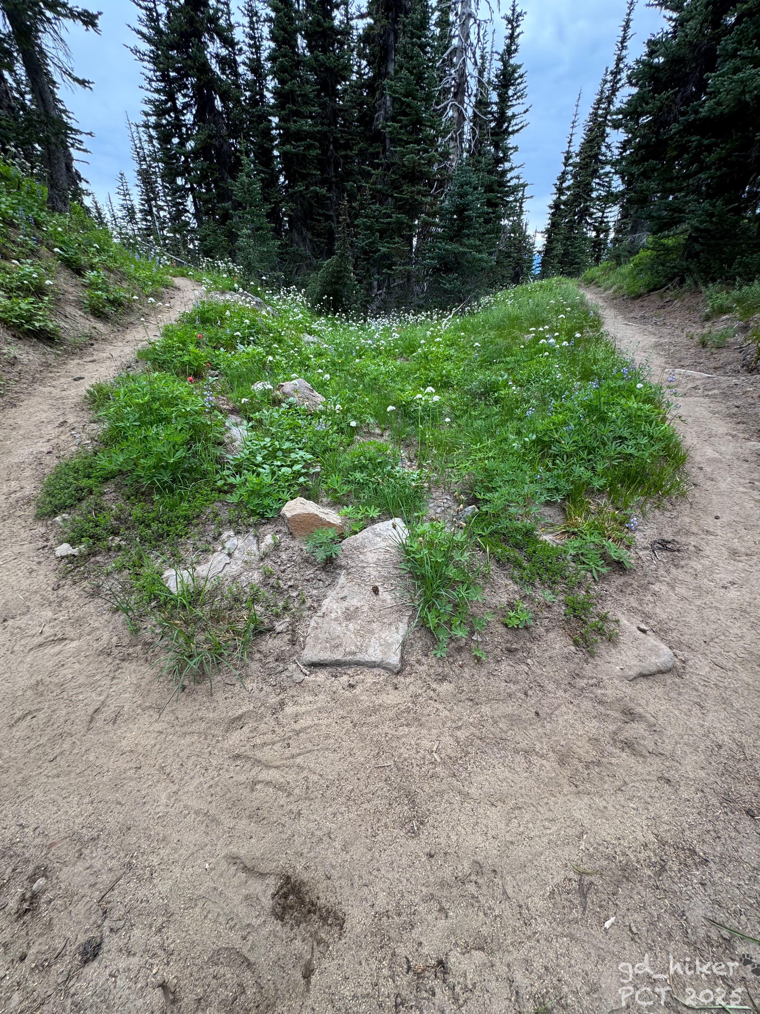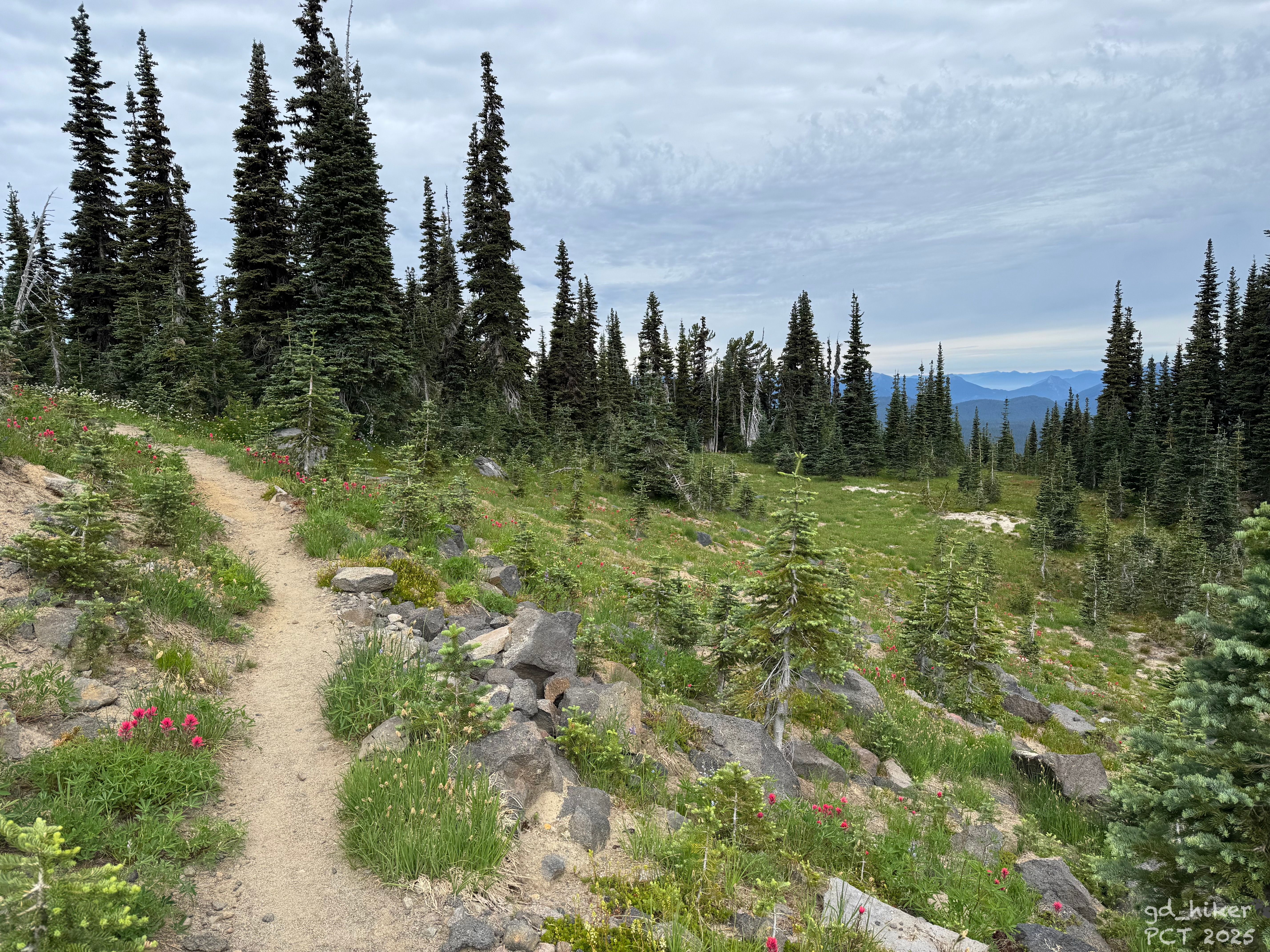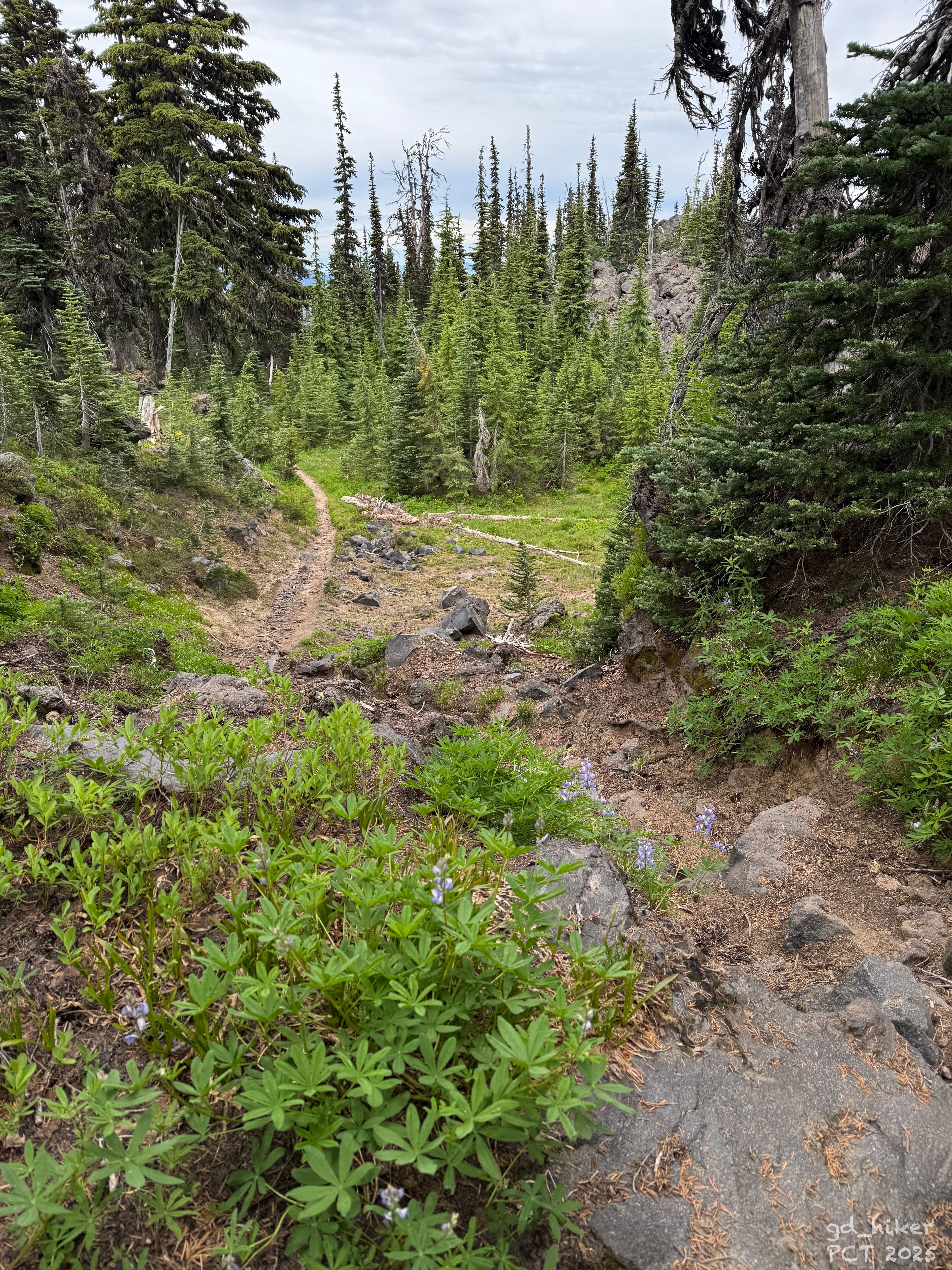 Once the trail eased up, I met a day-hiker couple. They were local and wanted to get a sense of the fallen trees’ scale. They were part of the Trout Lake Crew, who took it upon themselves to help thru-hikers by clearing the trail with their own resources.