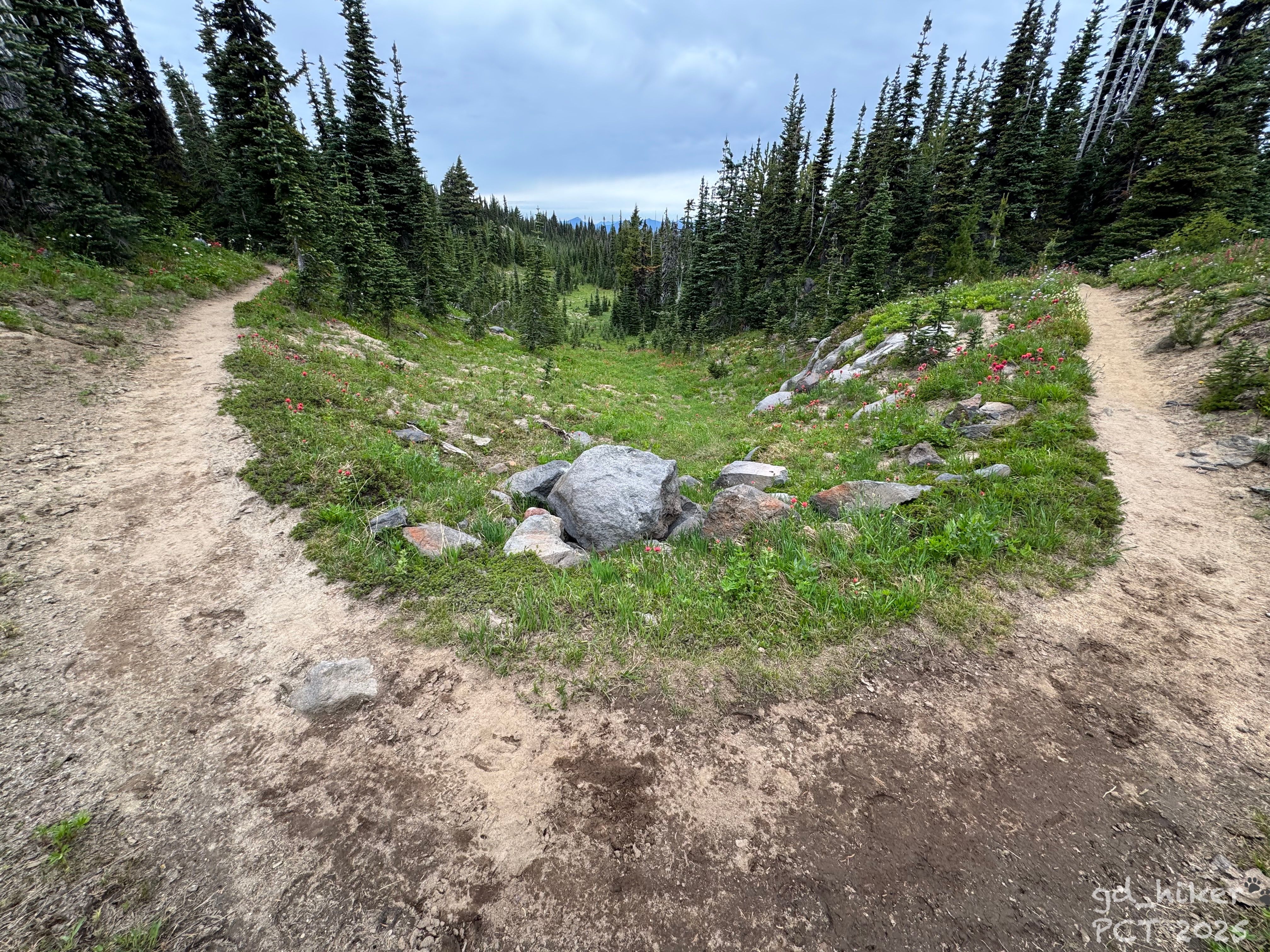 Klingt nach einem guten Grund, in Trout Lake Halt zu machen, bevor ich abends im Regen im Zelt sitze.
