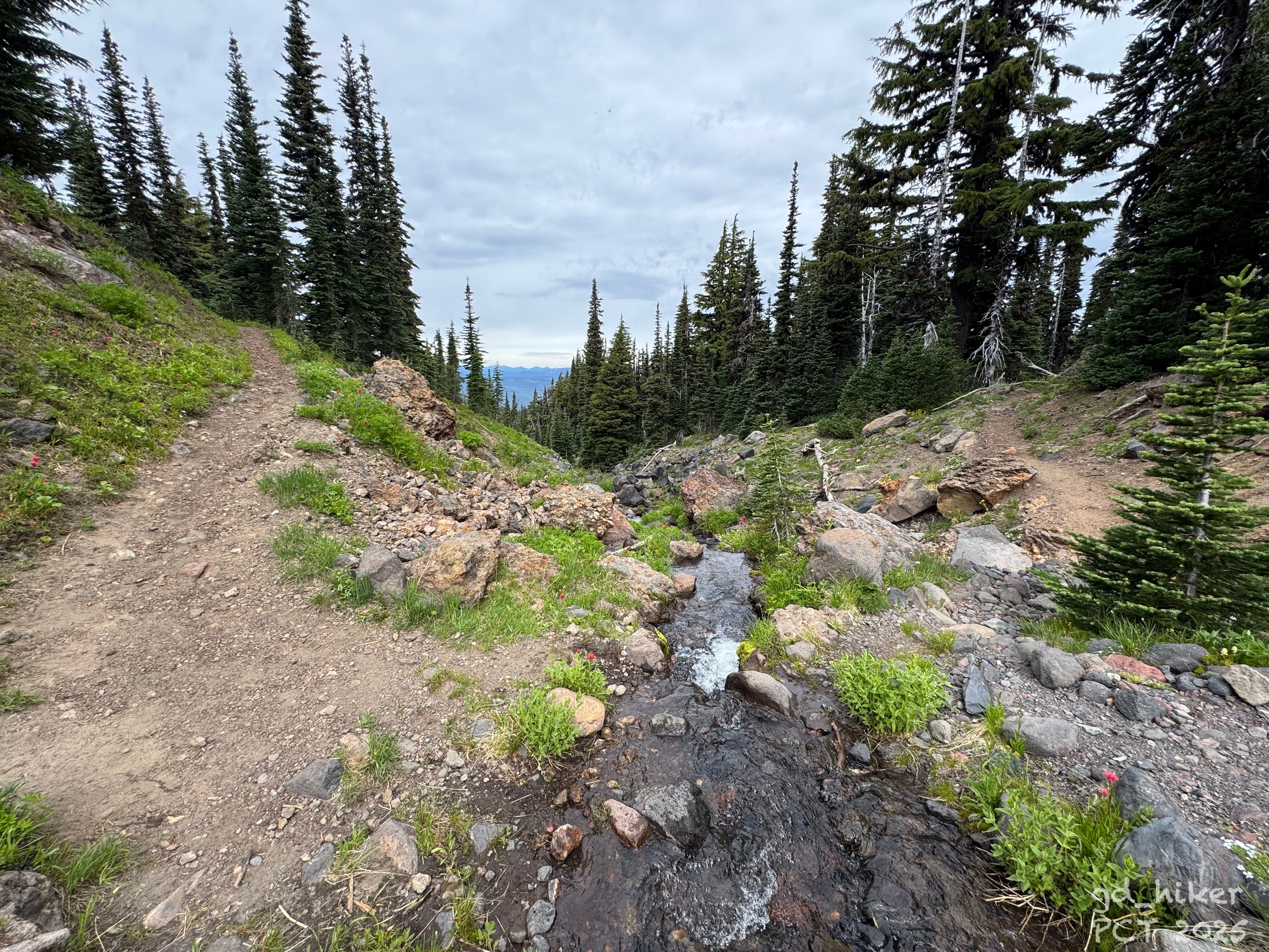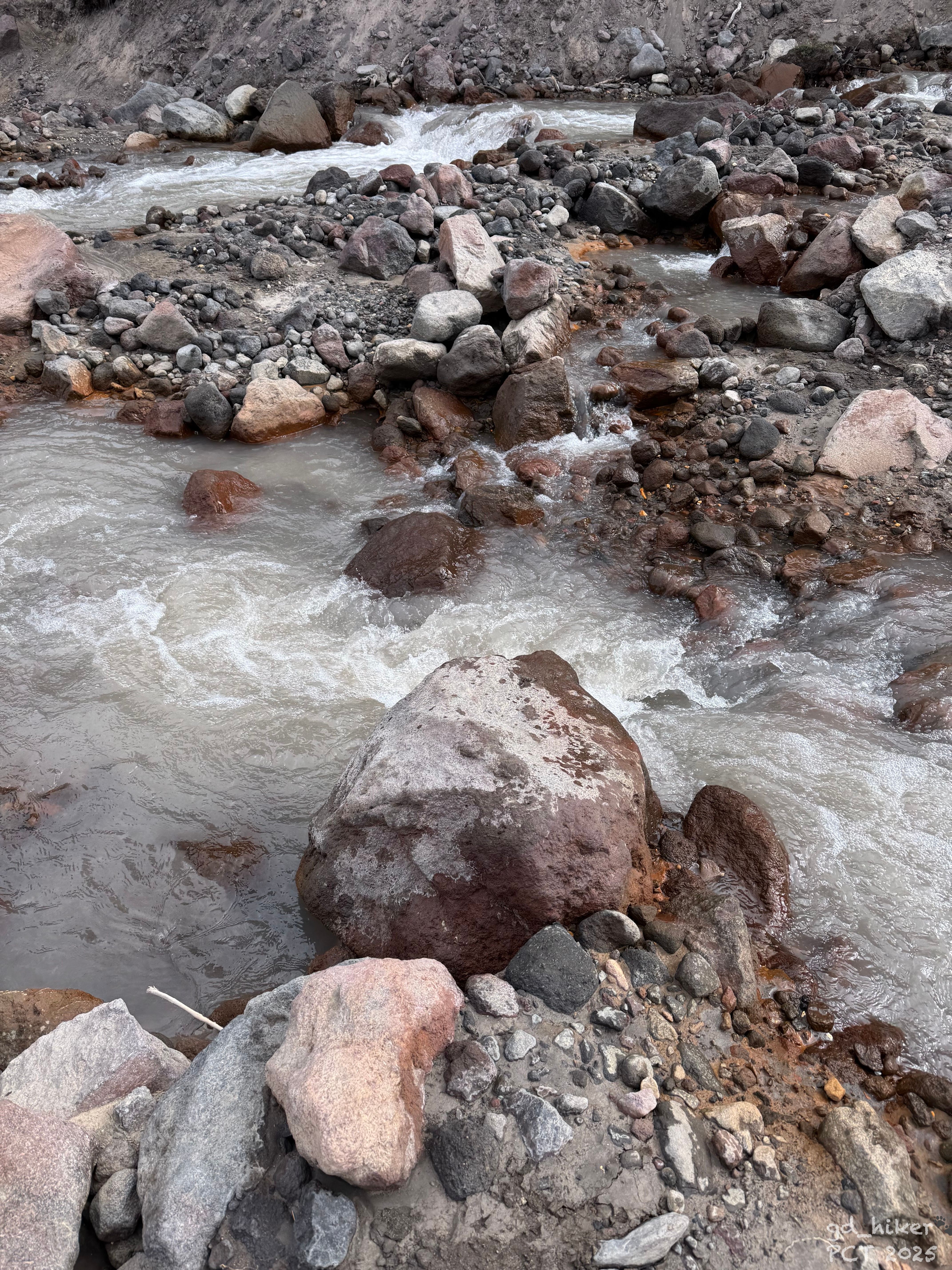 Despite the cloudy sky, the view made up for everything.I reached Adams Creek, and the first sight made me freeze a little. The memory of the almost-failed crossing at Cascade Creek was still heavy in my legs.