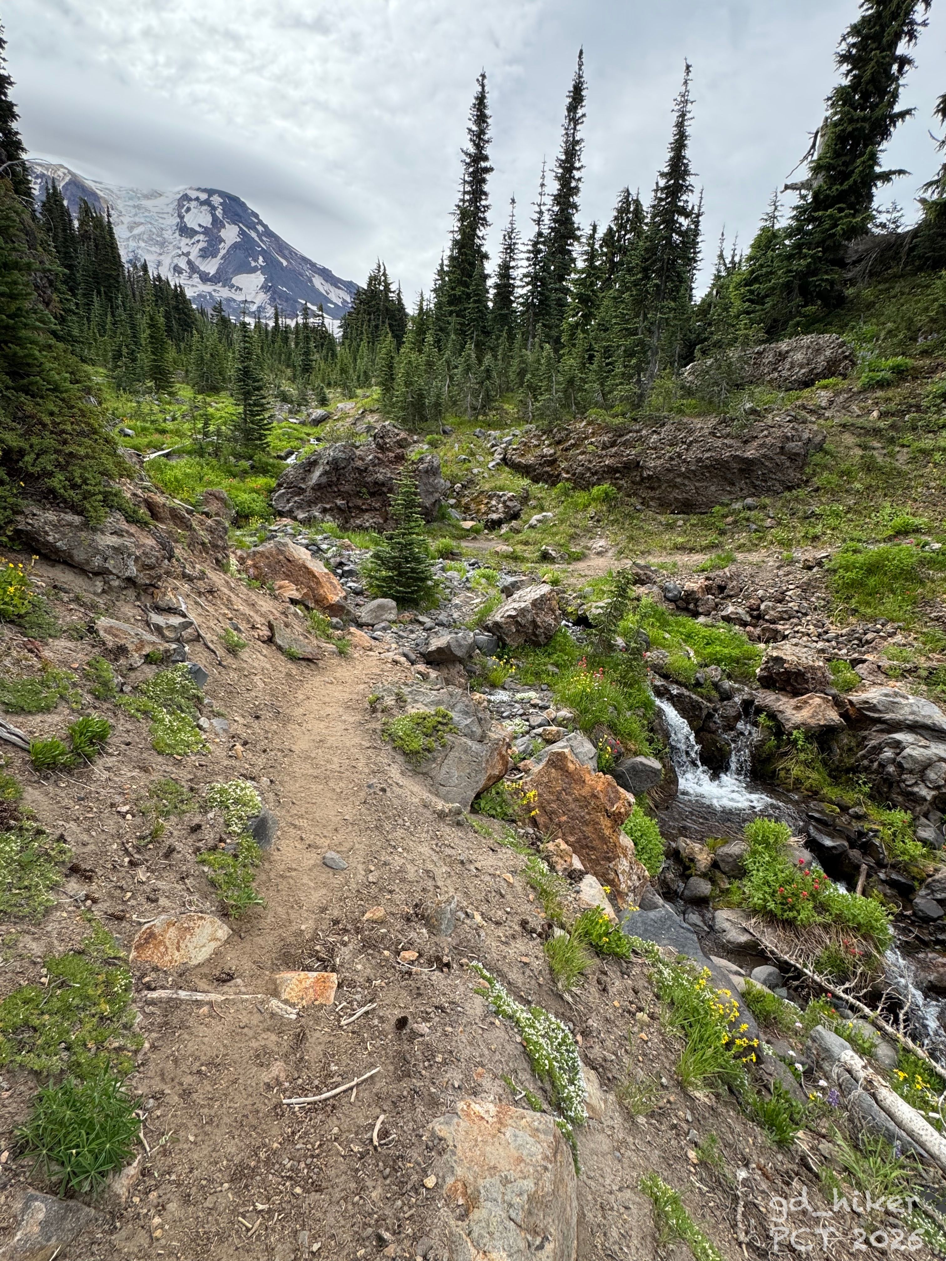 At first, the trail remained quite wooded and level. Here and there, Mt. Adams peeked through the trees.