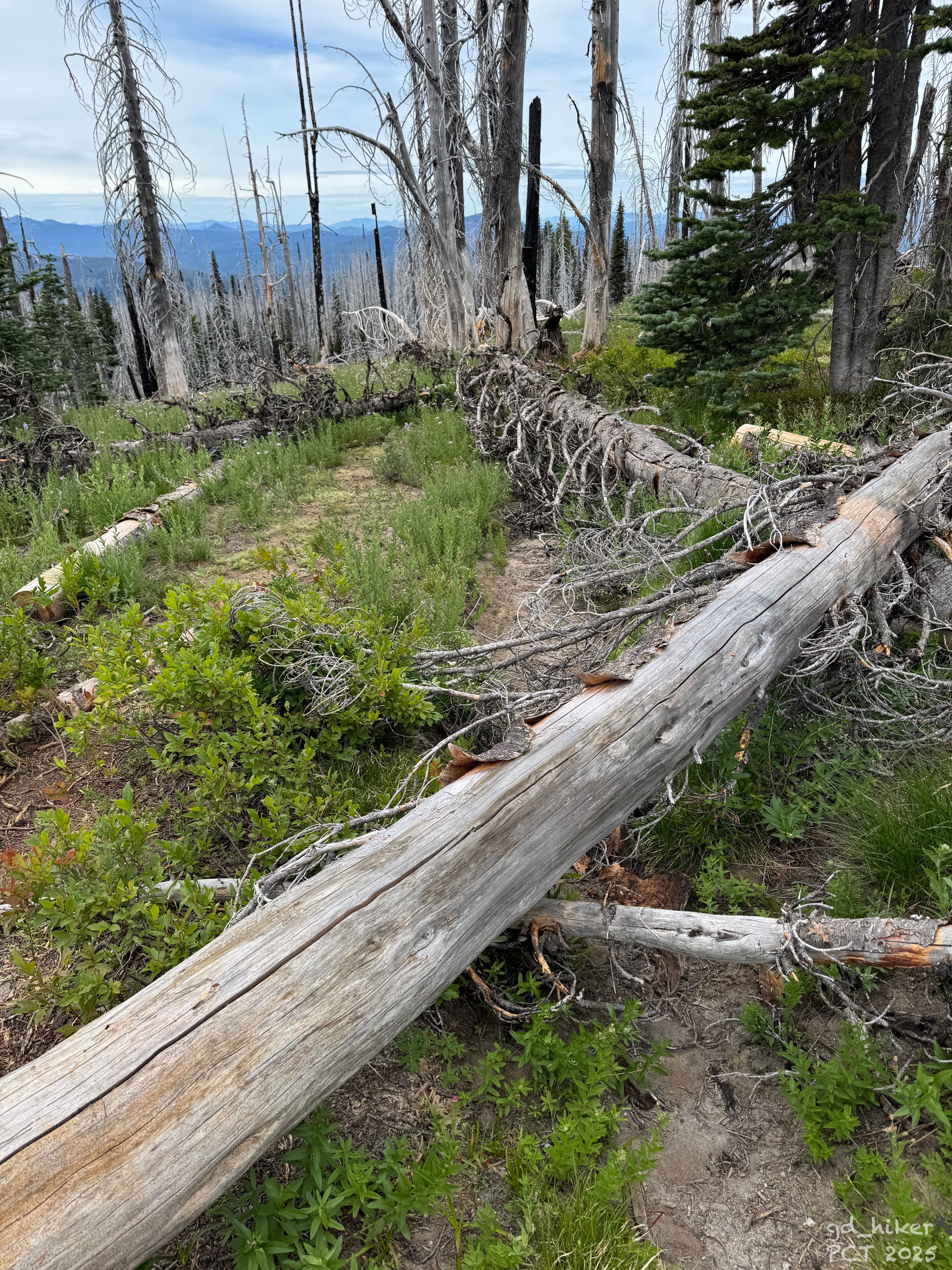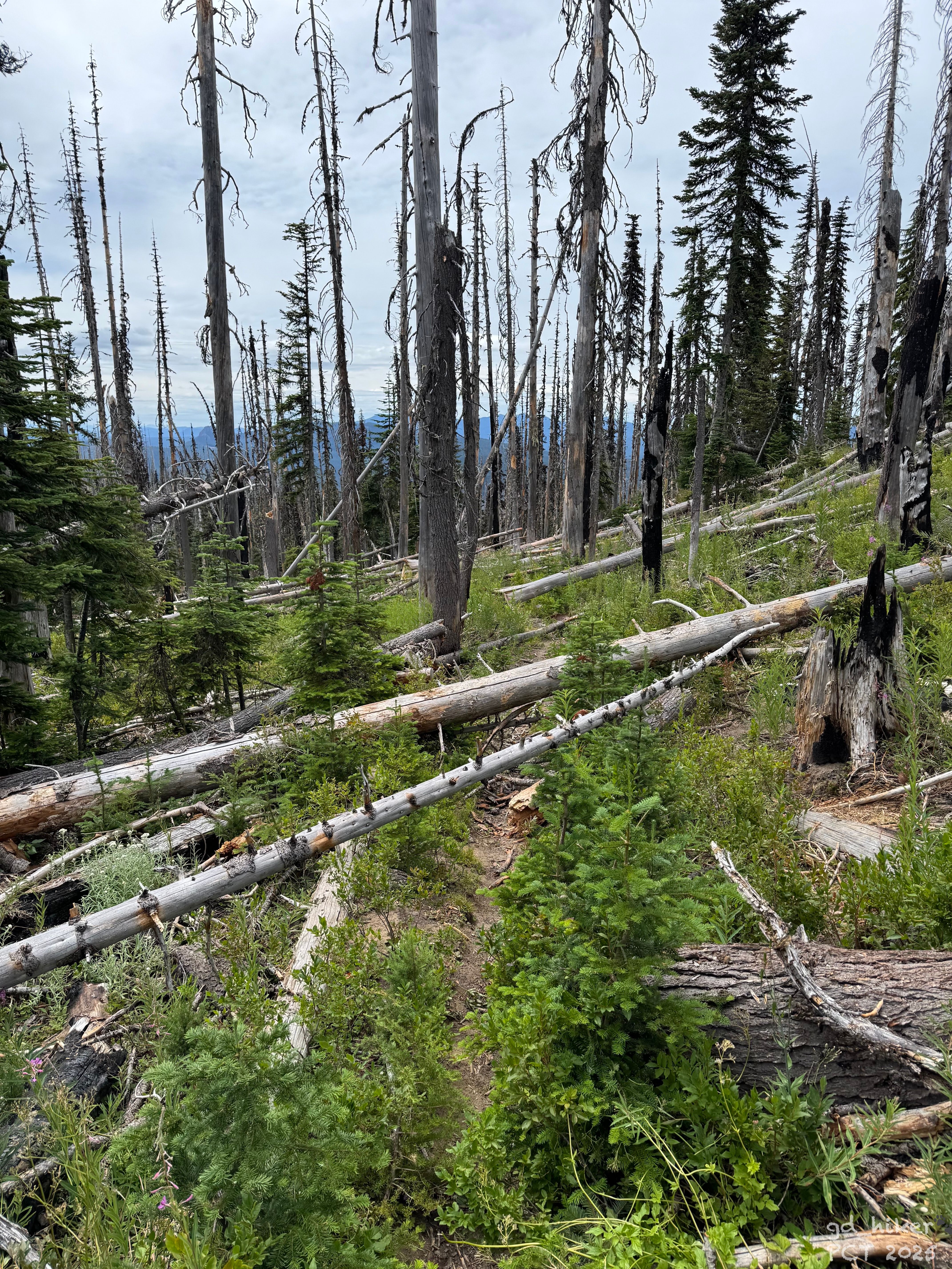 Then came a burn zone — it reminded me strongly of Section K.Everywhere, fallen trees blocked the path.