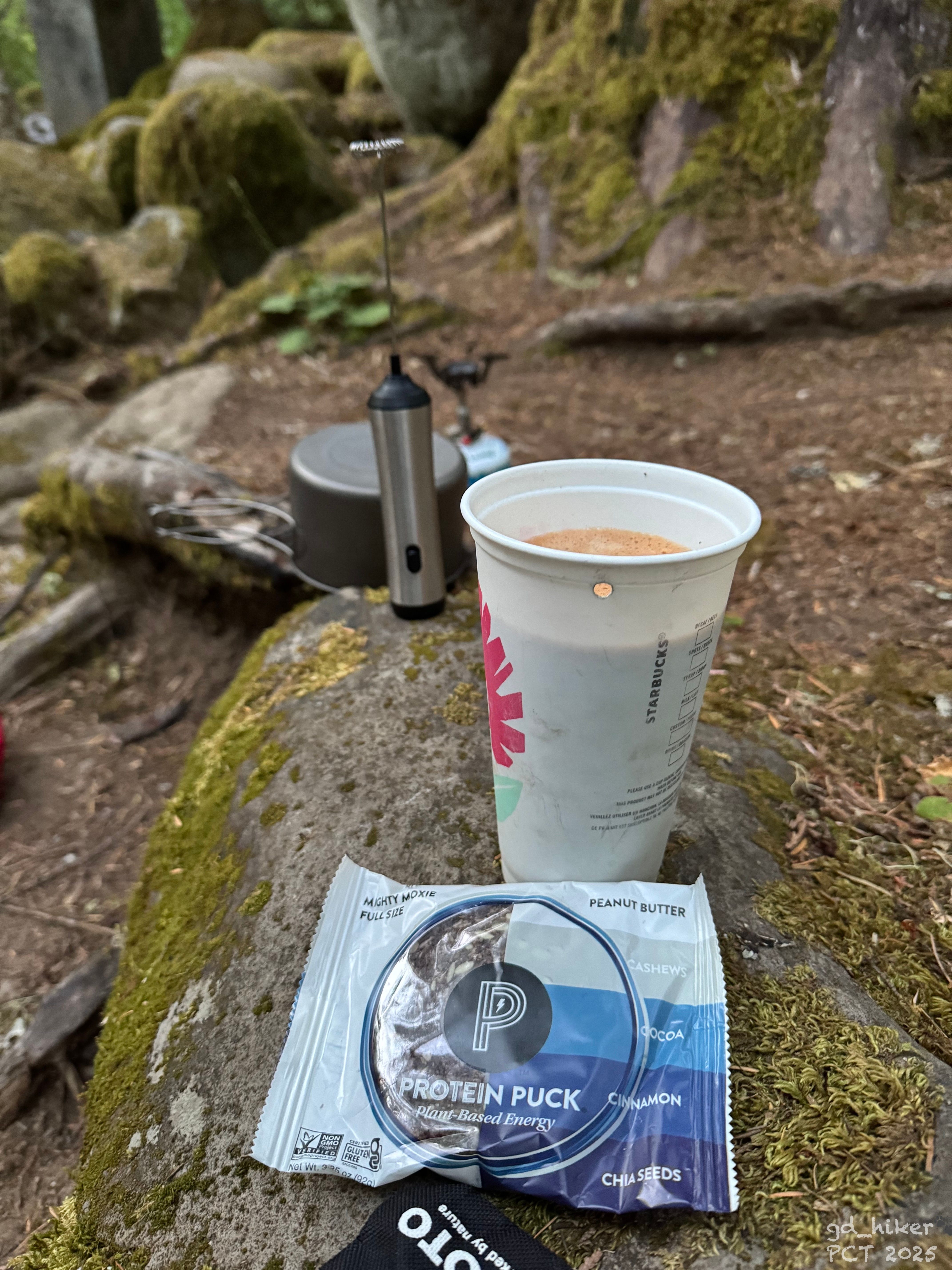 Nach vier Stunden machte ich eine erste Pause. Ich hatte Hunger und aß meinen vorbereiteten cold-soaked Mango-Reis.