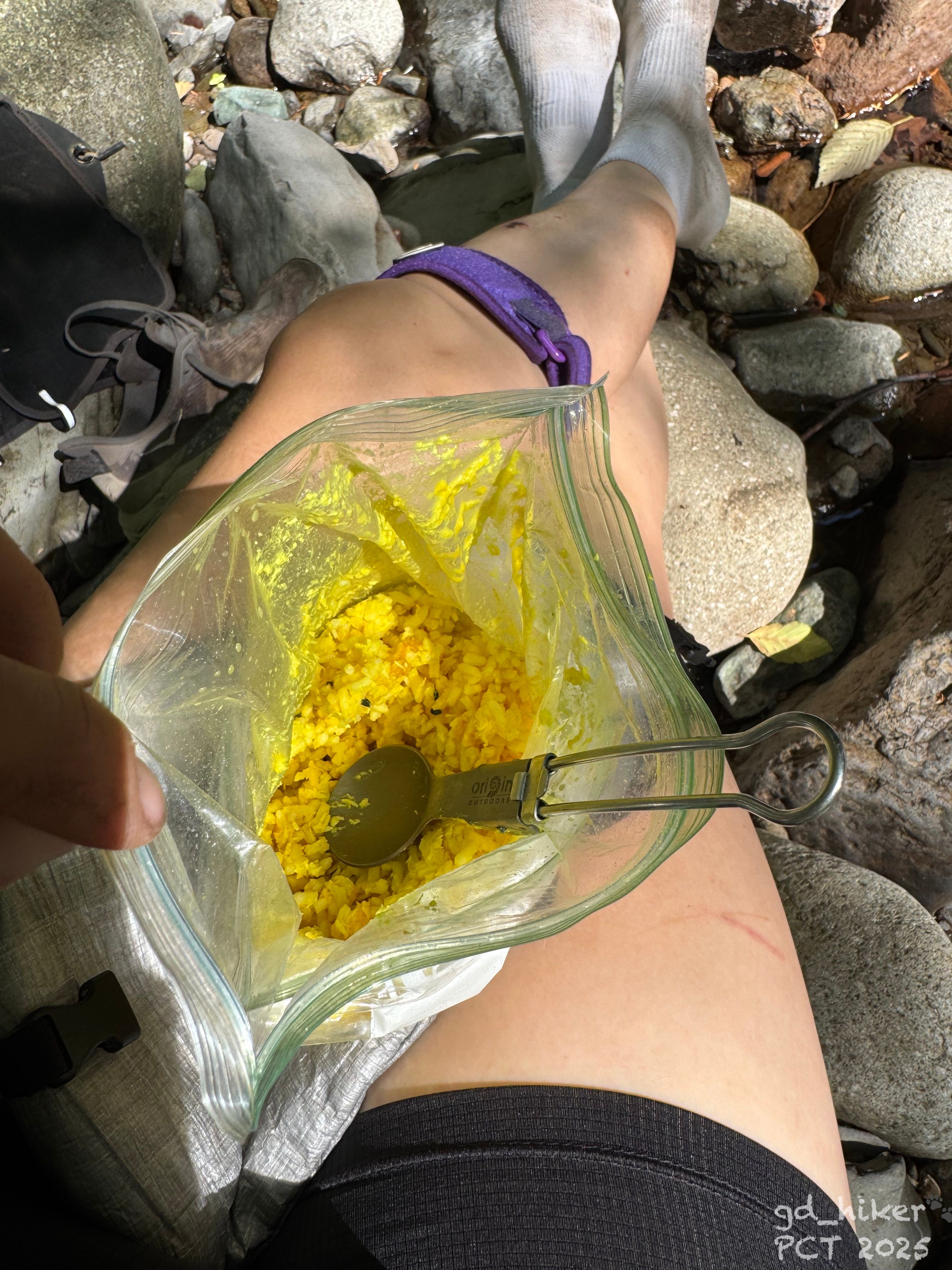 After four hours, I took my first break. I was hungry and ate my pre-prepared cold-soaked mango rice.
