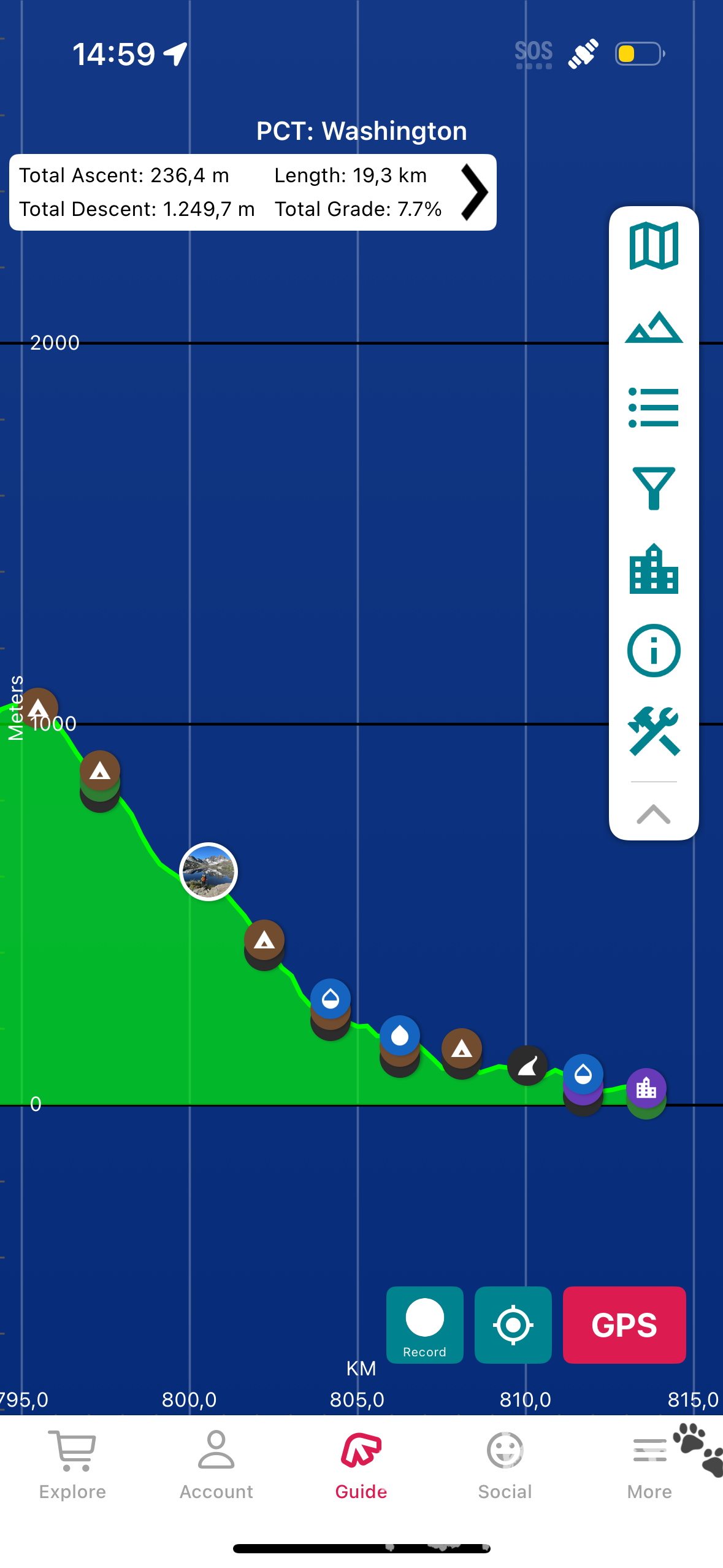 Heute warteten zwei Steigungen und der Abstieg nach Cascade Locks auf mich. Insgesamt erklomm ich 1.760 Höhenmeter und ging 2.050 Meter abwärts.