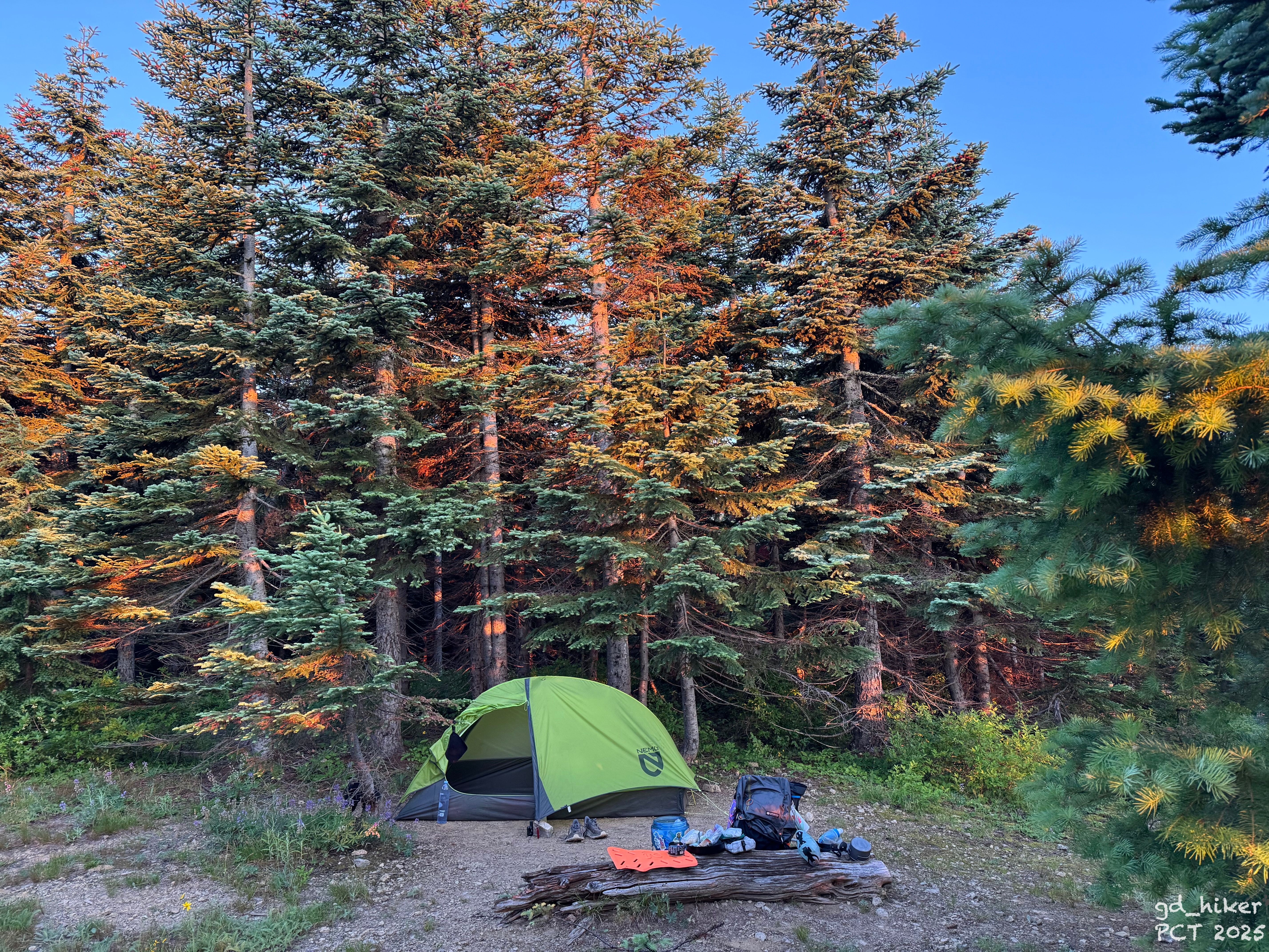 Heute Abend bekam ich tatsächlich noch Gesellschaft. Todd, ein Amerikaner mit deutschen Wurzeln, schlug auf dem freien Spot neben mir sein Lager auf. Solche Begegnungen sind selten. Ich treffe wenig andere Wanderer und bin die meiste Zeit alleine.