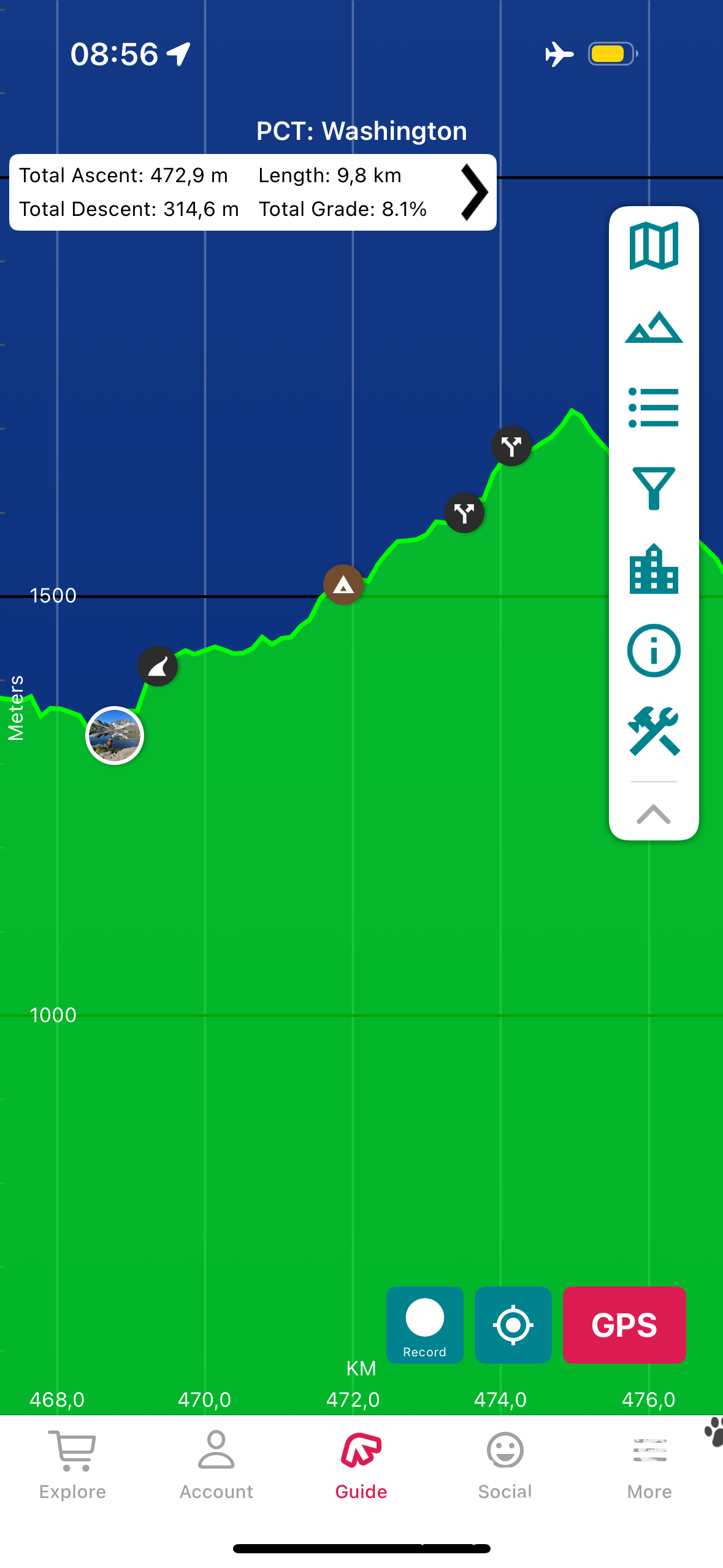 Beim Essen schaute ich nochmal in die App und bemerkte: 500 km geschafft – vom Northern Terminus bis hier.