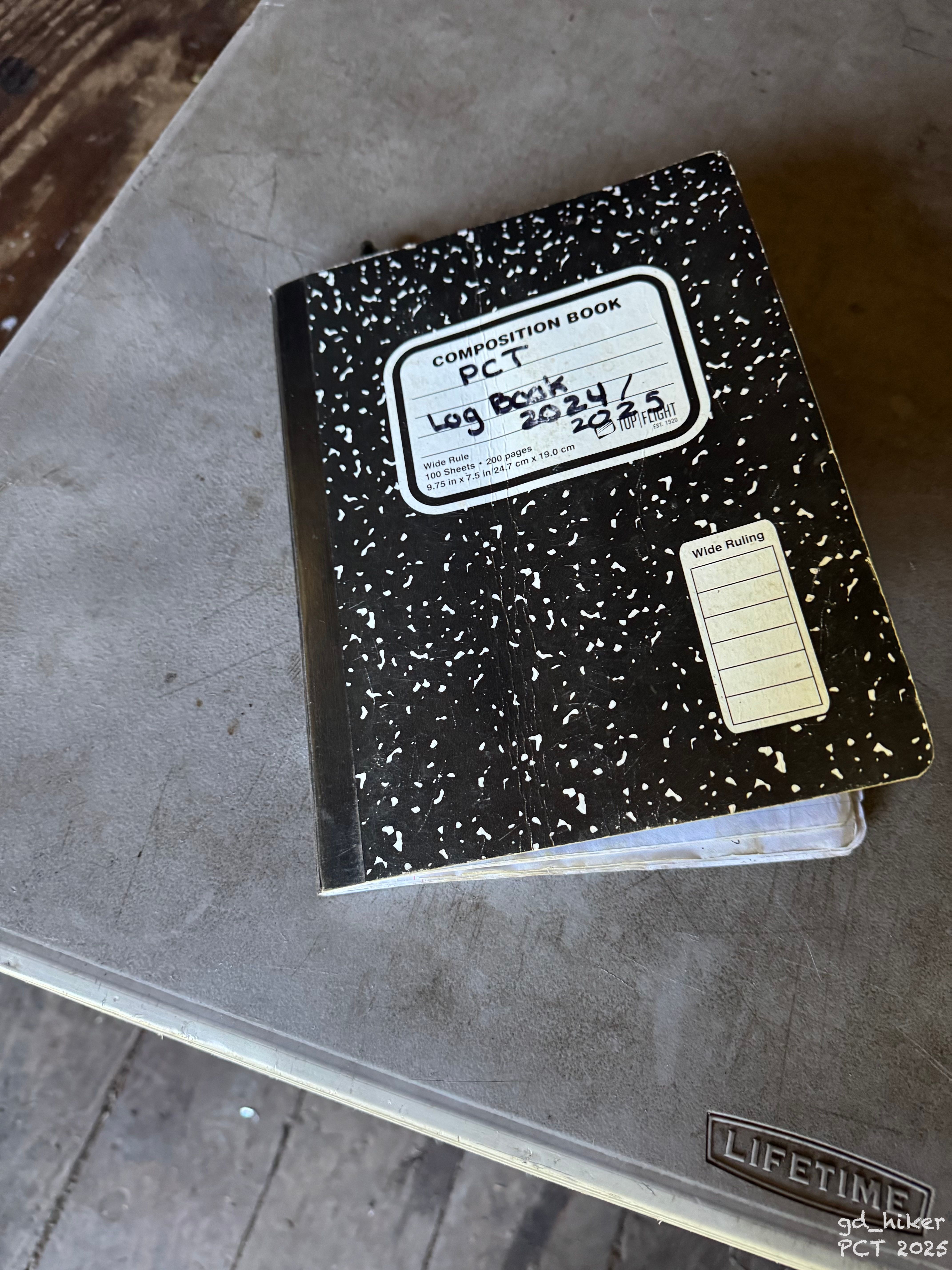 I went inside – the door was open. A PCT logbook lay there, and I signed it immediately. A cooler labeled “PCT” was also there – but it was empty.