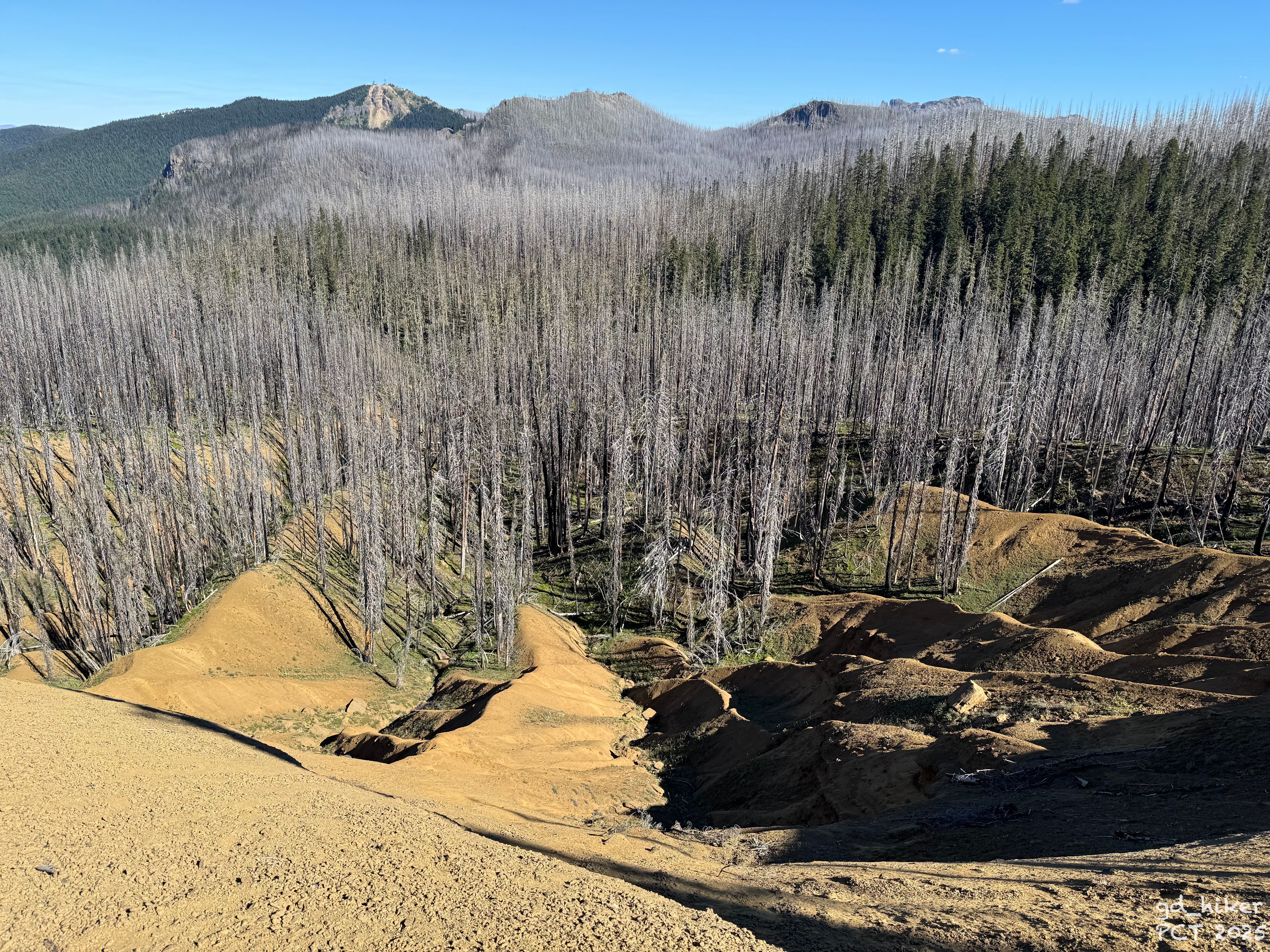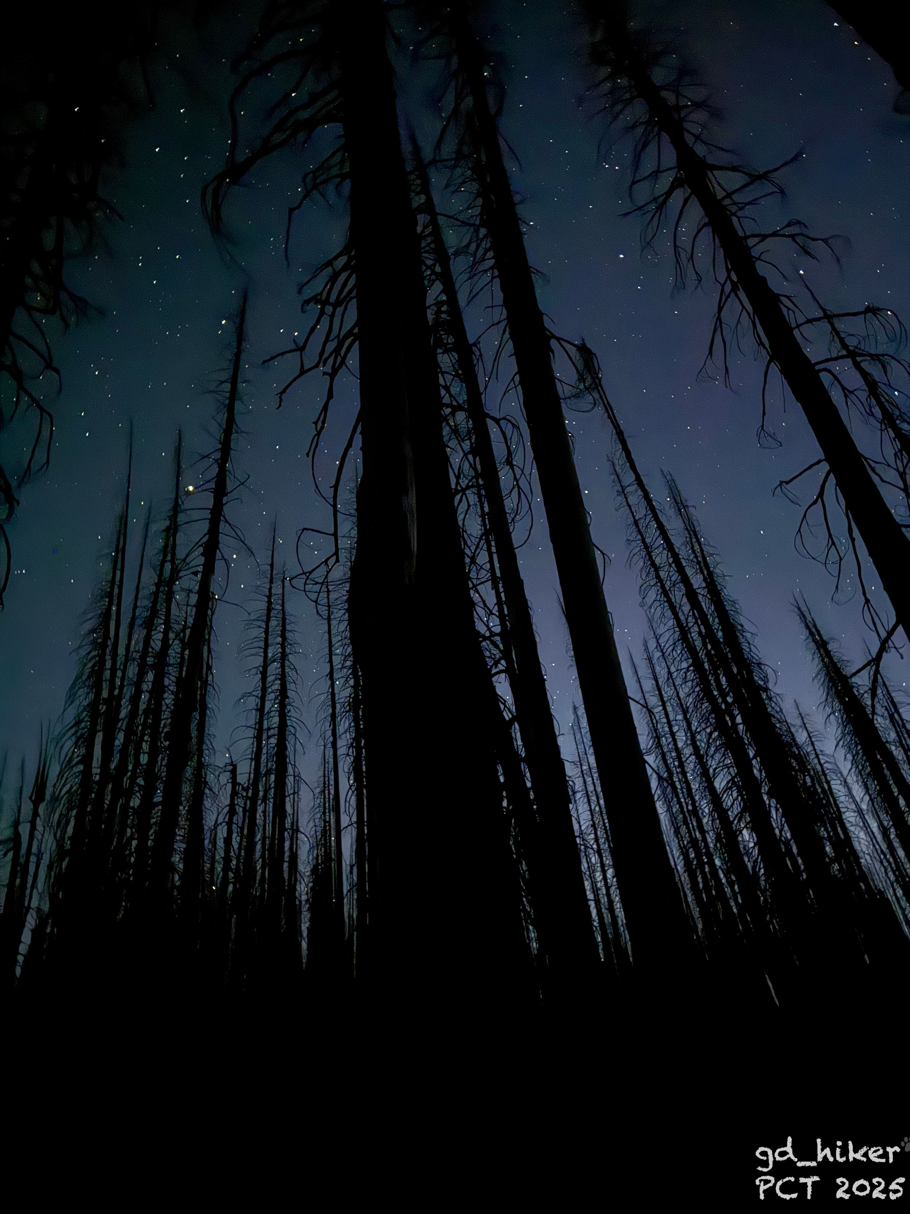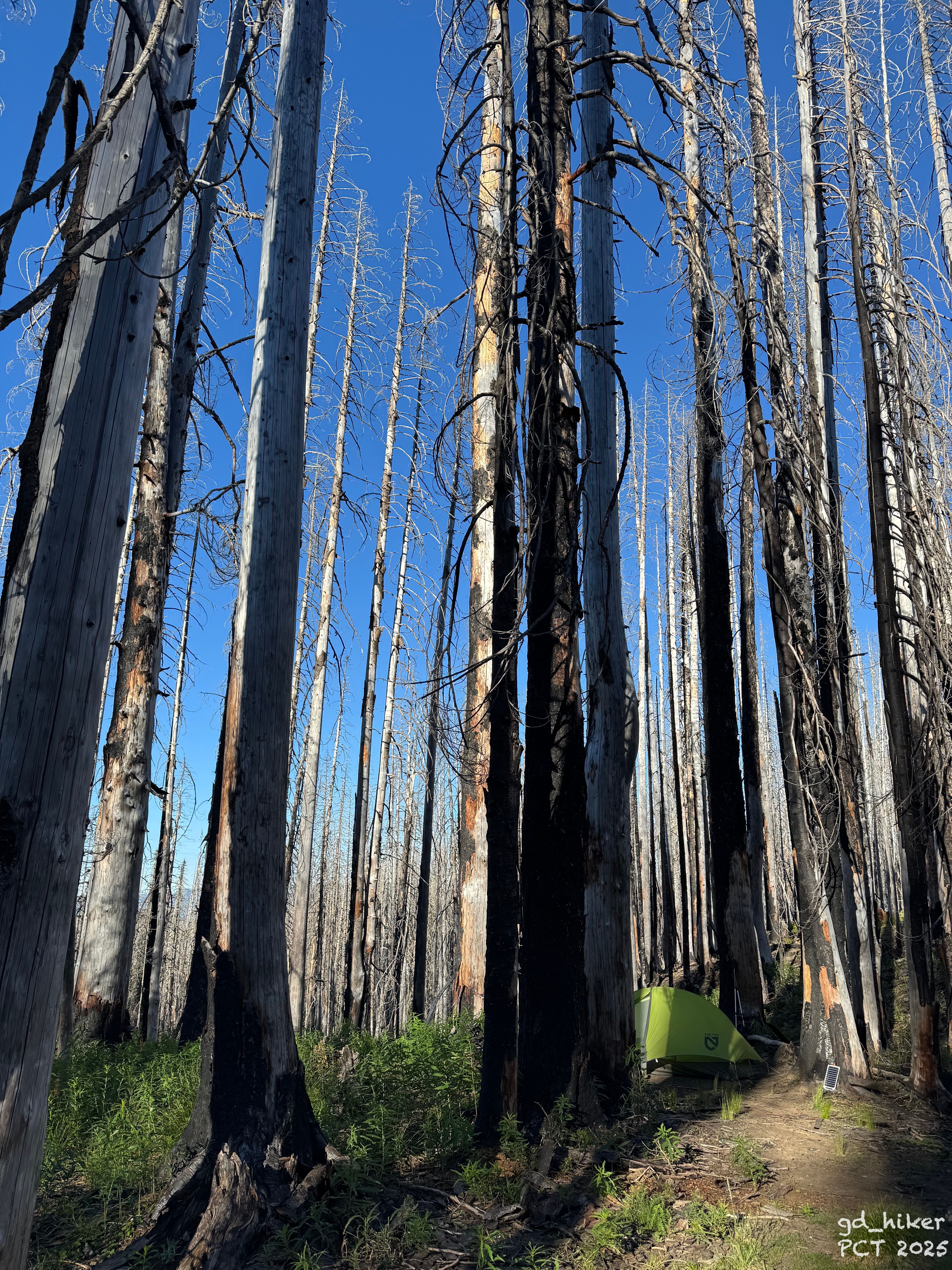 The FarOut app often advises against camping in a burn zone. It’s too dangerous, as the burned tree trunks can fall quickly and become so-called “Widow Makers.”