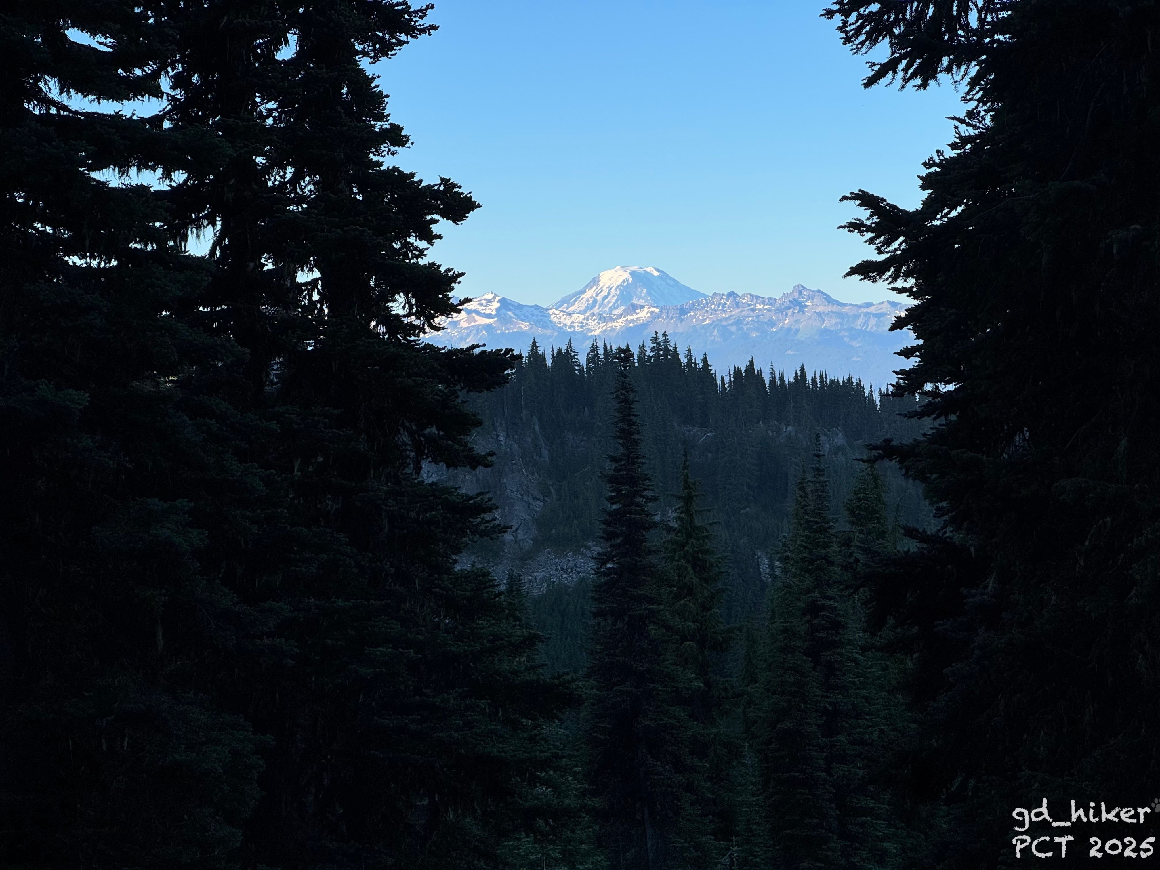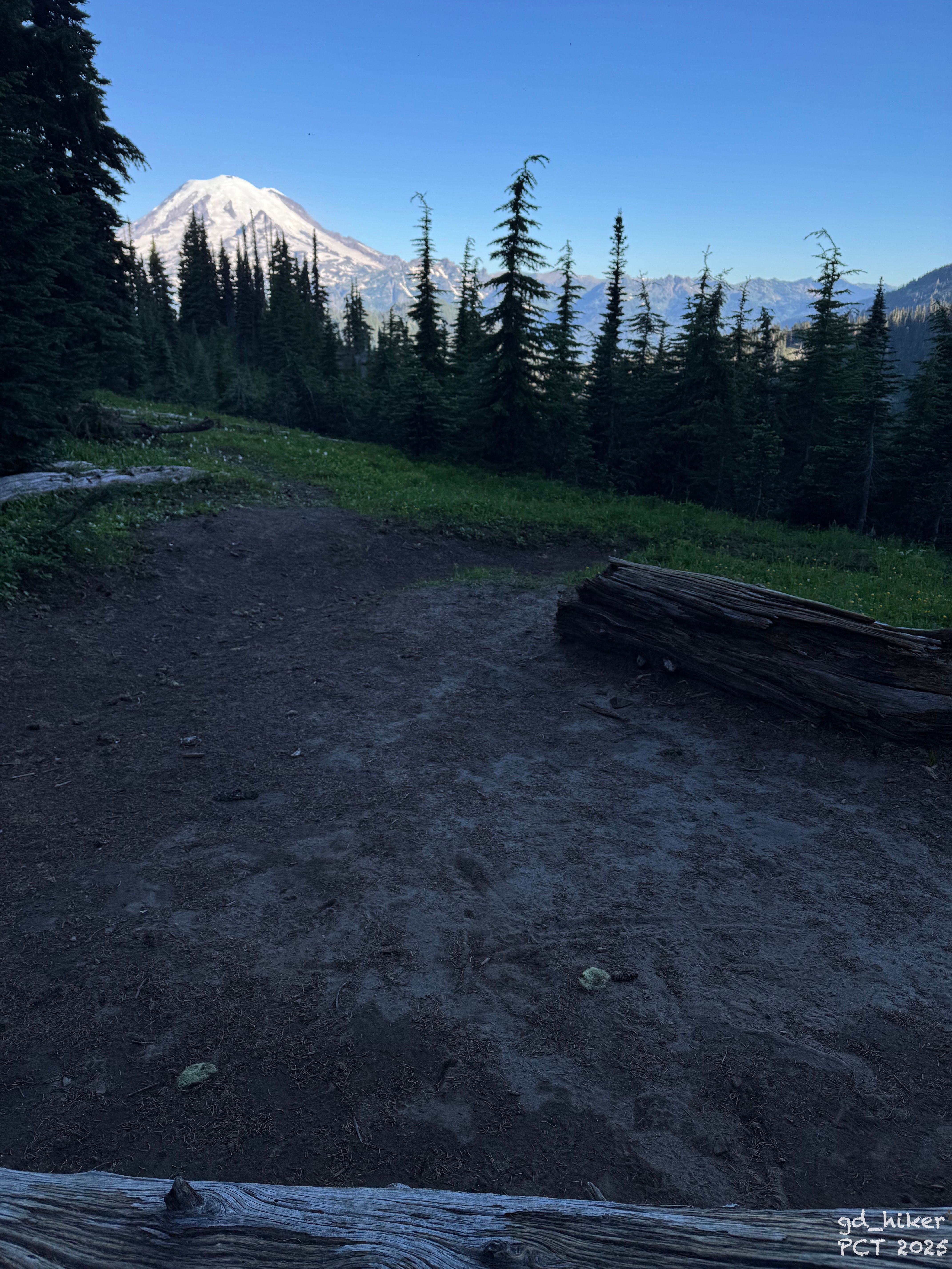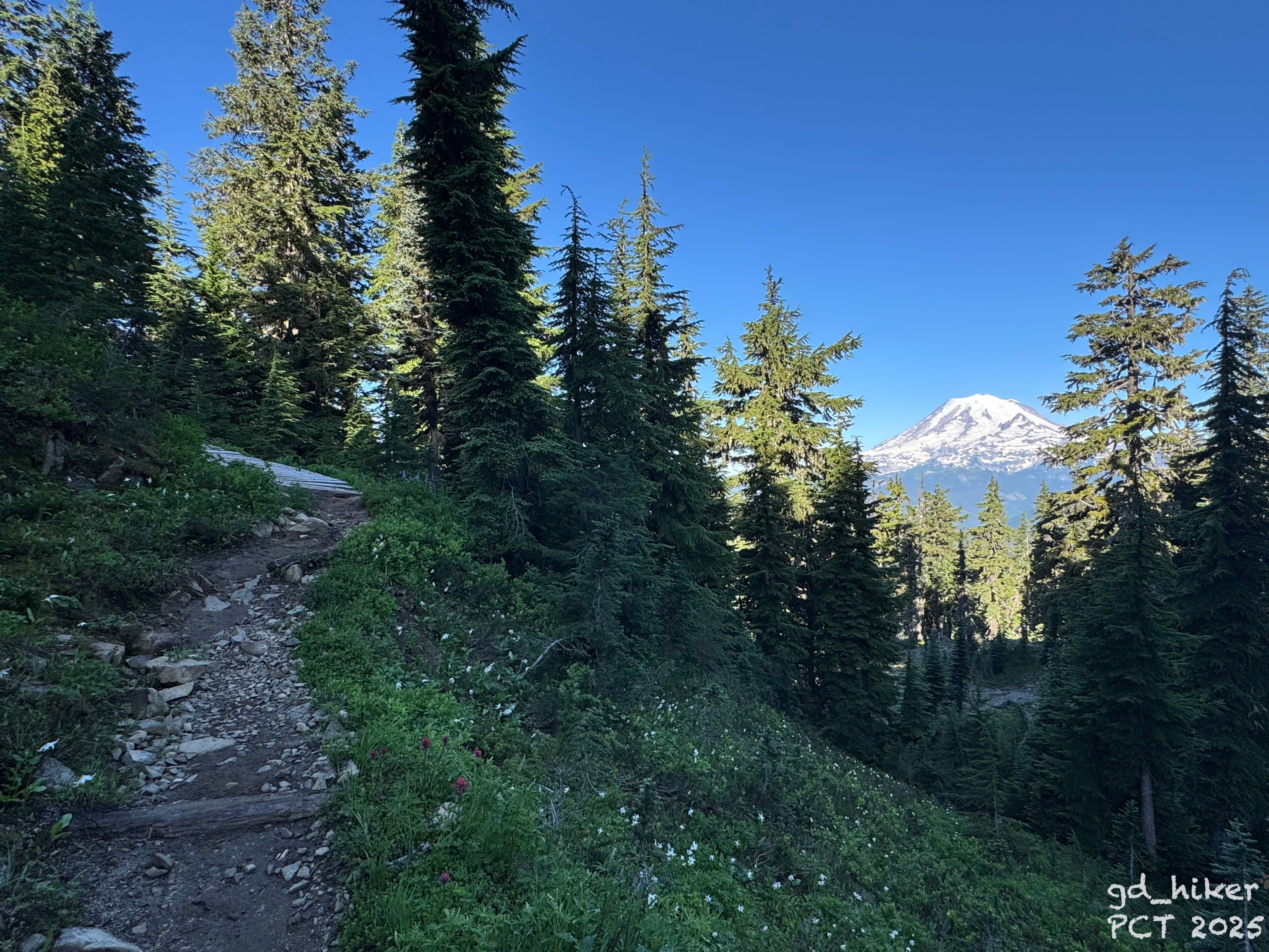At 6:30 a.m., I stepped onto the trail and was immediately rewarded with a view of Mount Rainier.