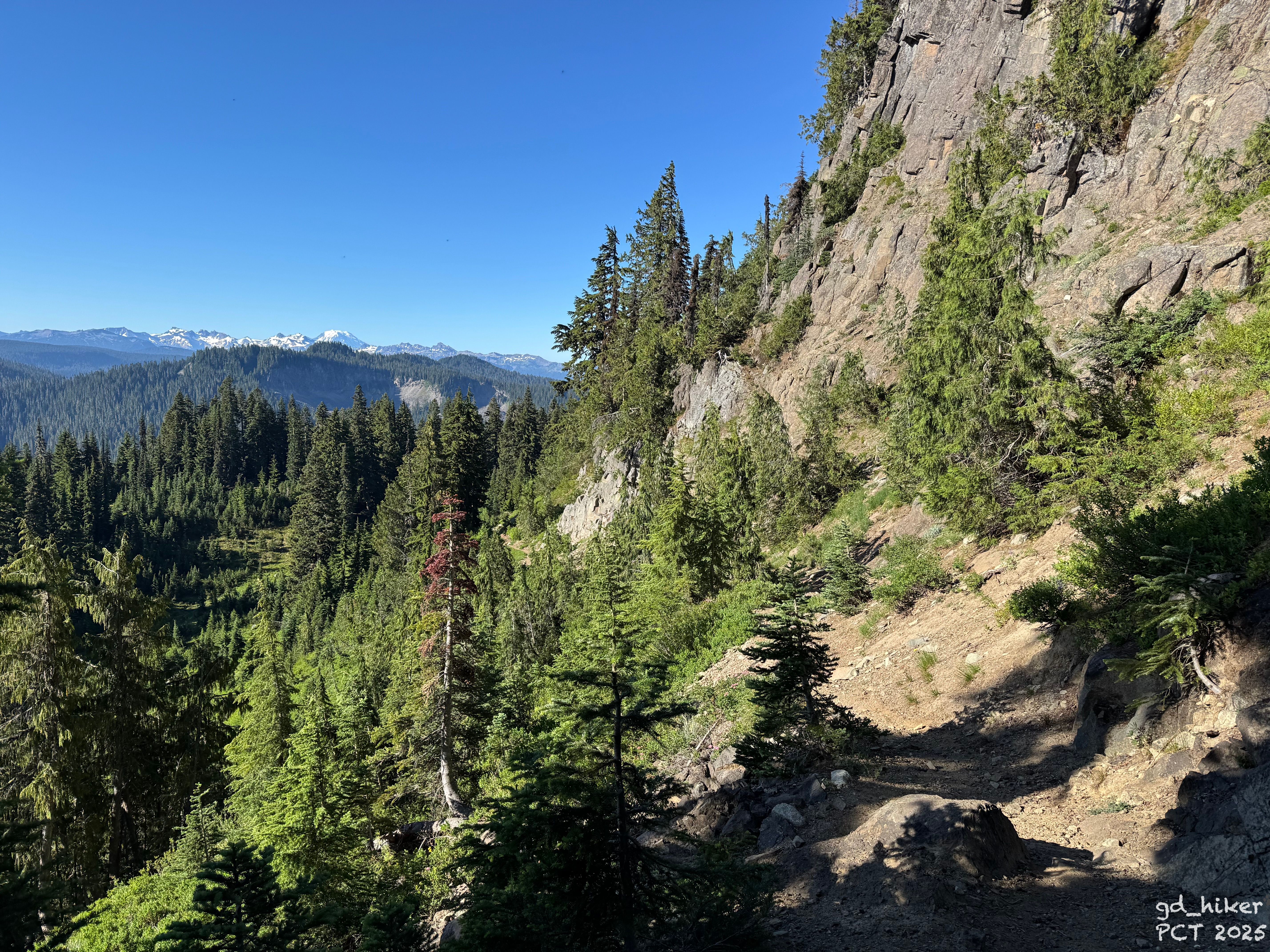The morning chill faded, and I took off my jacket—though that may also have been thanks to the constant climbing over downed trees.…with a view.